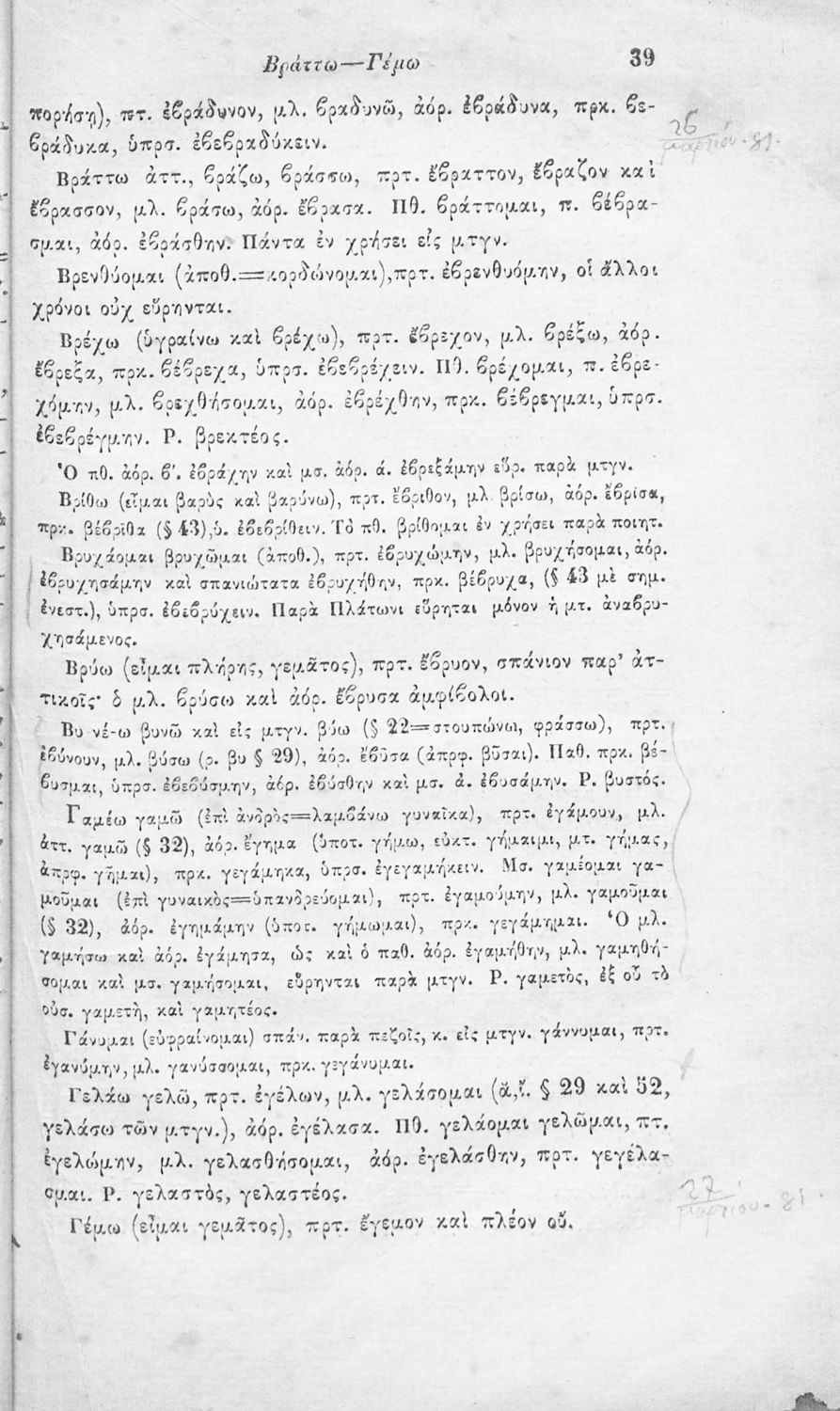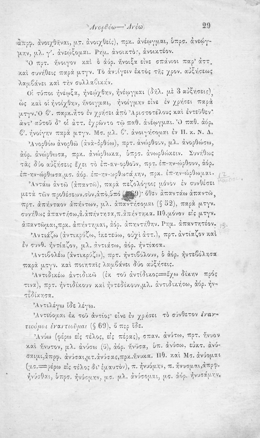 Μαθητικό βοήθημα Αρχαίων Ελληνικών για τα Γυμνάσια, Παρθεναγωγεία και Ελληνικά σχολεία το οποίο περιέχει κατάλογο ανωμάλων ρημάτων της Αττικής διαλέκτου.