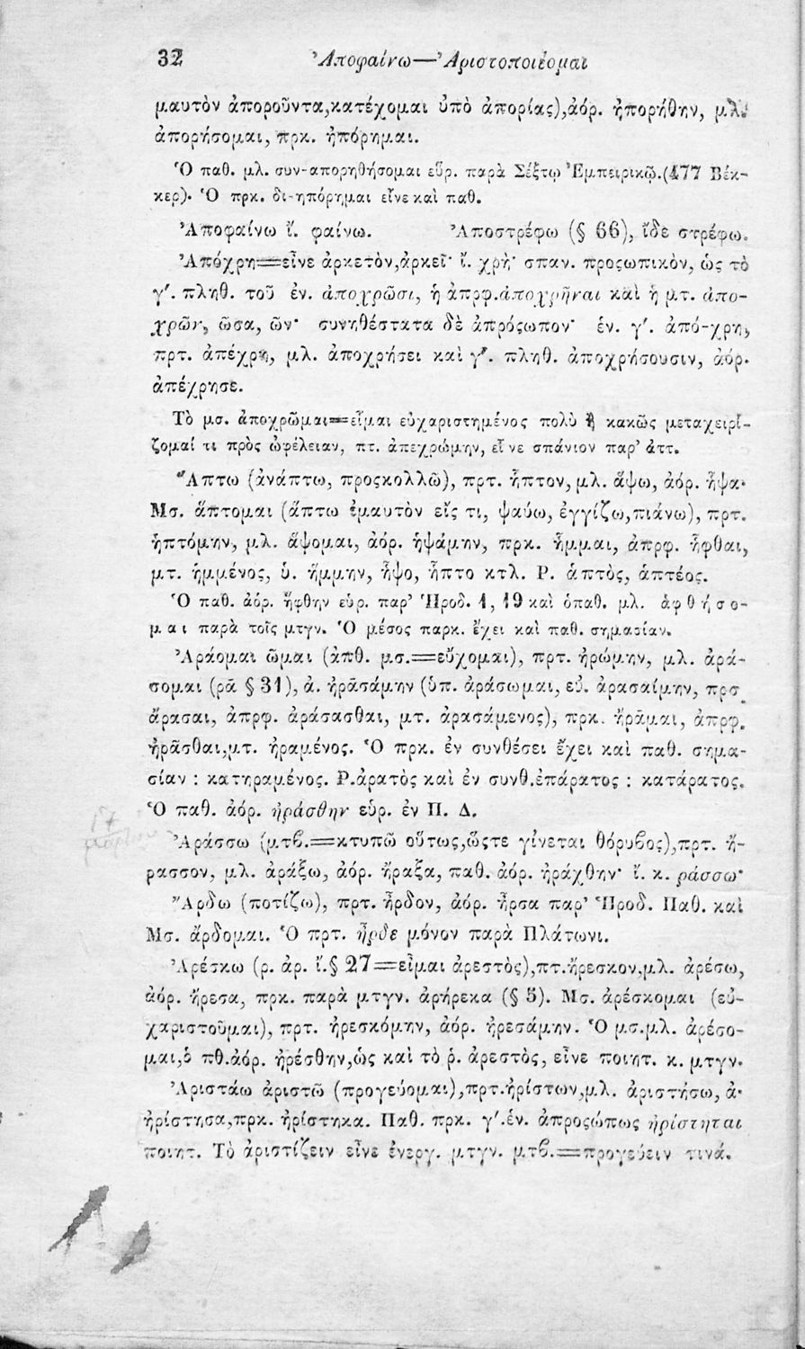 Μαθητικό βοήθημα Αρχαίων Ελληνικών για τα Ελληνικά Σχολεία, Παρθεναγωγεία και Γυμνάσια που περιλαμβάνει γραμματική της αρχαίας ελληνικής και κατάλογο ανωμάλων ρημάτων.
