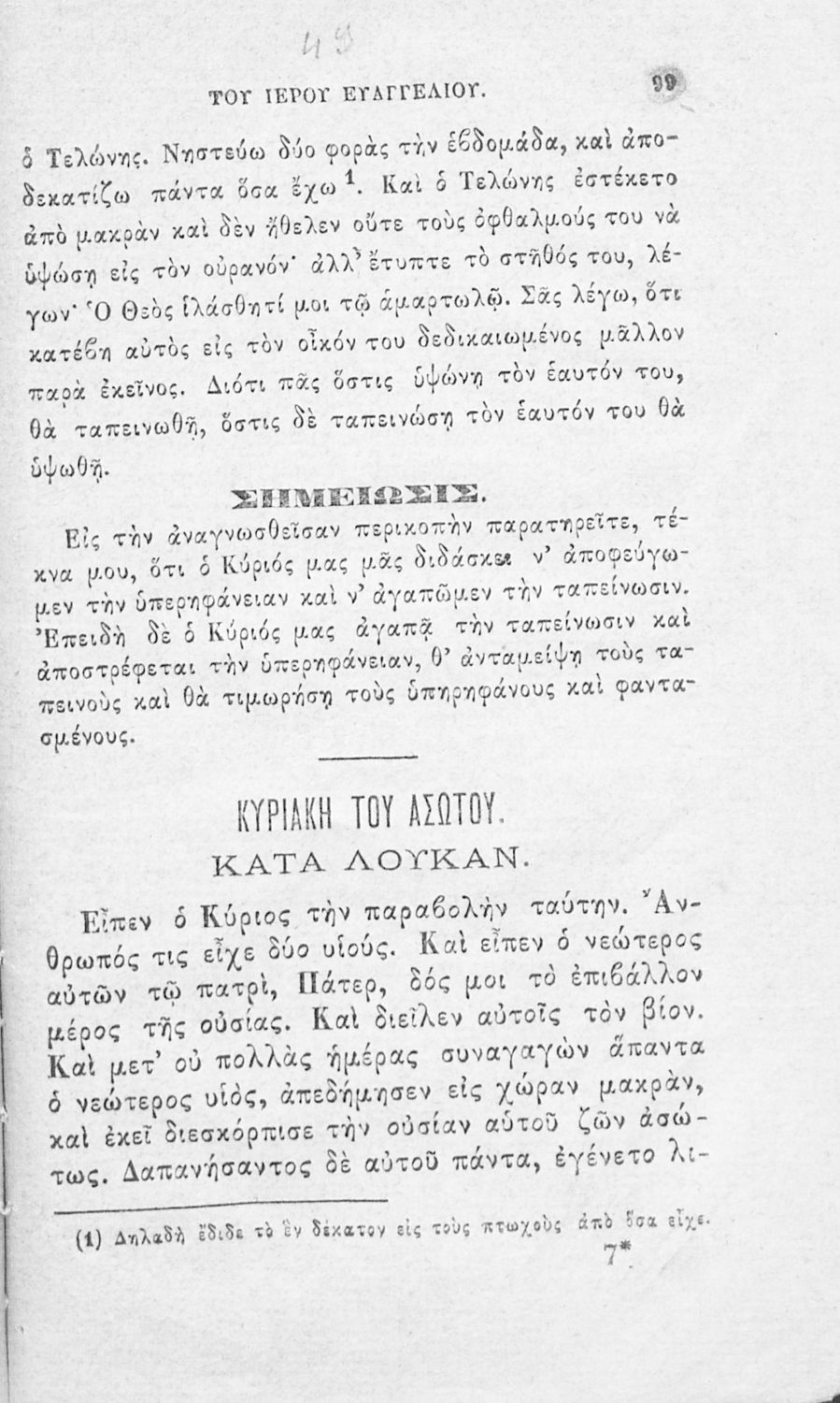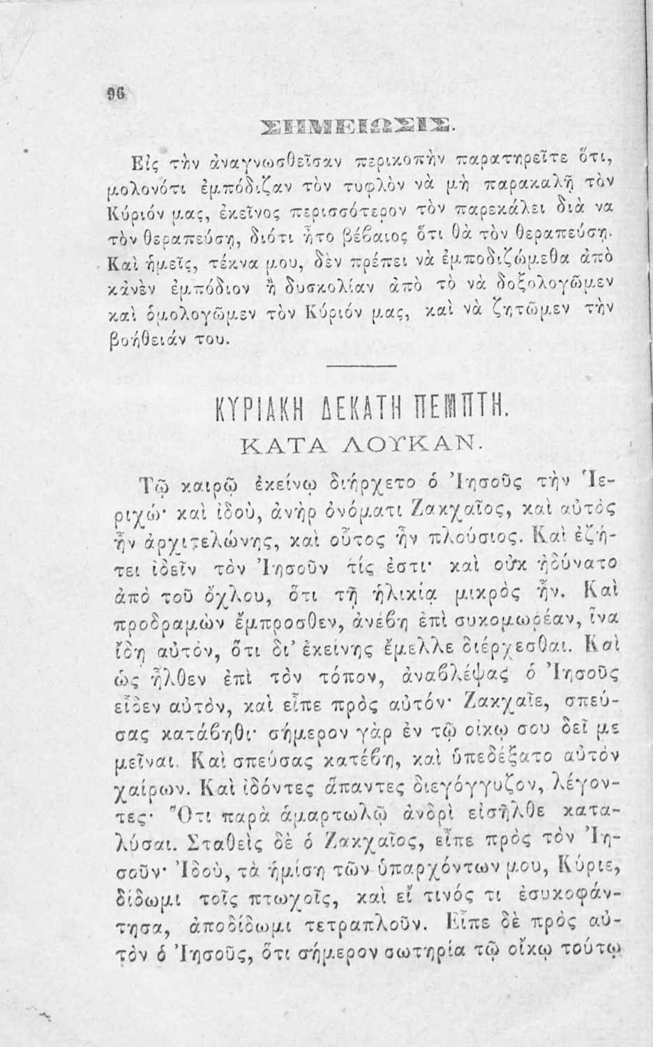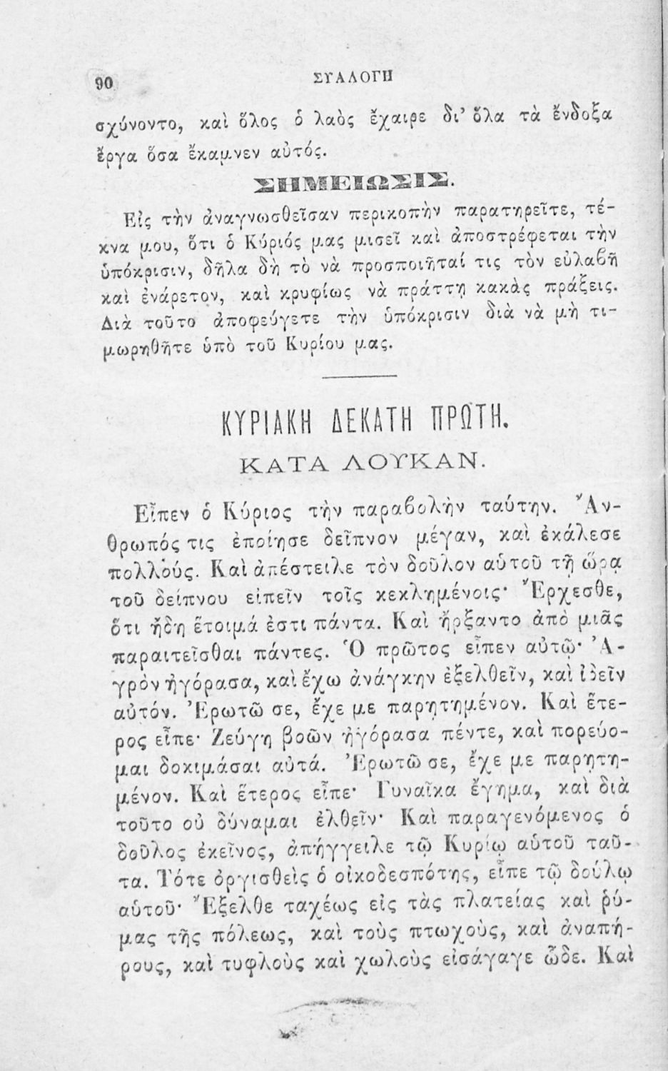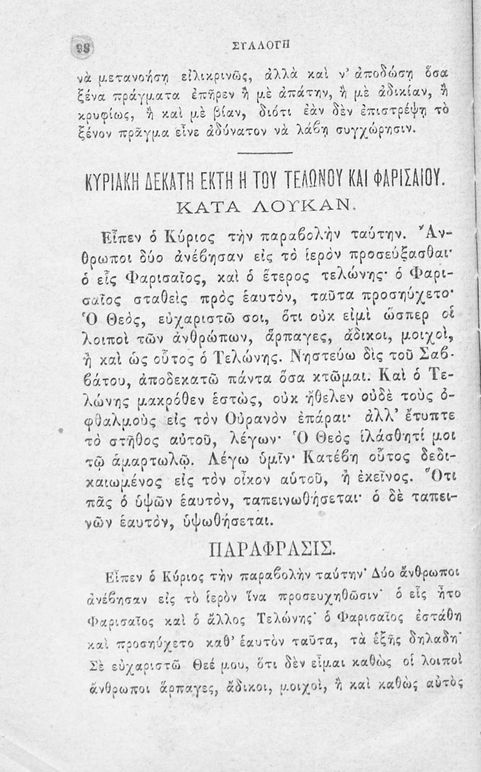 Τίτλος: Συλλογή των κατά τας θείας λειτουργίας άπασων των Κυριακών αναγινωσκομένων περικοπών του ιερού ευαγγελίου προς χρήσιν των Δημοτικών Σχολείων