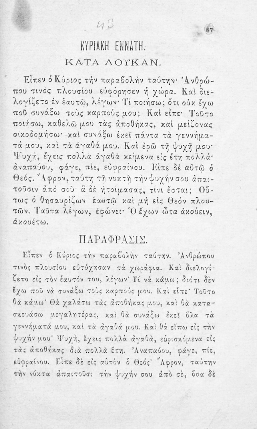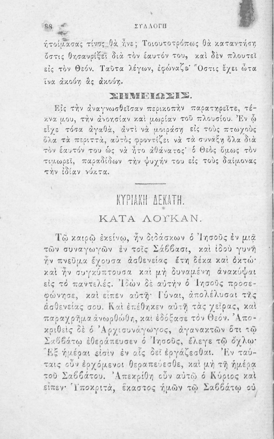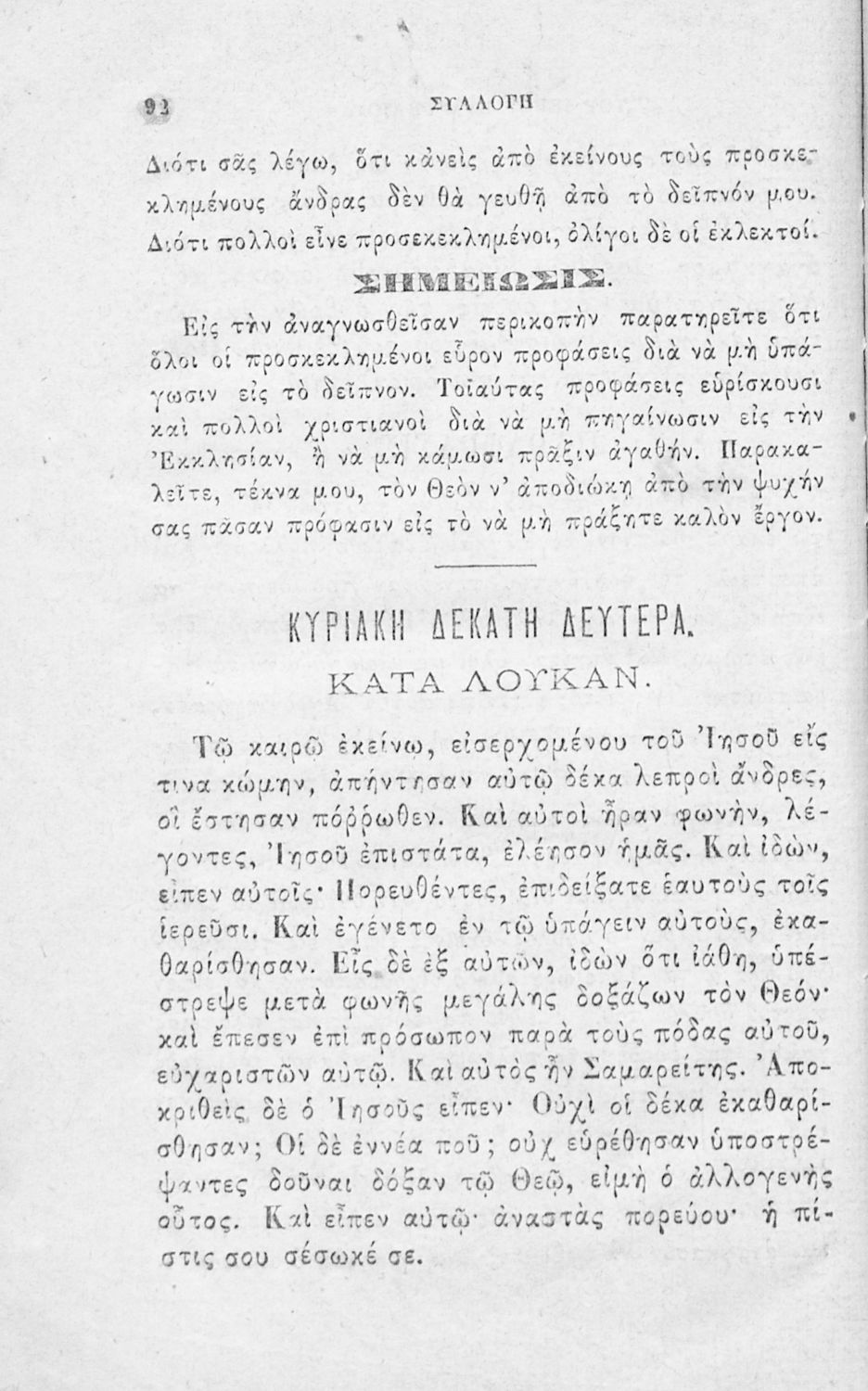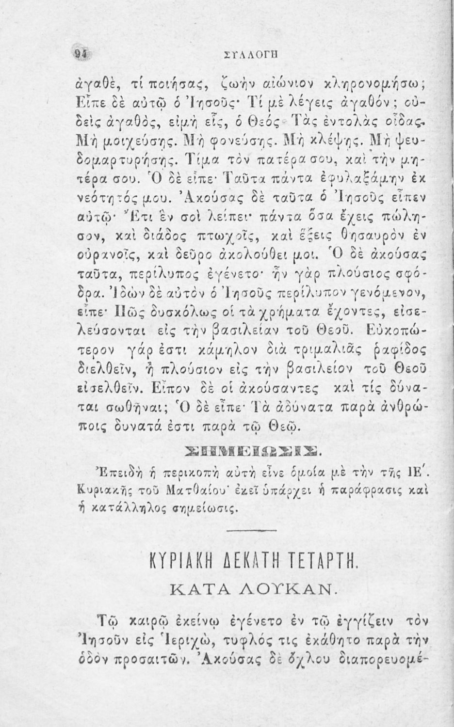 Τίτλος: Συλλογή των κατά τας θείας λειτουργίας άπασων των Κυριακών αναγινωσκομένων περικοπών του ιερού ευαγγελίου προς χρήσιν των Δημοτικών Σχολείων