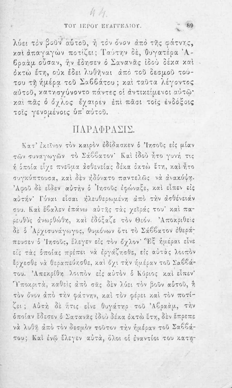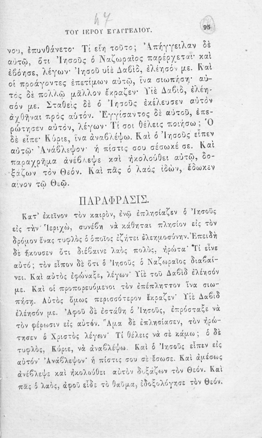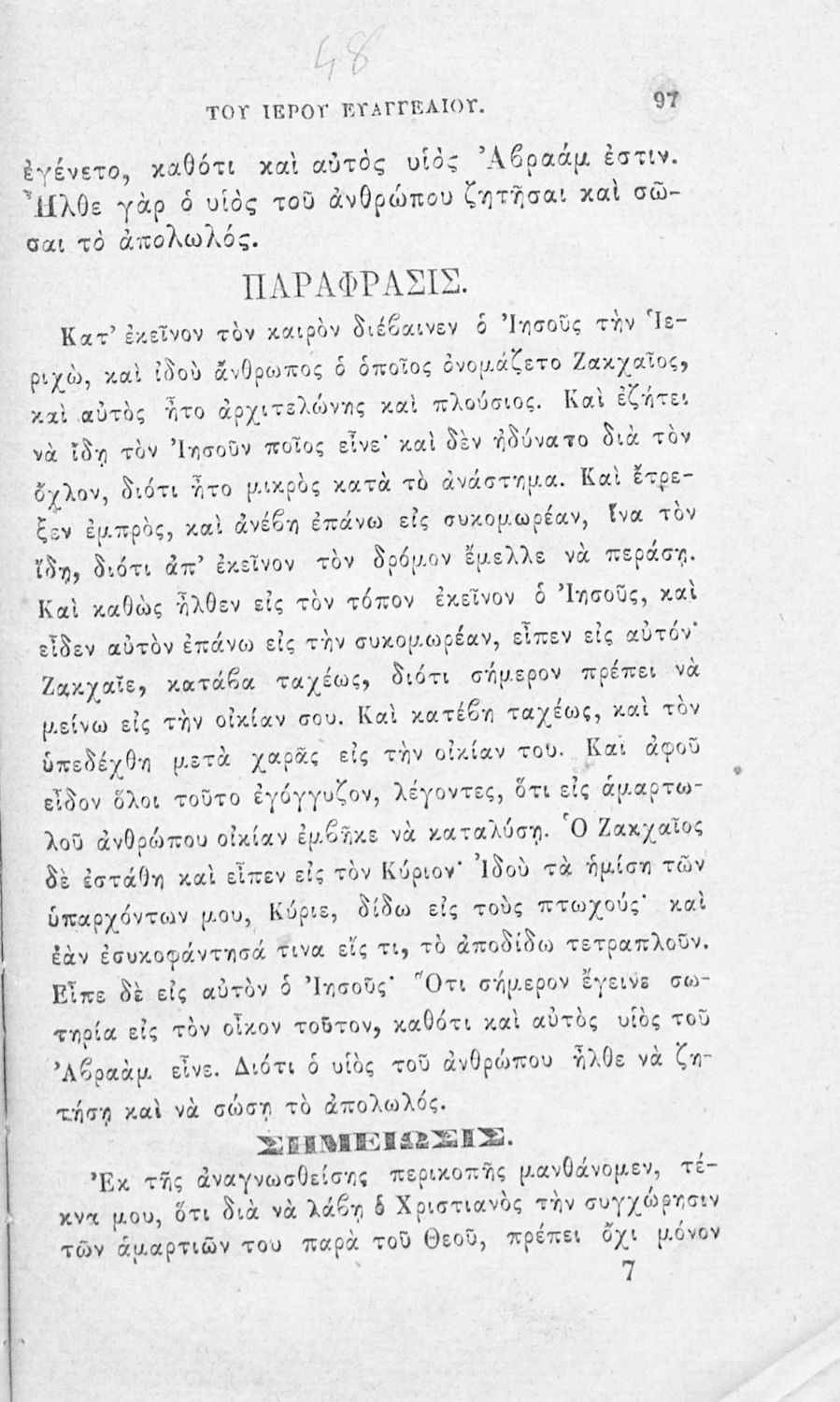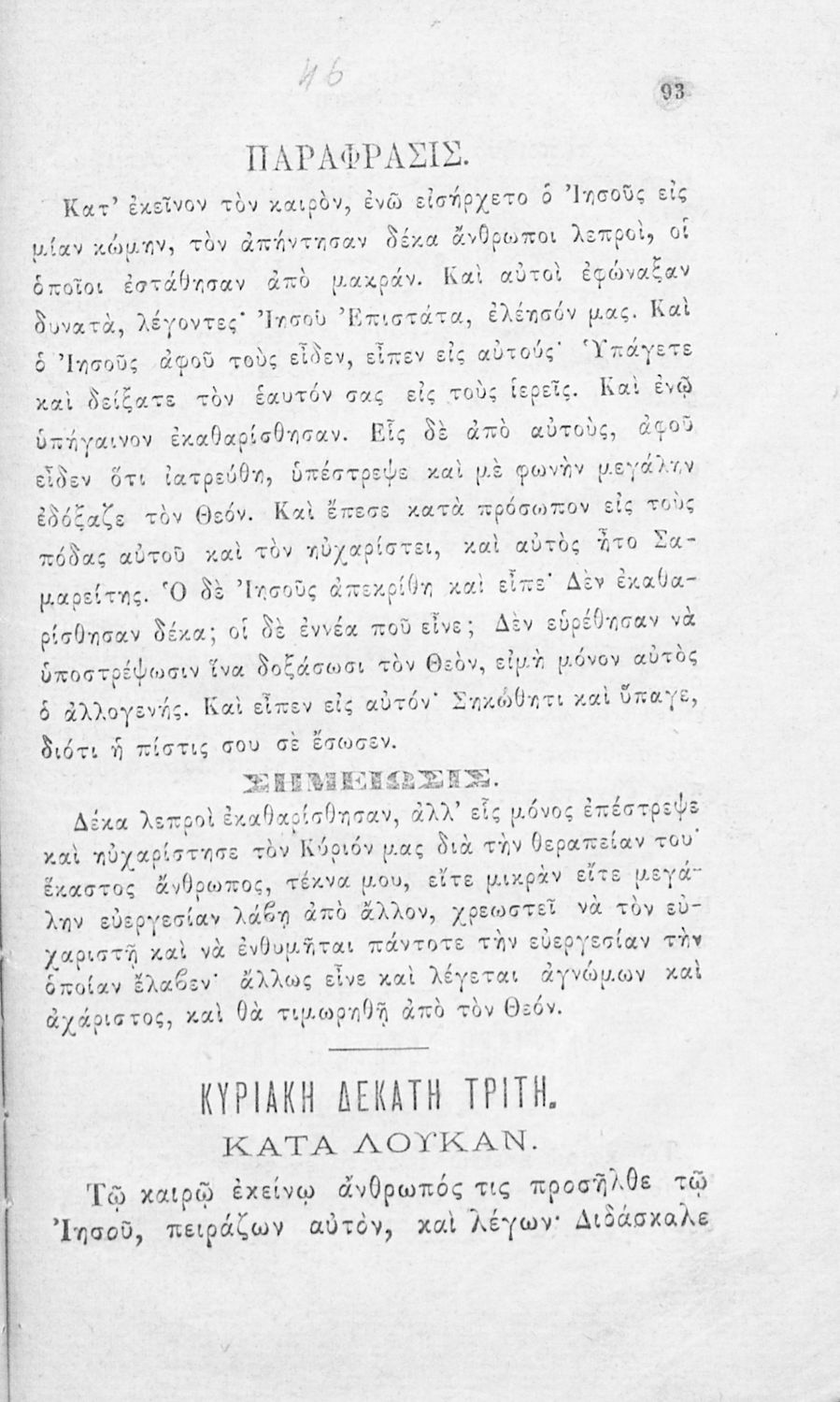 Τίτλος: Συλλογή των κατά τας θείας λειτουργίας άπασων των Κυριακών αναγινωσκομένων περικοπών του ιερού ευαγγελίου προς χρήσιν των Δημοτικών Σχολείων