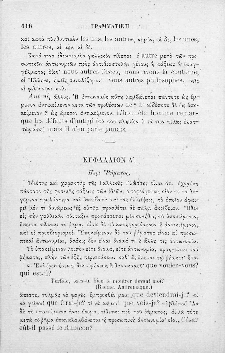Γραμματική της γαλλικής γλώσσης, συνταχθείσα προς χρήσιν των Γυμνασίων και σχολείων της Ελλάδος