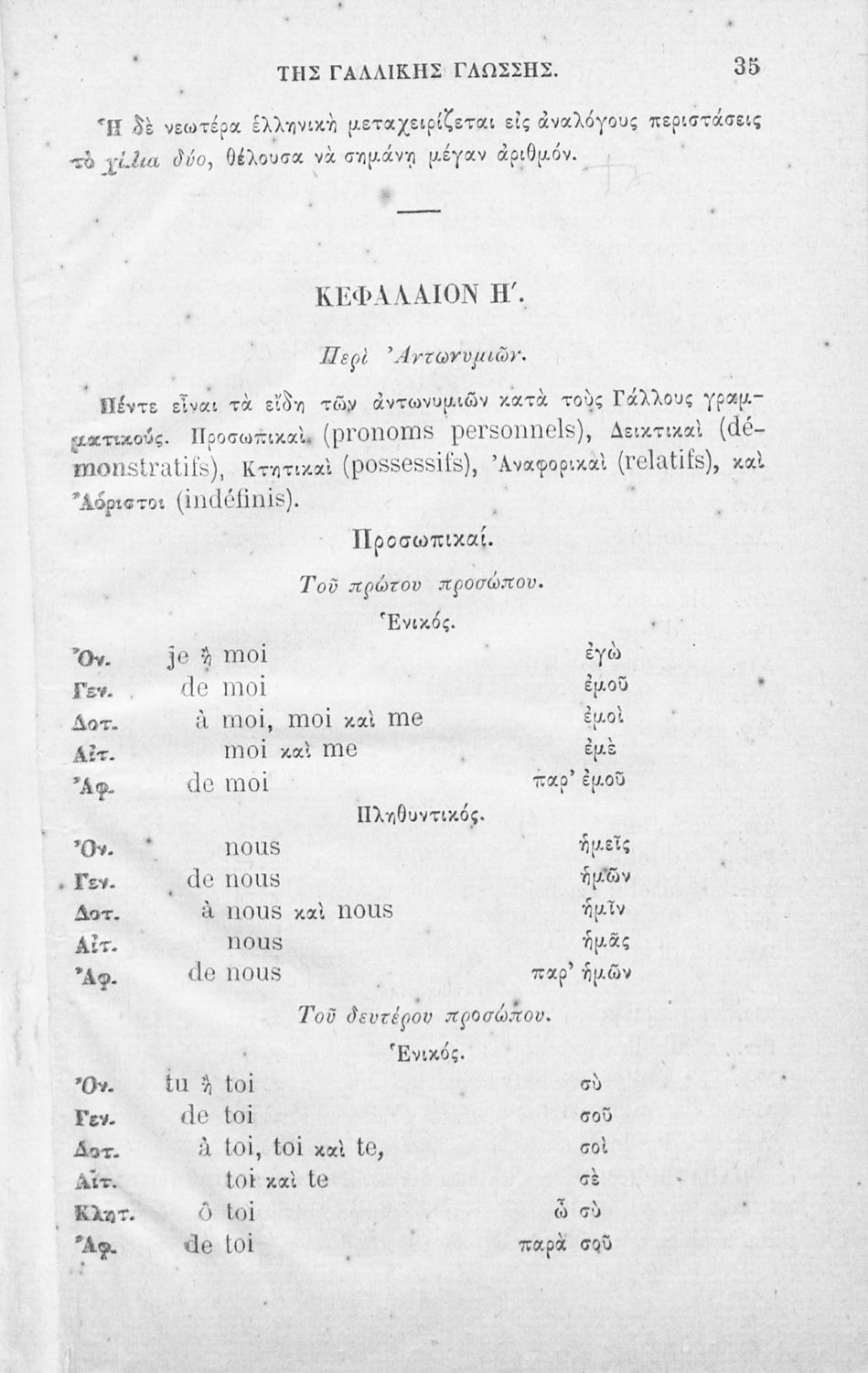 Τίτλος: Γραμματική της γαλλικής γλώσσης, συνταχθείσα προς χρήσιν των Γυμνασίων και σχολείων της Ελλάδος