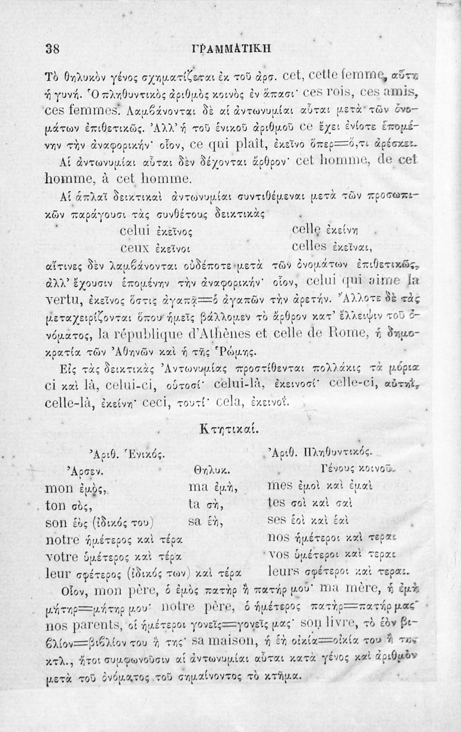 Γραμματική της γαλλικής γλώσσης, συνταχθείσα προς χρήσιν των Γυμνασίων και σχολείων της Ελλάδος