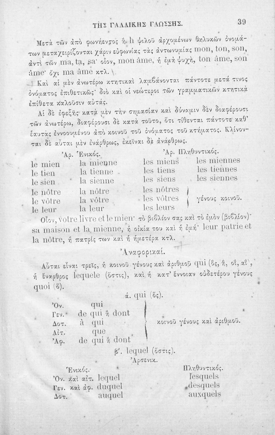 Σχετιζόμενοι όροι:  Γαλλικά, γραμματική, συντακτικόν