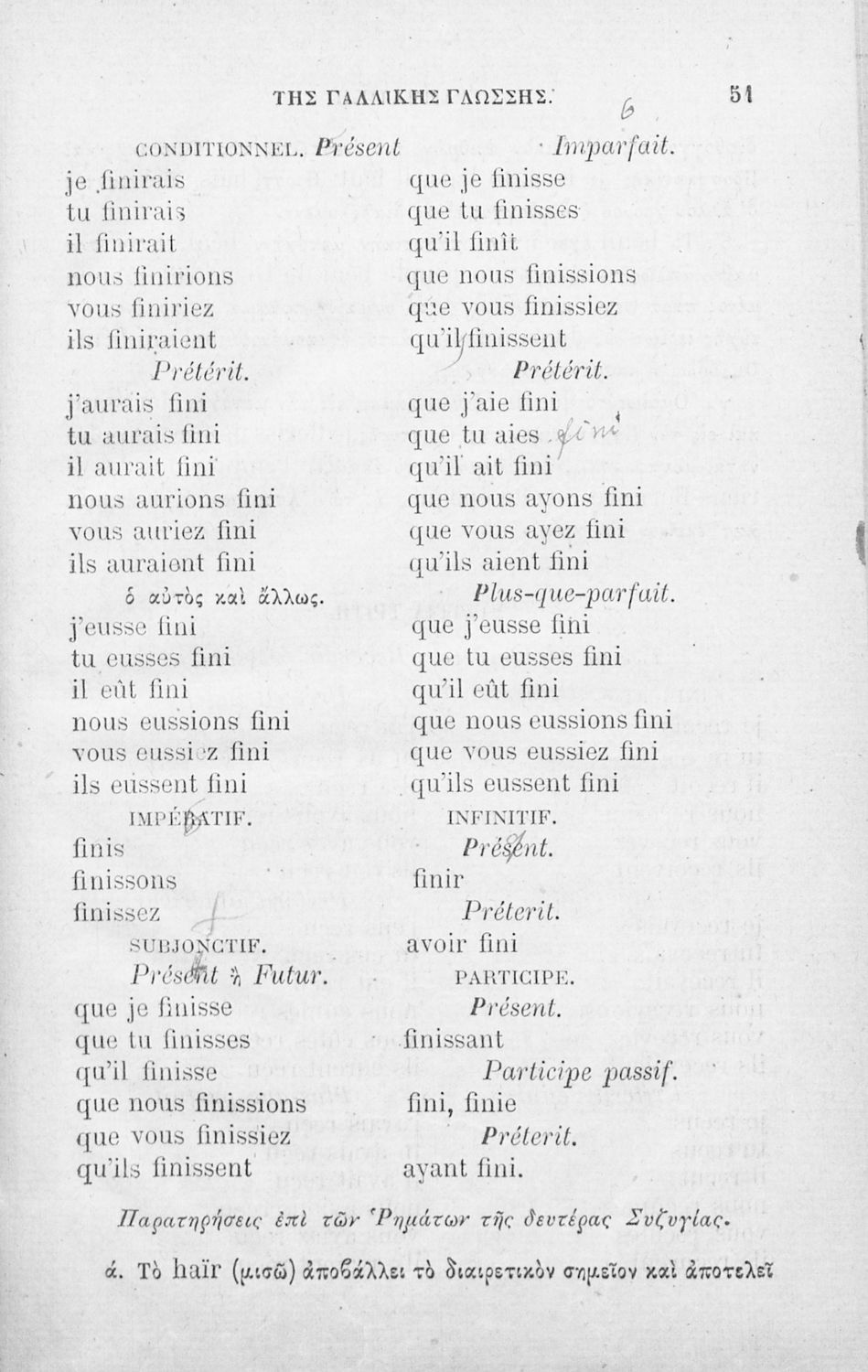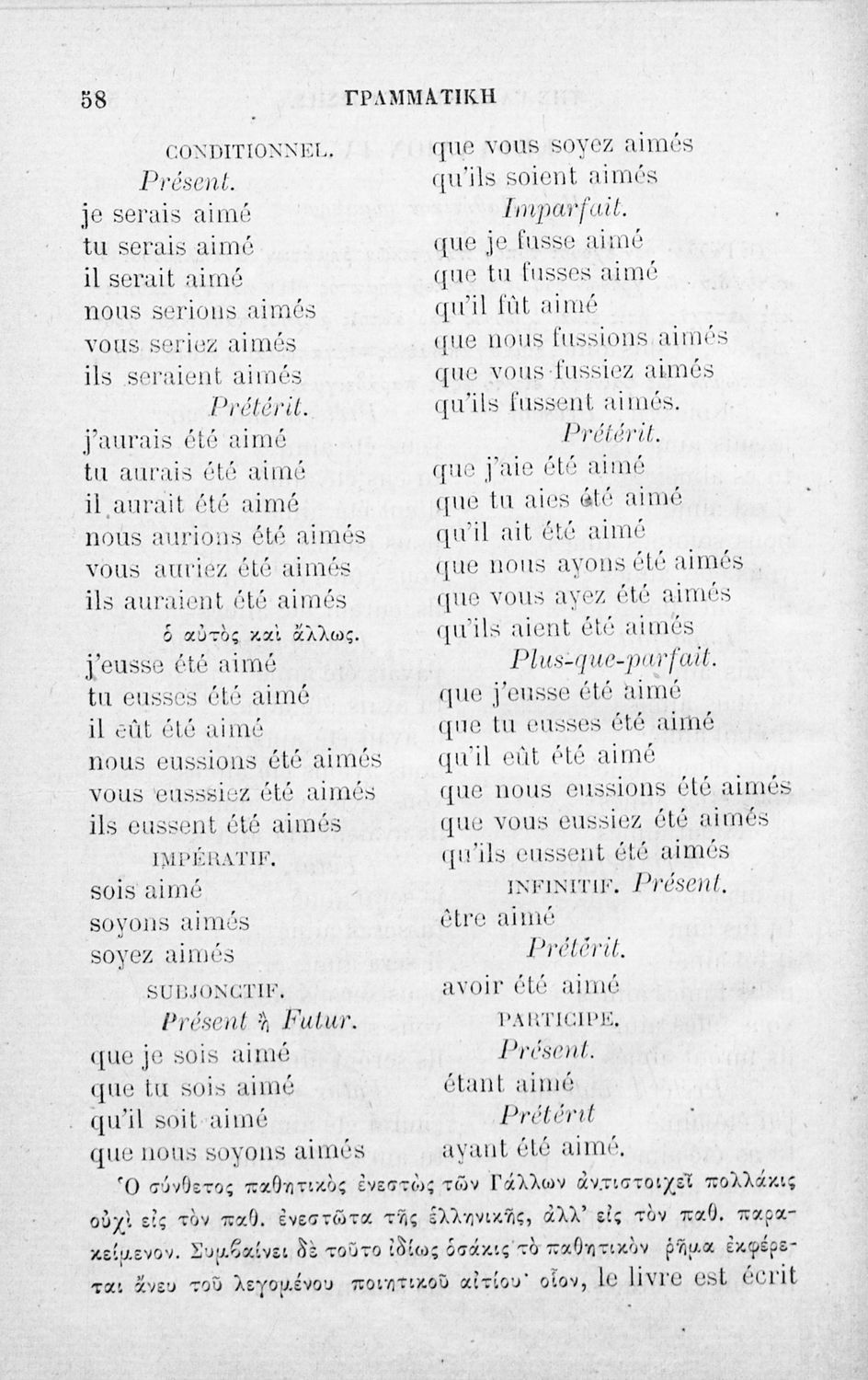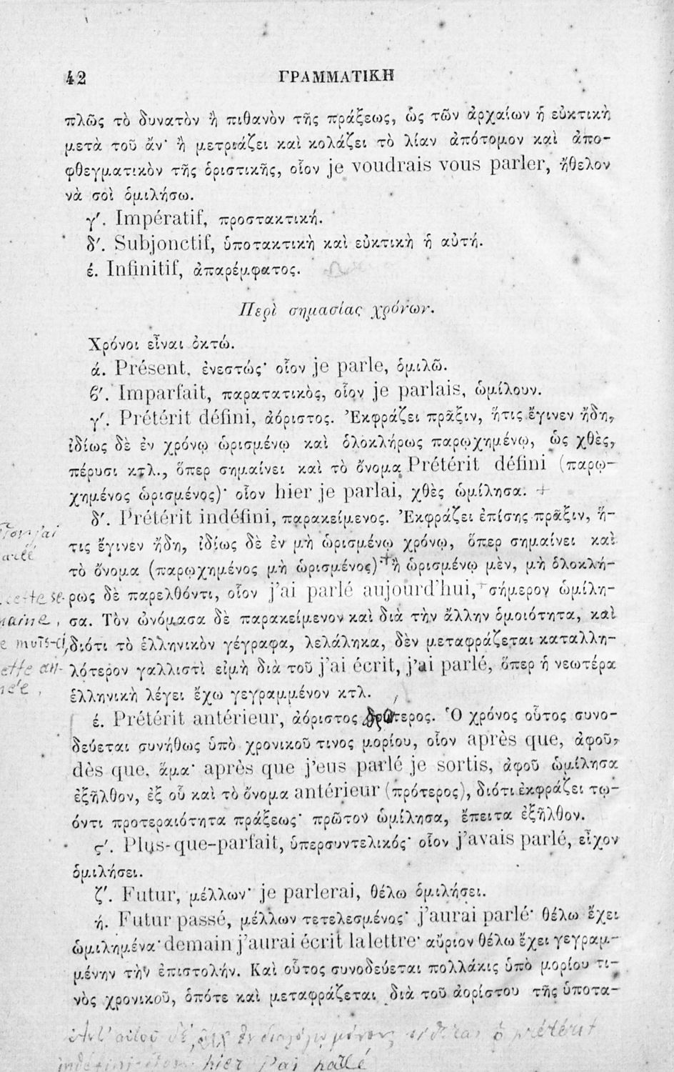 Βαθμίδα εκπαίδευσης: Δευτεροβάθμια Τάξη: Γυμνάσιο Μάθημα: Γαλλικά Γλώσσα: Καθαρεύουσα Παρουσίαση περιεχομένου: Σχολικό εγχειρίδιο Γαλλικών Γυμνασίου που περιέχει τους κανόνες γραμματικής και συντακτικού. |