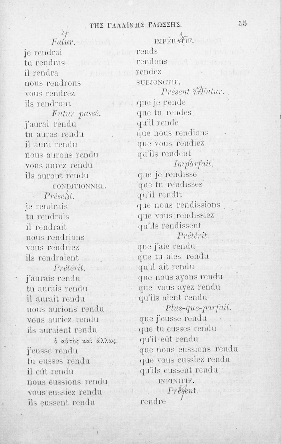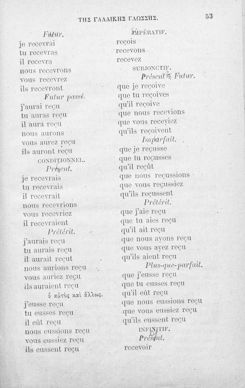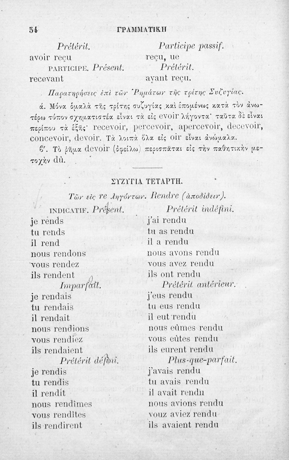 Βαθμίδα εκπαίδευσης: Δευτεροβάθμια Τάξη: Γυμνάσιο Μάθημα: Γαλλικά Γλώσσα: Καθαρεύουσα Παρουσίαση περιεχομένου: Σχολικό εγχειρίδιο Γαλλικών Γυμνασίου που περιέχει τους κανόνες γραμματικής και συντακτικού. |