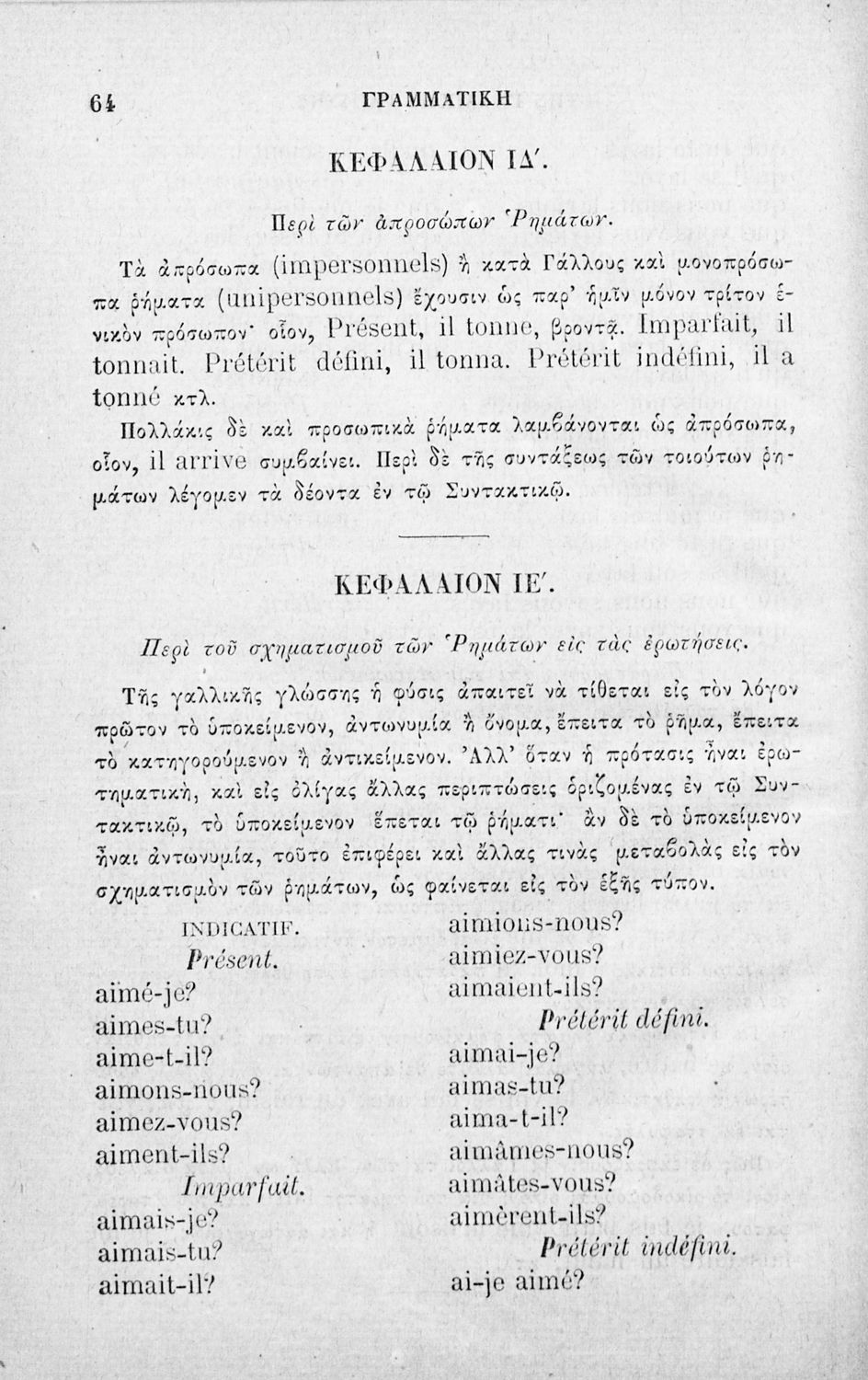 Γραμματική της γαλλικής γλώσσης, συνταχθείσα προς χρήσιν των Γυμνασίων και σχολείων της Ελλάδος