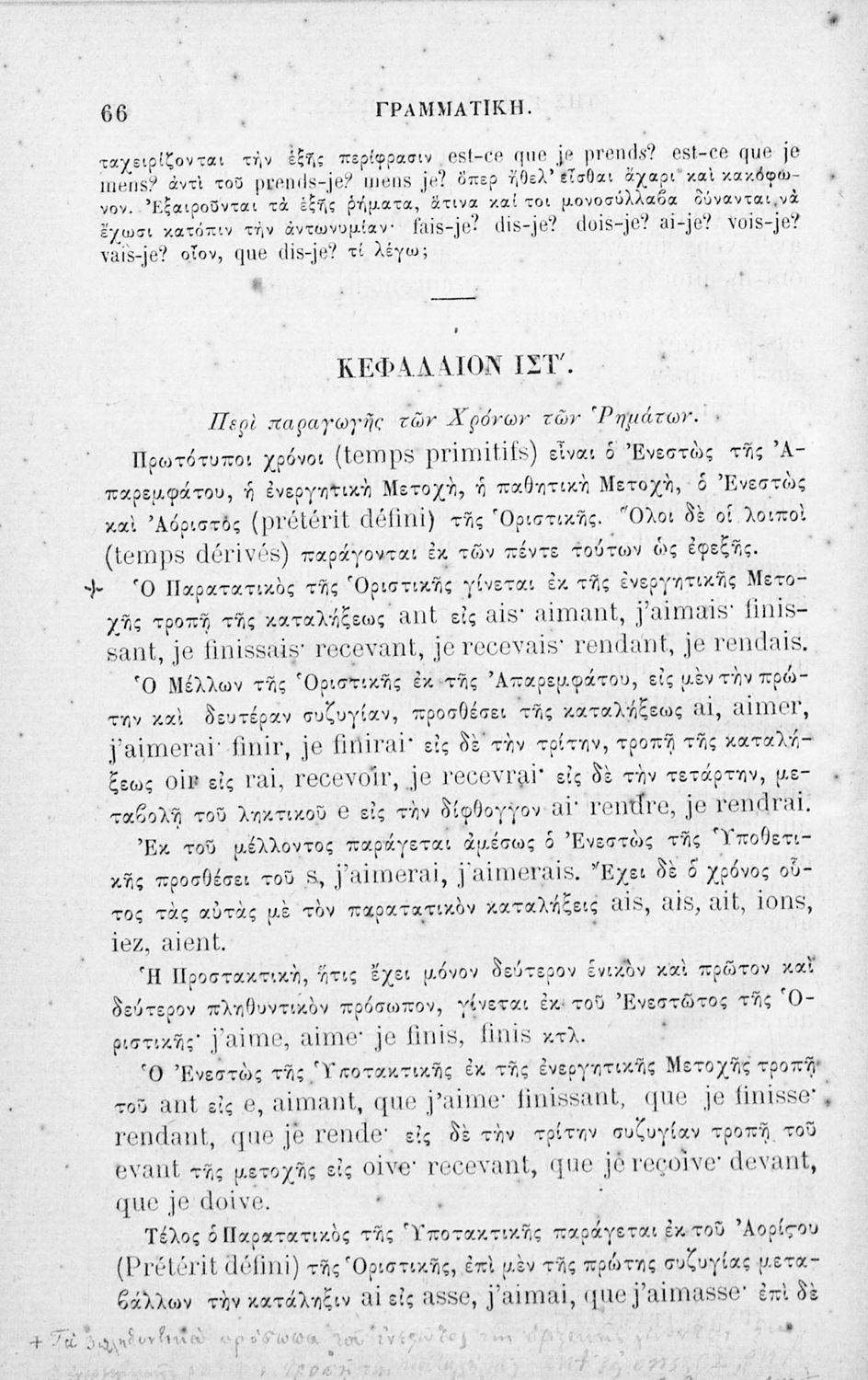 Τίτλος: Γραμματική της γαλλικής γλώσσης, συνταχθείσα προς χρήσιν των Γυμνασίων και σχολείων της Ελλάδος