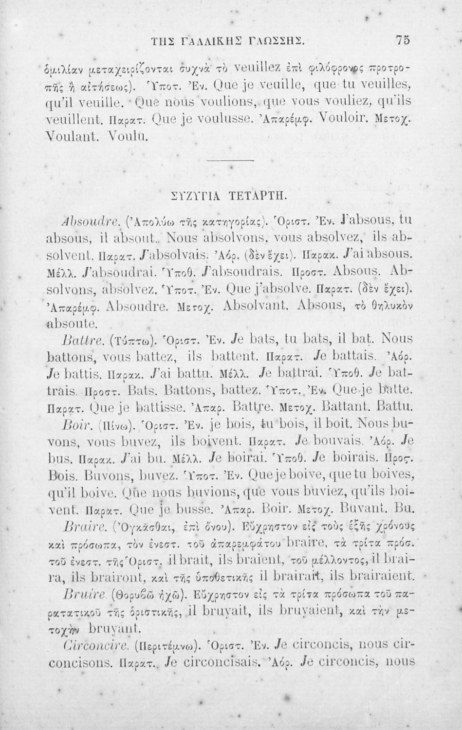 Σχετιζόμενοι όροι:  Γαλλικά, γραμματική, συντακτικόν