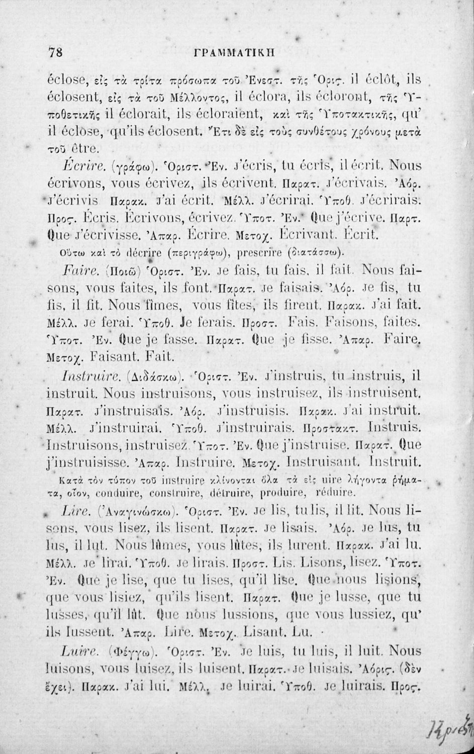 Μαθητικό βοήθημα Γαλλικών των Ελληνικών Σχολείων και Γυμνασίων που περιέχει τους γραμματικούς κανόνες της Γαλλικής γλώσσας.