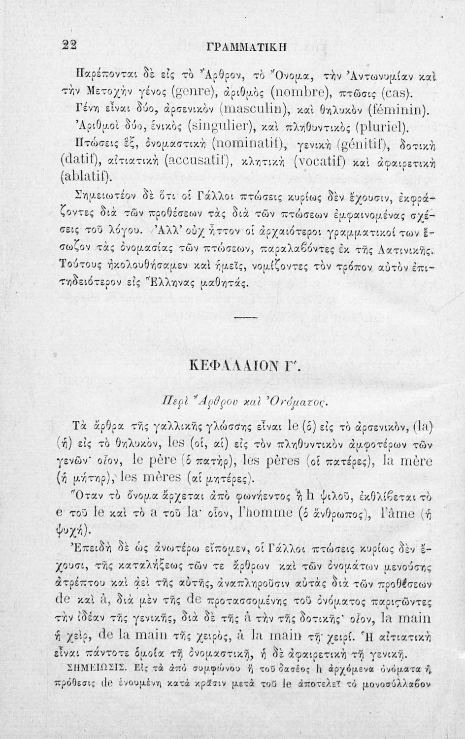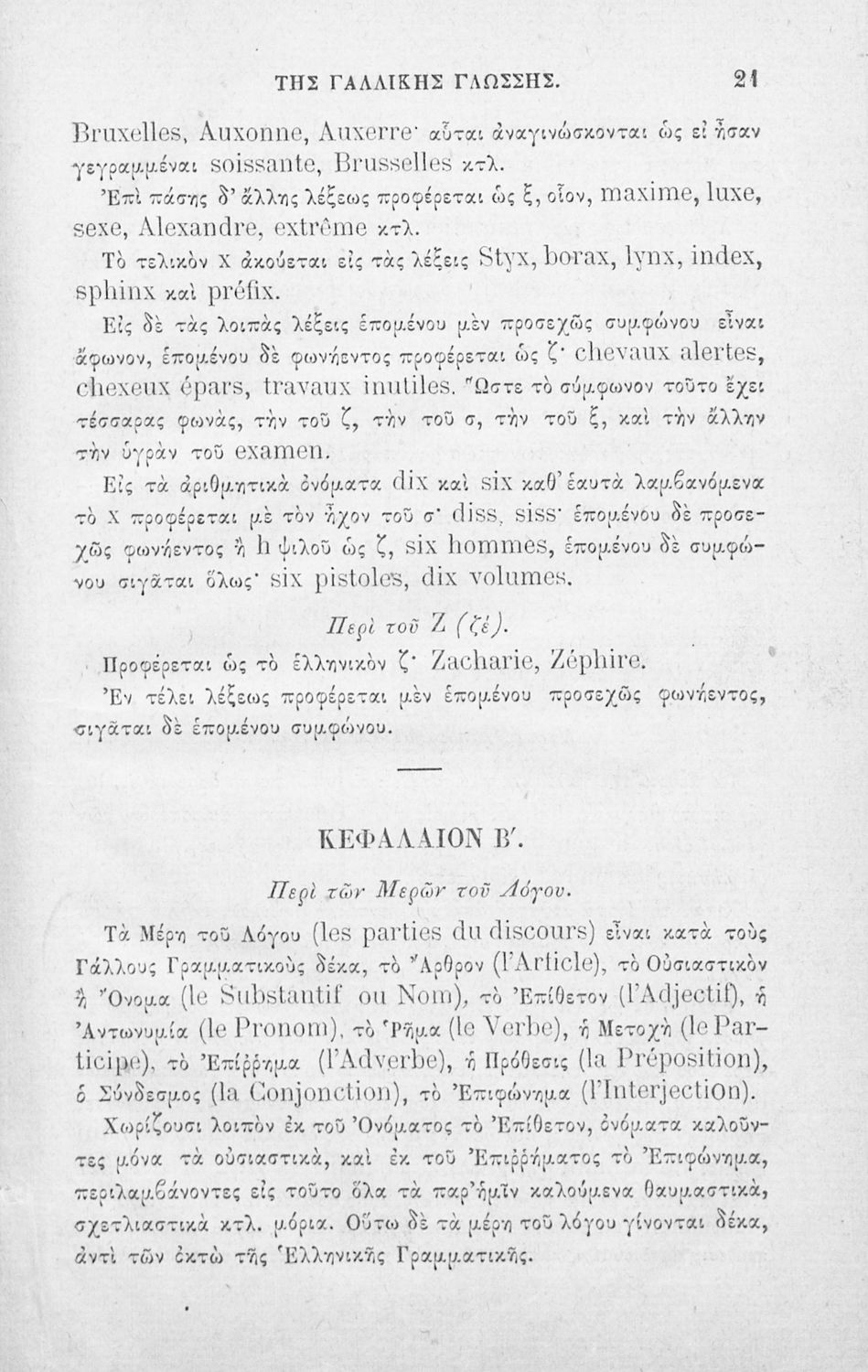LDR 00958 2200205 4500 035 ## _a02-02797 040 ## _aΕλληνικό Λογοτεχνικό και Ιστορικό Αρχείο 041 ## _ael 100 ## _aΙωάννης Δ. Καρασούτσας 110 ## _a1877.95 245 0# _aΓραμματική της γαλλικής γλώσσης, συνταχθείσα προς χρήσιν των Γυμνασίων και σχολείων της Ελλάδος 260 ## _aΑθήνα _bΑ. Κορομηλάς _c1877 300 ## _a162 520 ## _aΣχολικό εγχειρίδιο Γαλλικών Γυμνασίου που περιέχει τους κανόνες γραμματικής και συντακτικού. 521 ## _aΓυμνάσιο 522 ## _aΕλλάδα 546 ## _aΚαθαρεύουσα 563 ## _aΣκληρό Εξώφυλλο 583 ## _a1870/ 650 #4 _aΑντωνυμίες _aΕπίθετα _aΟνόματα _aΡήματα
