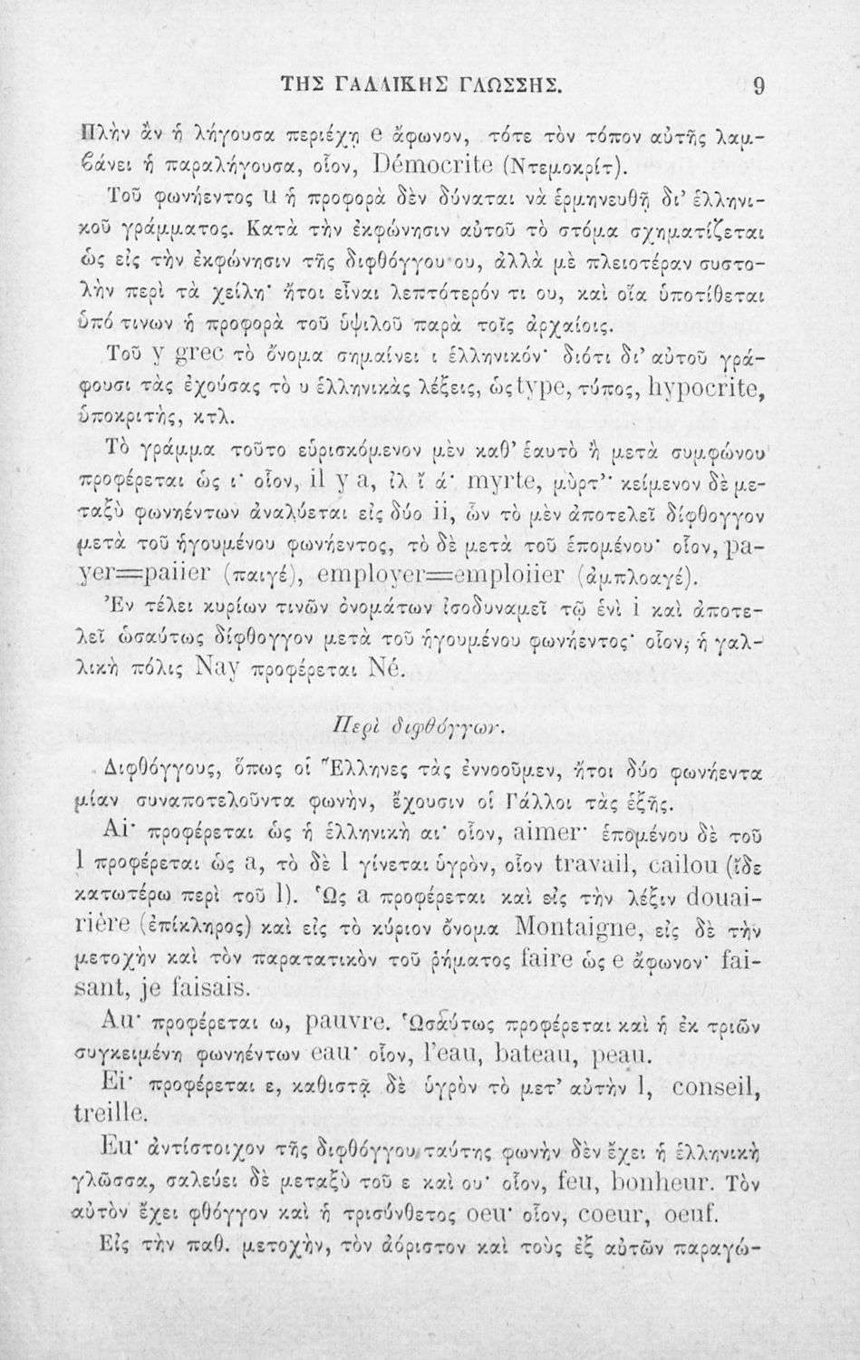 Βαθμίδα εκπαίδευσης: Δευτεροβάθμια Τάξη: Γυμνάσιο Μάθημα: Γαλλικά Γλώσσα: Καθαρεύουσα Παρουσίαση περιεχομένου: Σχολικό εγχειρίδιο Γαλλικών Γυμνασίου που περιέχει τους κανόνες γραμματικής και συντακτικού. |