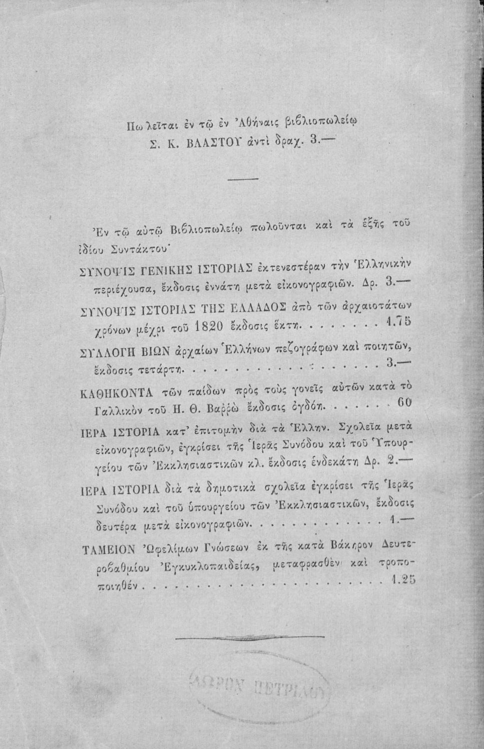 Σχολικό εγχειρίδιο Θρησκευτικών για τα Ιερατικά σχολεία με τη γνωμοδότηση της Ιεράς Συνόδου και έγκριση του υπουργού των Εκκλησιαστικών και της δημόσιας εκπαίδευσης. Ο συγγραφέας υπήρξε τακτικός καθηγητής της ...