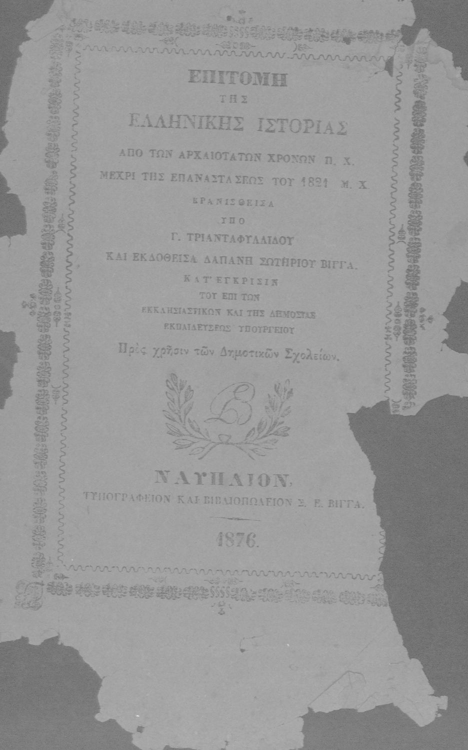 Εκδότης: Σωτ. Βίγγας Έτος έκδοσης: 1876 Τόπος έκδοσης: Ναύπλιο |