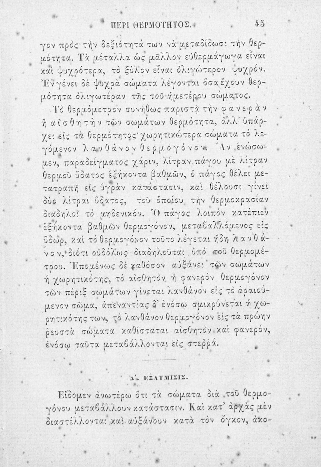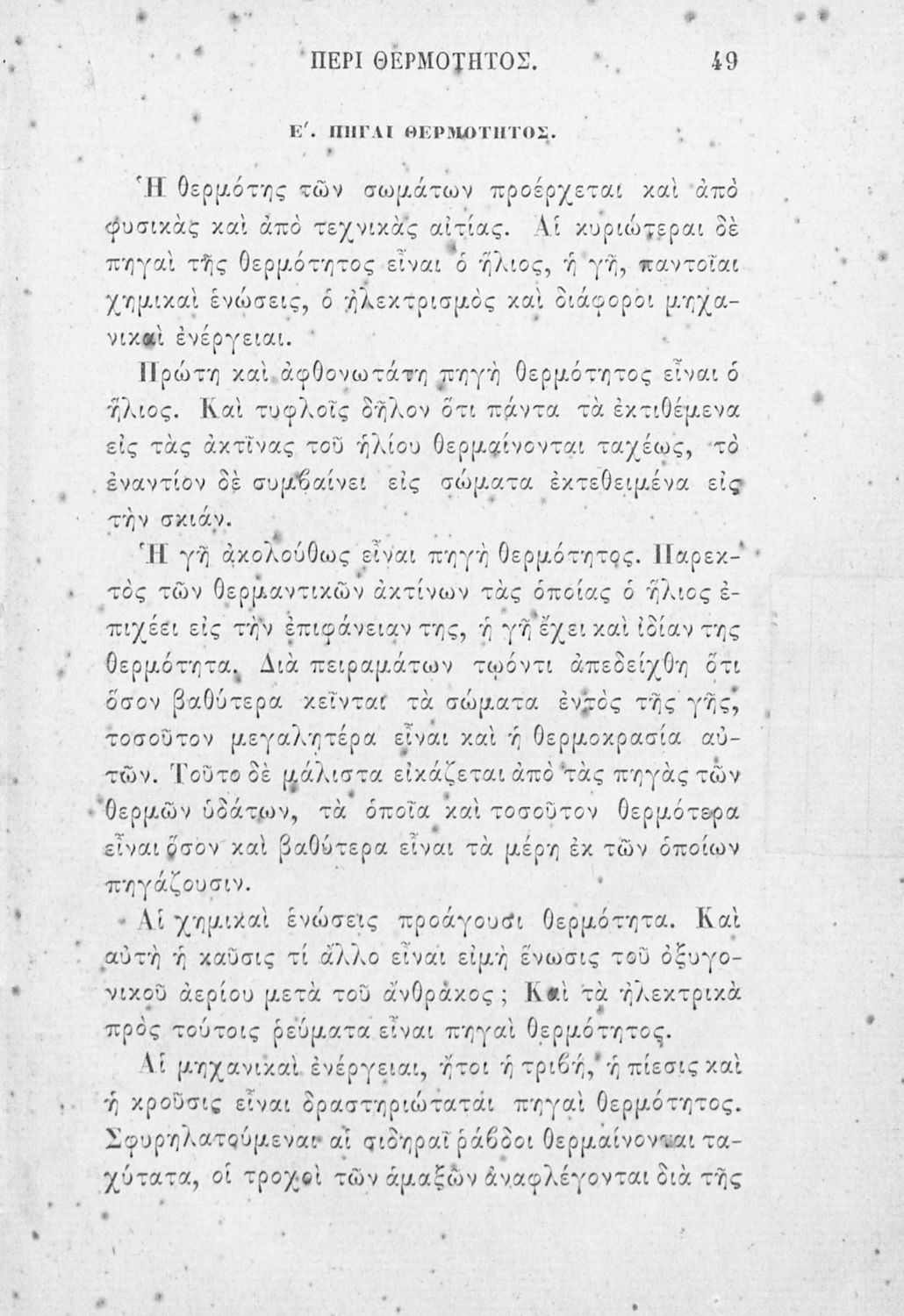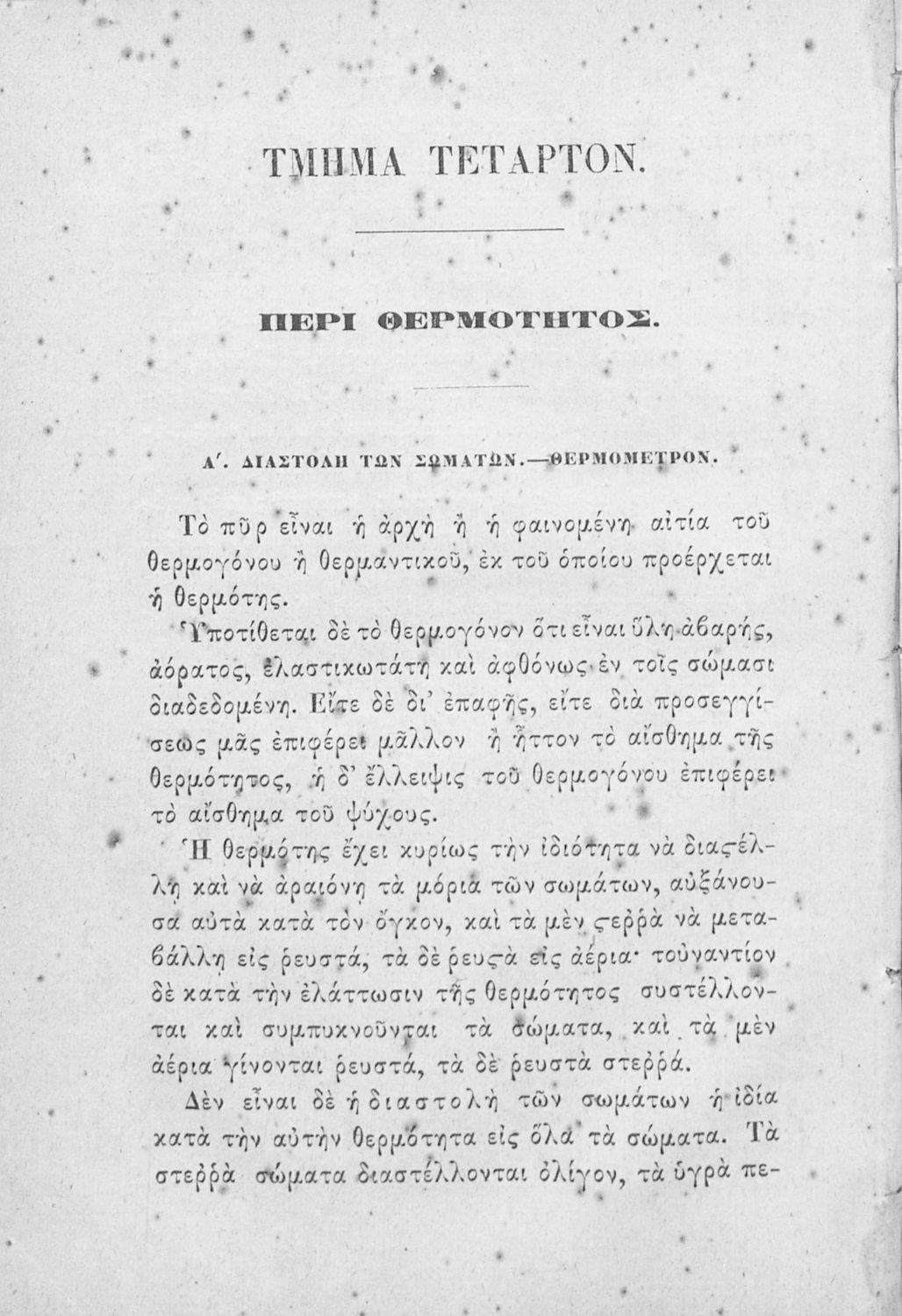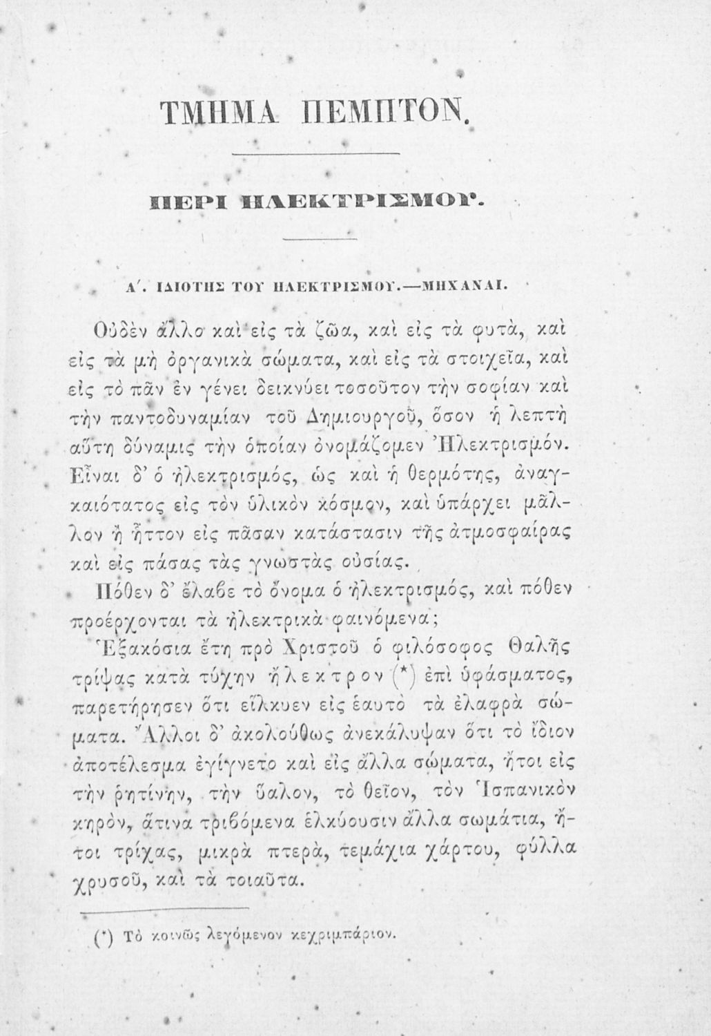 Σχολικό εγχειρίδιο Δημοτικού που αποτελεί μετάφραση του Simples lectures sur les sciences, les arts et l'industrie: à l'usage des écoles primaires και περιλαμβάνει εισαγωγικές γνώσεις αστρονομίας, φυσικής, ...