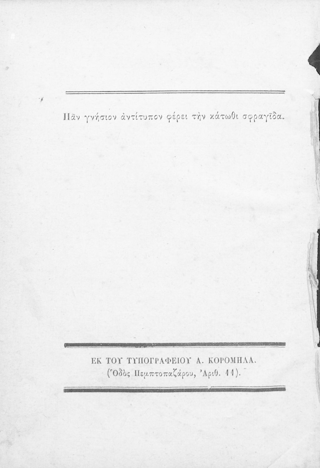 Εντοπισμός πρωτοτύπου: Ελληνικό Λογοτεχνικό και Ιστορικό Αρχείο Κωδικός βιβλιοθήκης: 1876.197 |