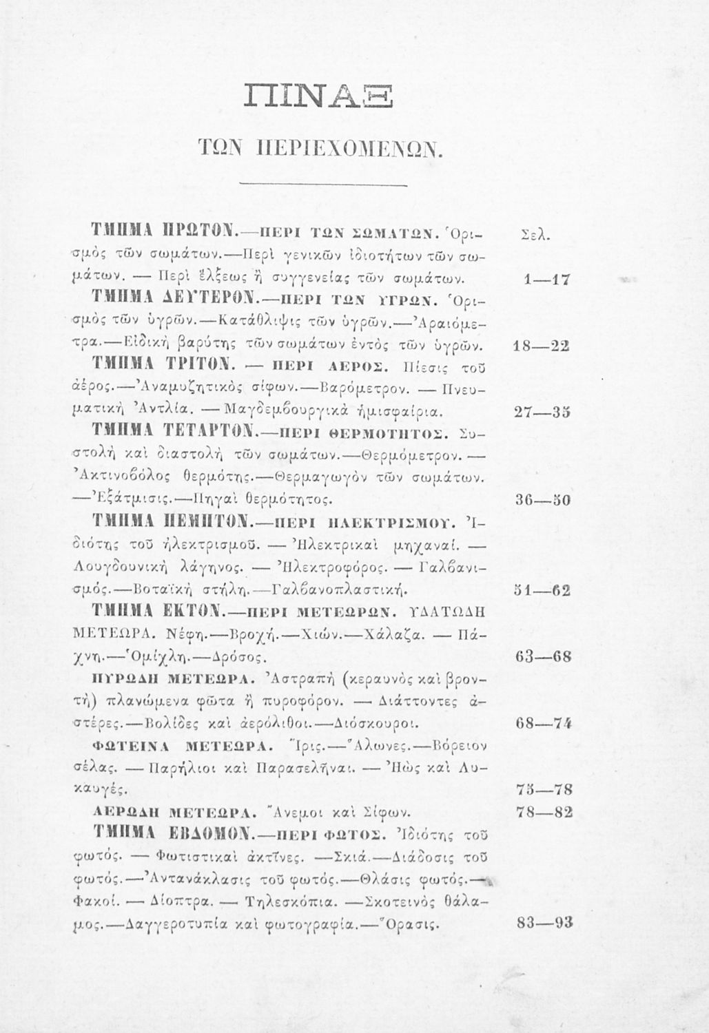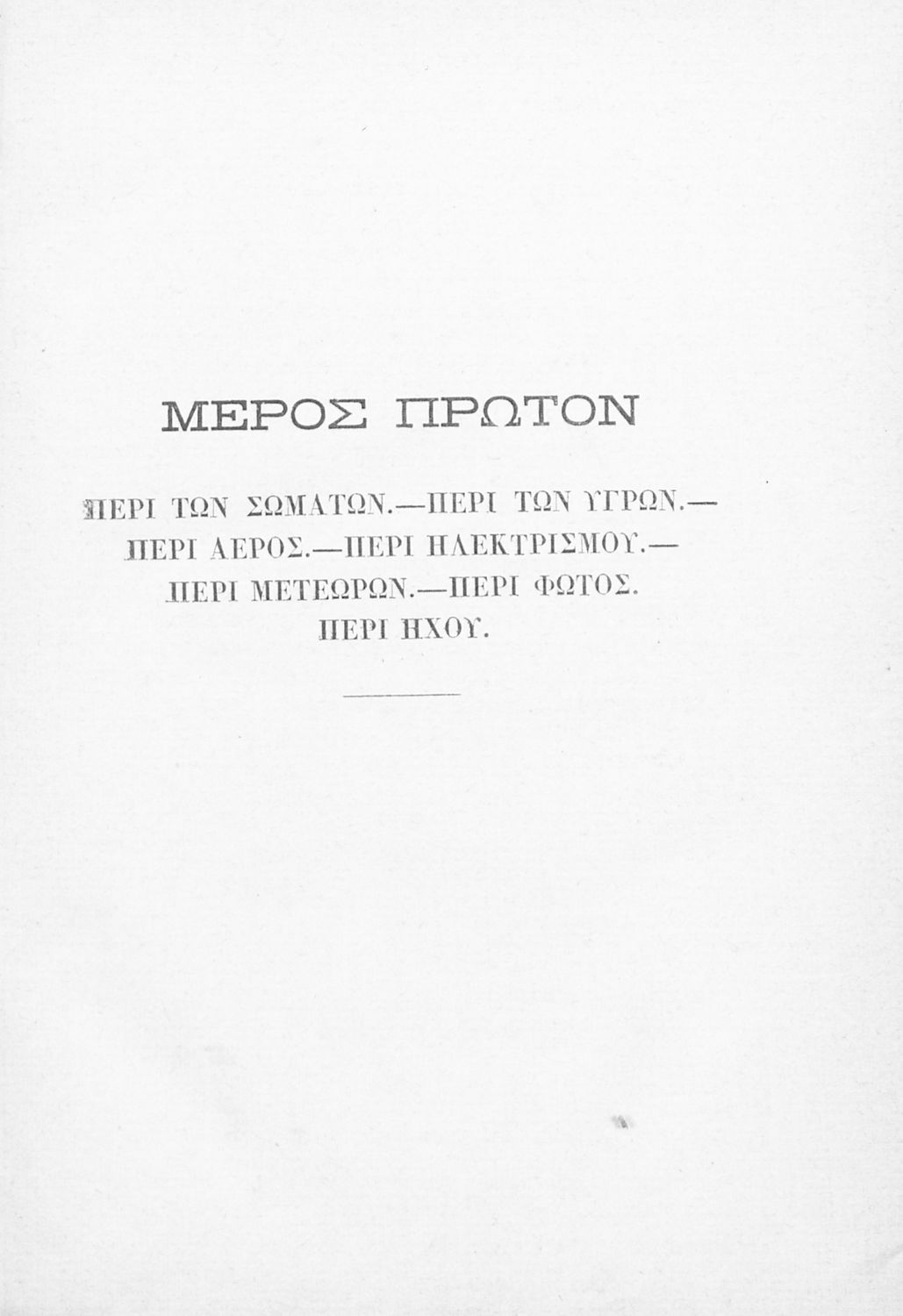Βαθμίδα εκπαίδευσης: Δευτεροβάθμια Μάθημα: Φυσική Γλώσσα: Καθαρεύουσα Παρουσίαση περιεχομένου: Σχολικό εγχειρίδιο Φυσικής που εστιάζει στον ηλεκτρισμό, το μαγνητισμό, την οπτική και την ακουστική. |