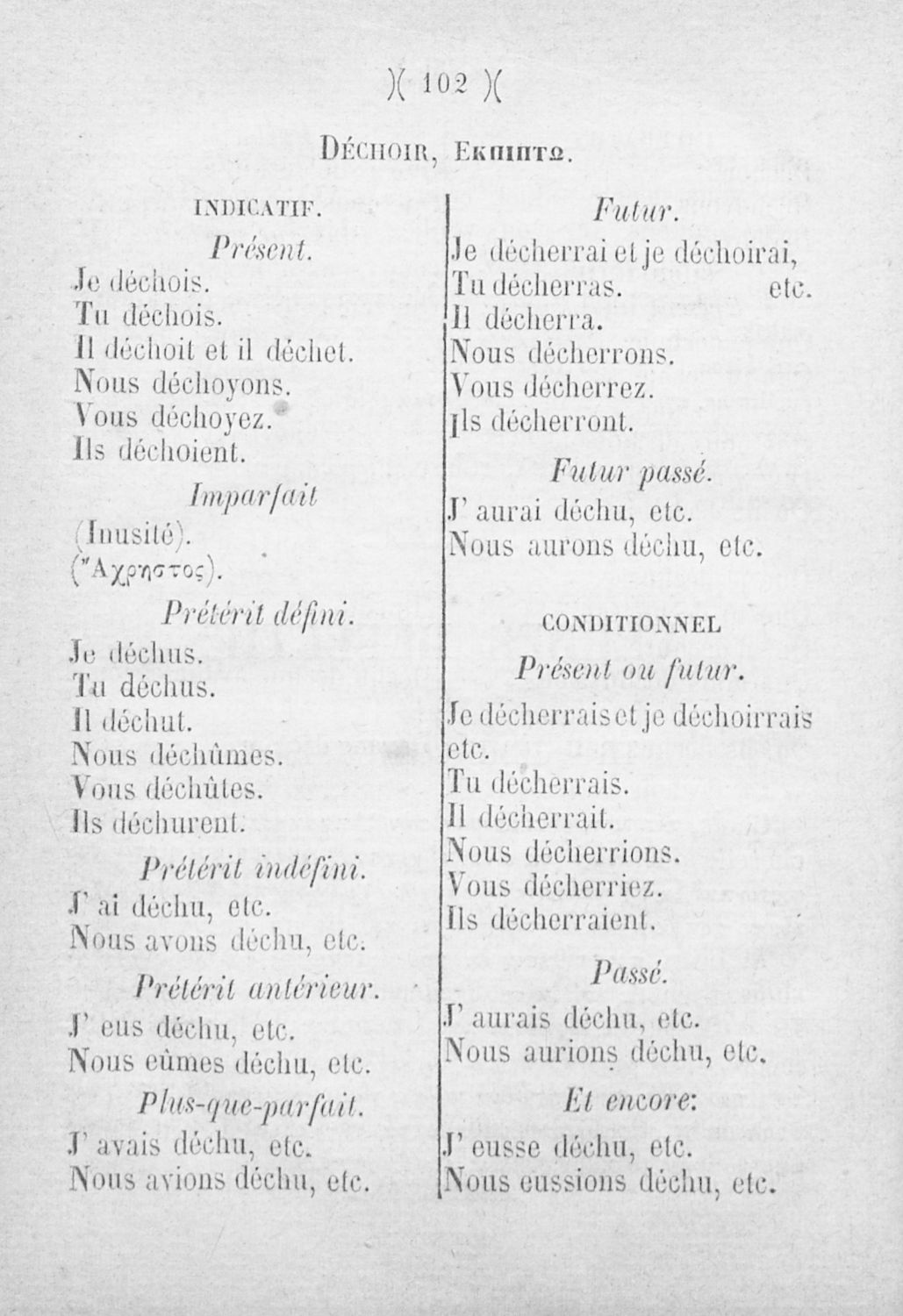 Μαθητικό βοήθημα Γαλλικών που περιλαμβάνει κατάλογο ανωμάλων ρημάτων.