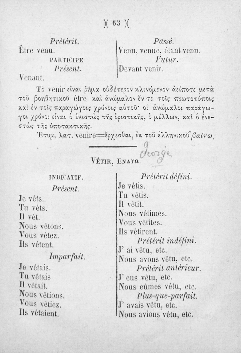 Μαθητικό βοήθημα Γαλλικών των Ελληνικών Σχολείων και Γυμνασίων που περιέχει τους γραμματικούς κανόνες της Γαλλικής γλώσσας.