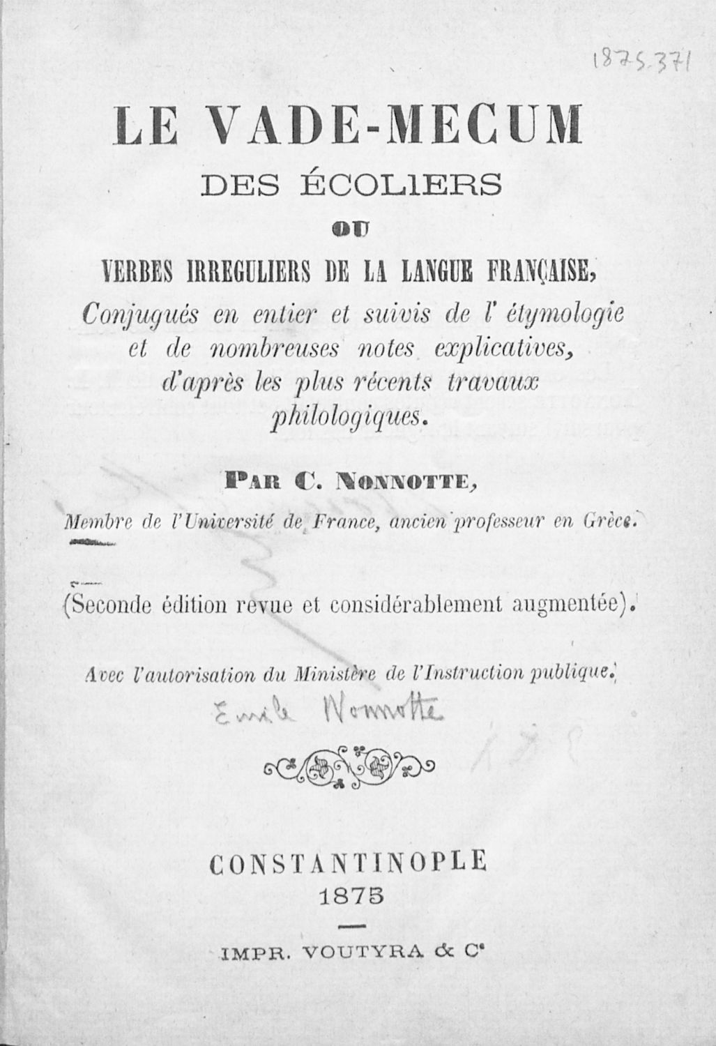 Τίτλος: Le vade-mecum des ecoliers, ou verbes irreguliers de la langue francaise
