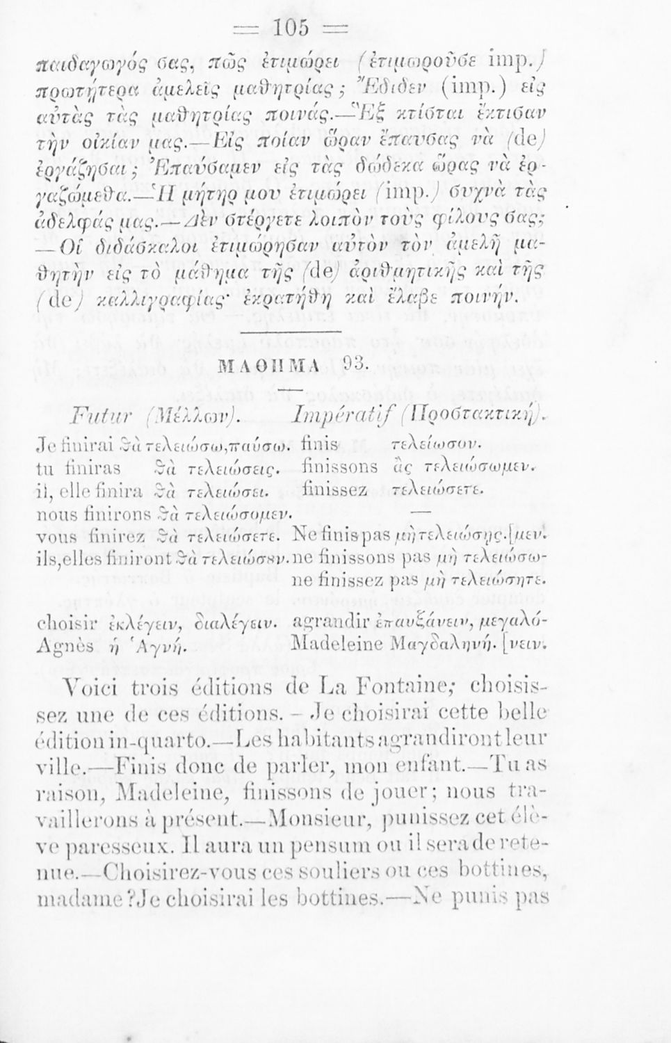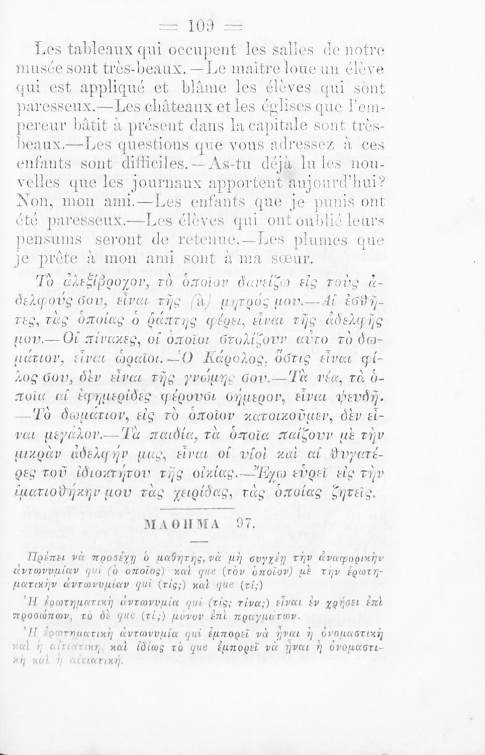 Σχολικό εγχειρίδιο Γαλλικών των Γυμνασίων, Αστικών Σχολείων θηλέων και Διδασκαλείων Δημοτικής Εκπαίδευσης. Κείμενα, ποιήματα, από εποχές και τον κοινωνικό και οικογενειακό βίο, τα οποία συνοδεύονται ασκήσεις ...