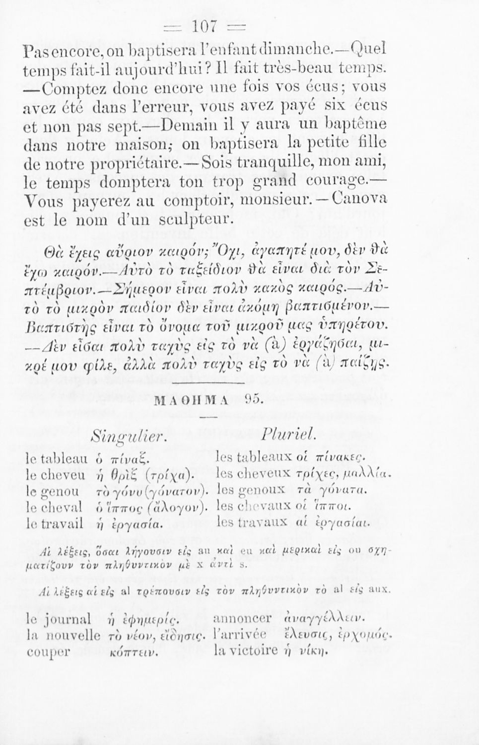 Στοιχειώδης μέθοδος της γαλλικής γλώσσης διά τα σχολεία, Μέρος Αον, Αλφαβητάριον