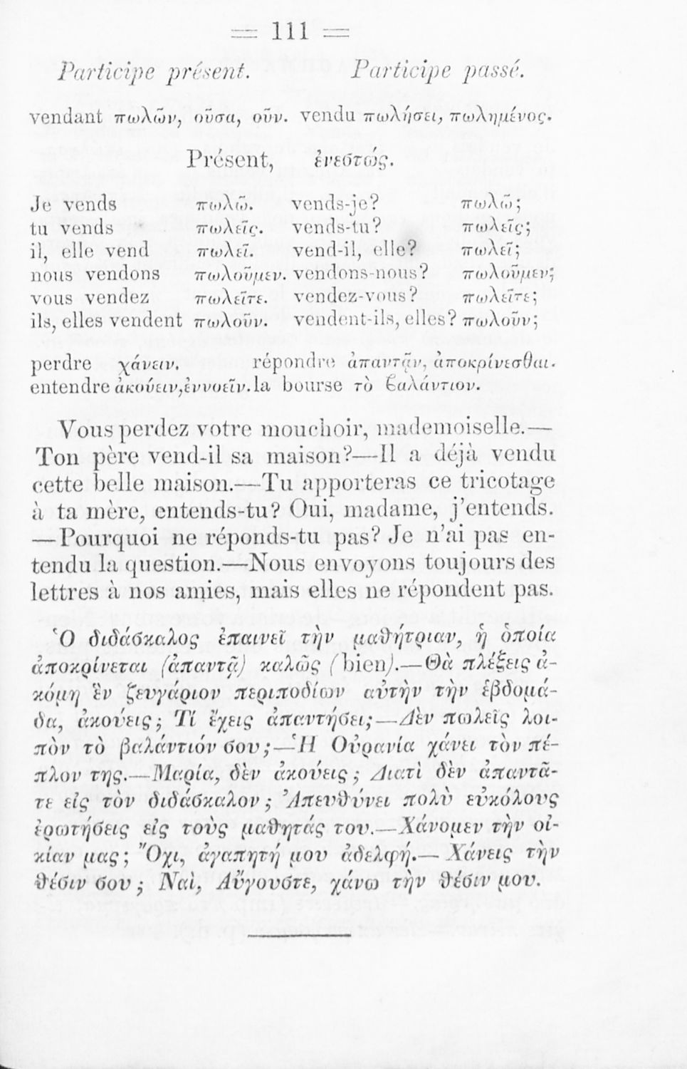 Σχολικό εγχειρίδιο Γαλλικών περιέχει κείμενα απλών διαλόγων στη γαλλική γλώσσα και τα οποία αναλύει γραμματικά και συντακτικά.