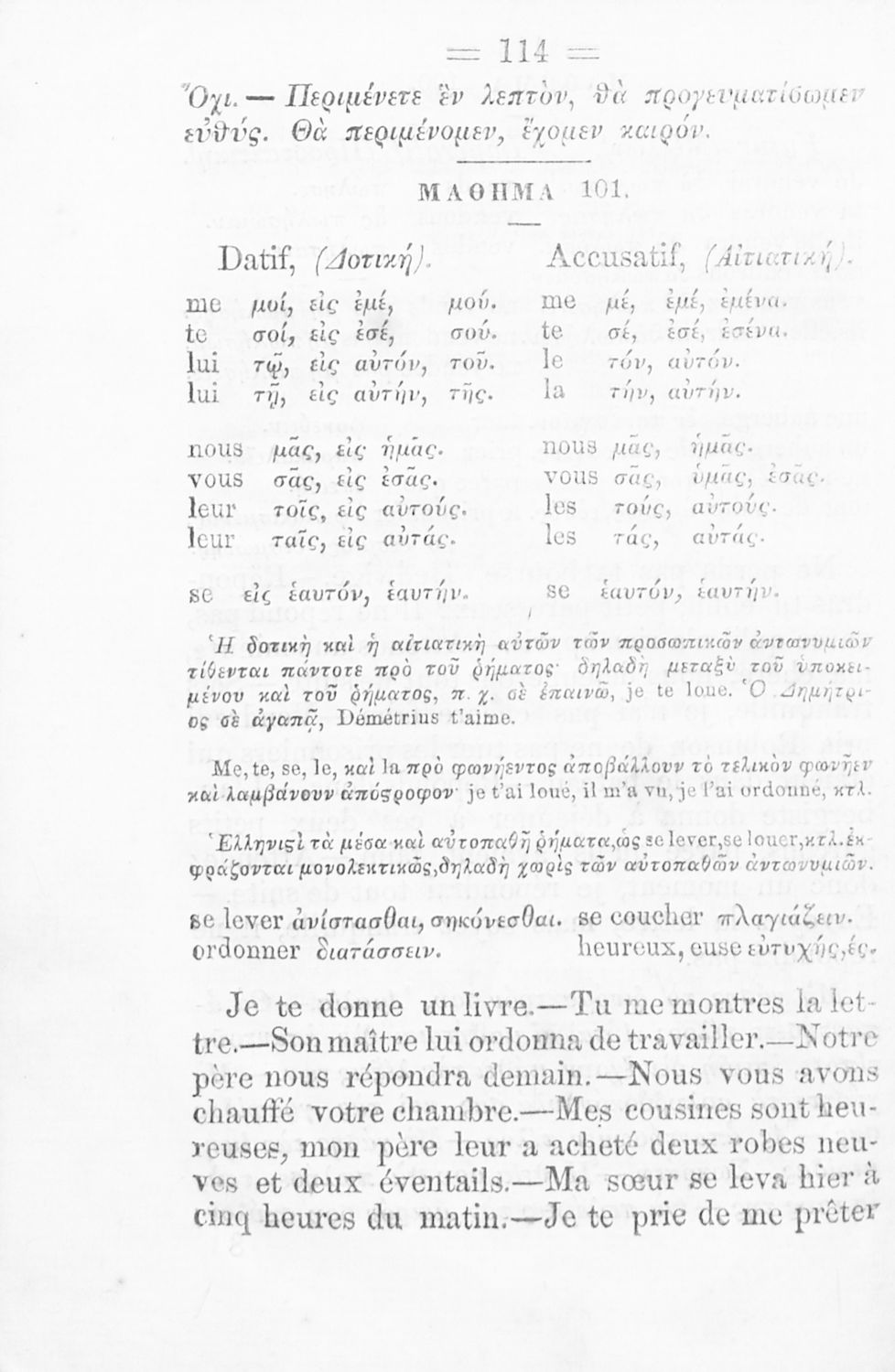 Σχολικό εγχειρίδιο Αρχαίων Ελληνικών για τα Ελληνικά Σχολεία, Παρθεναγωγεία και Γυμνάσια που περιέχει τους κανόνες γραμματικής και είναι χωρισμένο σε φθογγολογικό, τυπολογικό και ετυμολογικό μέρος.
