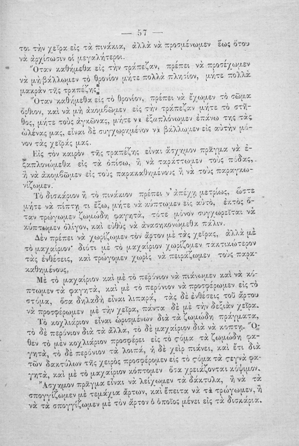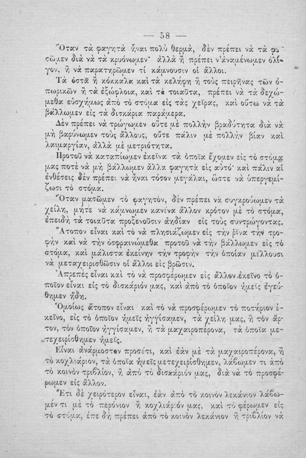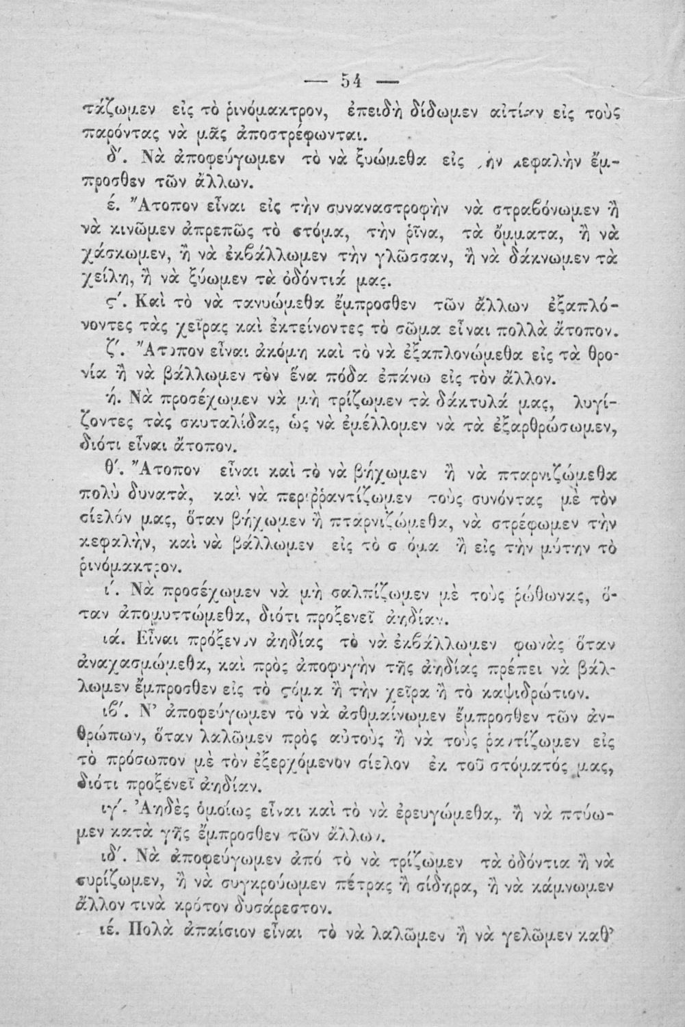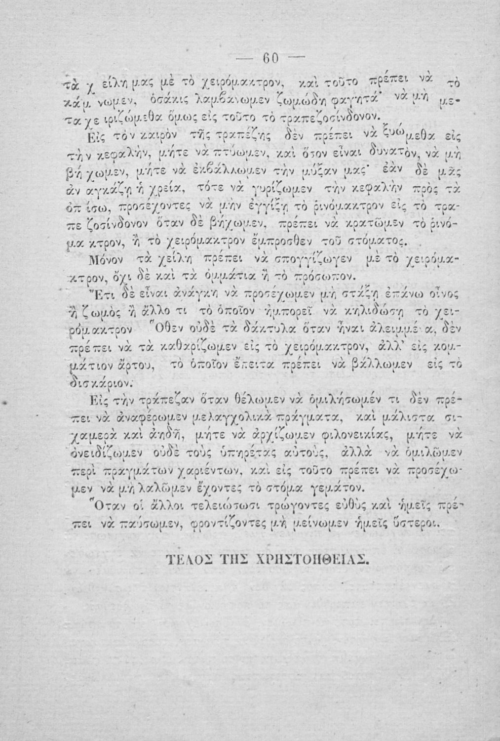 Παρουσίαση περιεχομένου: Σχολικό εγχειρίδιο Χρηστοήθειας των Αλληλοδιδακτικών σχολείων. Το βιβλίο περιέχει τρόπους διαχείρισης της συμπεριφοράς των μαθητών σε έντονες ψυχικές καταστάσεις, όπως διαχείριση φόβου ή οργής, καθώς και κανόνες σωστής συμπεριφοράς στις κοινωνικές συναναστροφές τους.