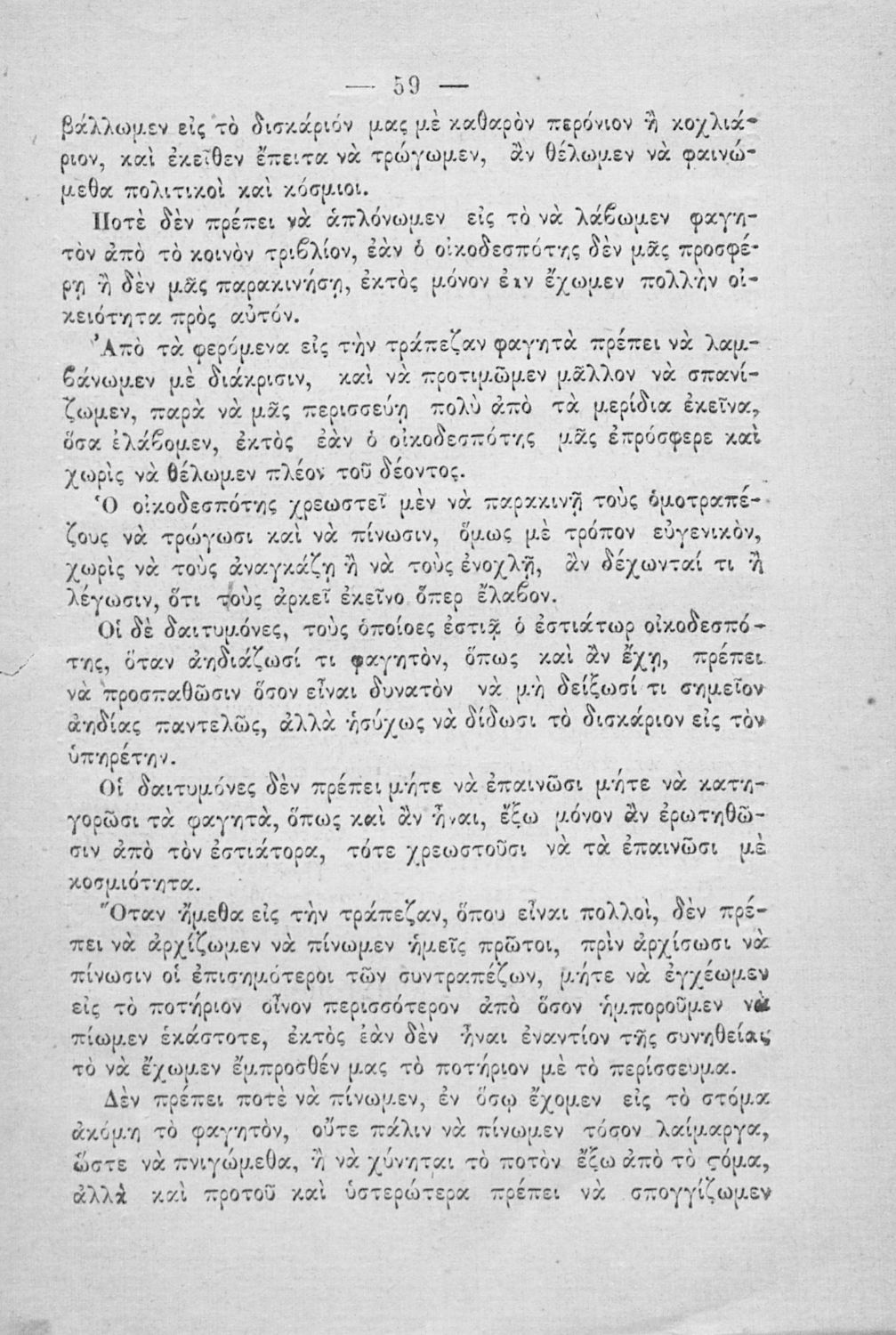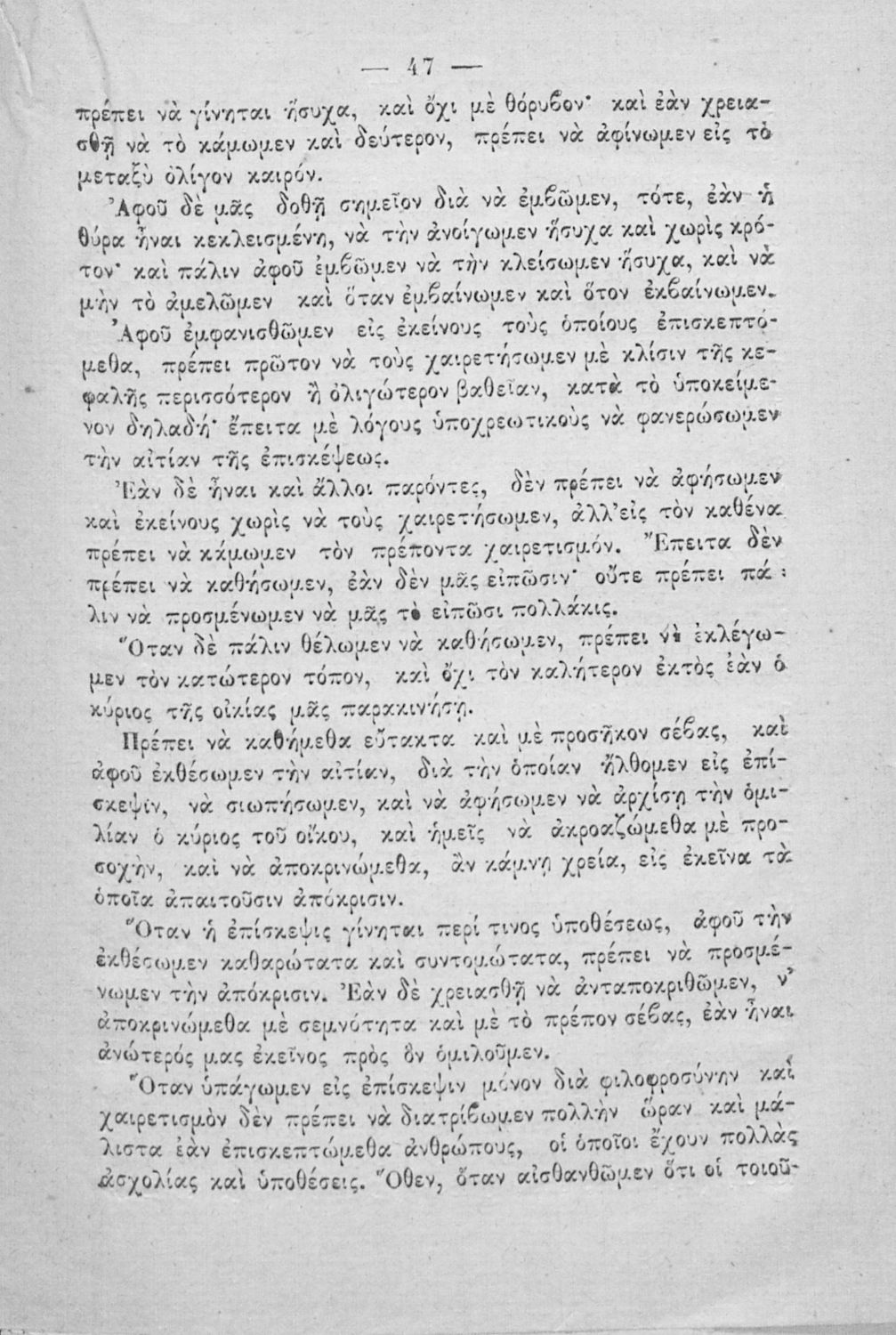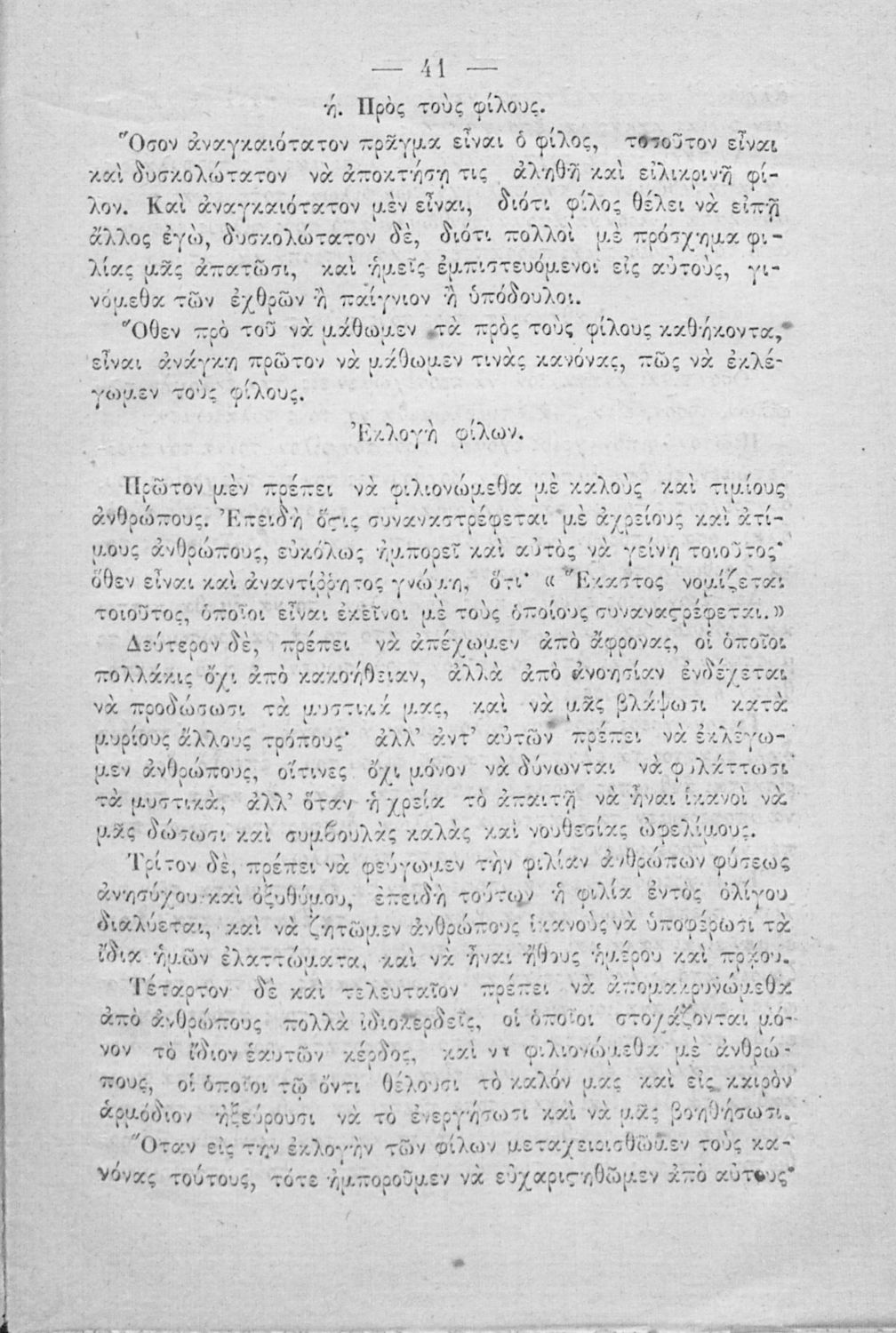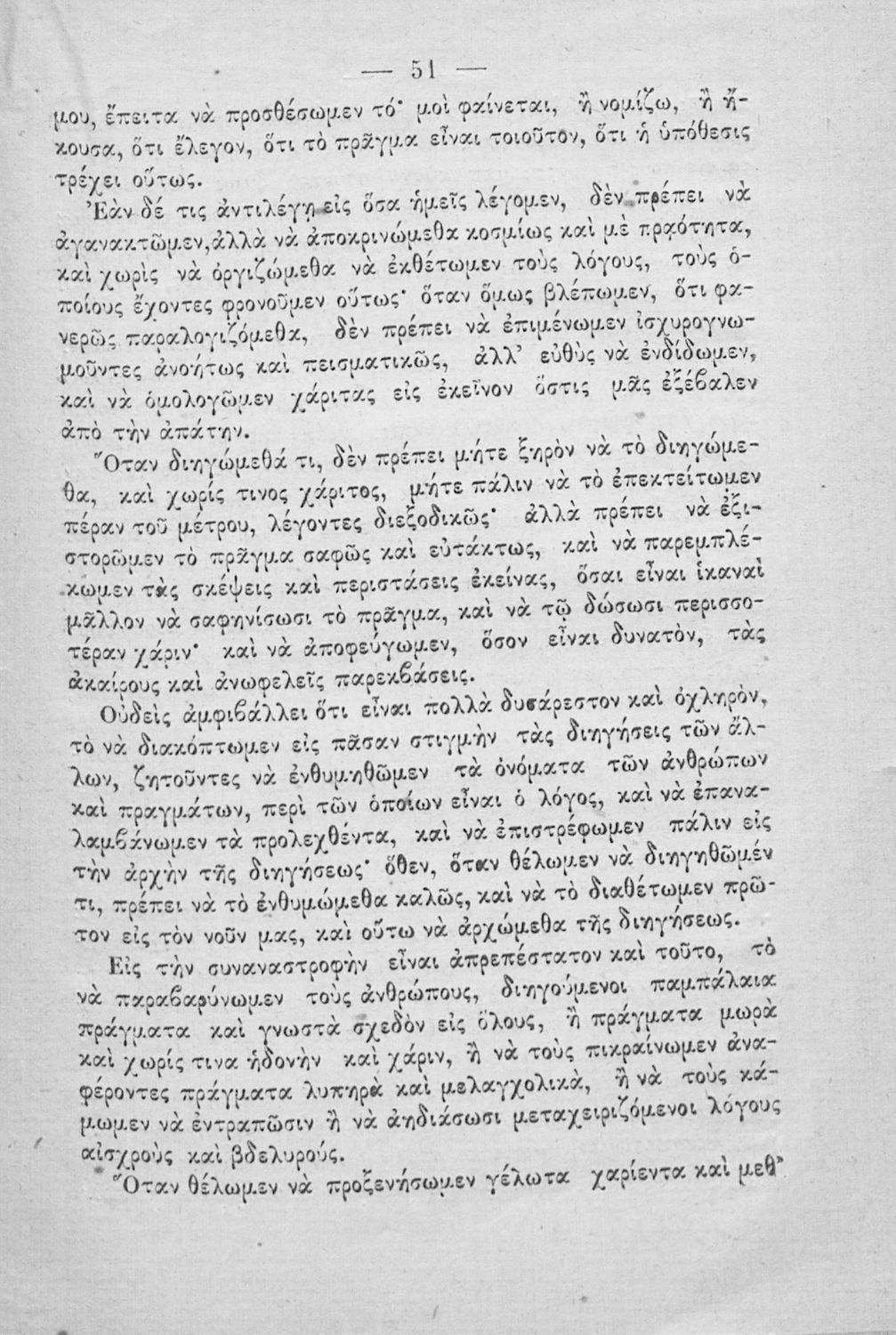 Παρουσίαση περιεχομένου: Σχολικό εγχειρίδιο Χρηστοήθειας των Αλληλοδιδακτικών σχολείων. Το βιβλίο περιέχει τρόπους διαχείρισης της συμπεριφοράς των μαθητών σε έντονες ψυχικές καταστάσεις, όπως διαχείριση φόβου ή οργής, καθώς και κανόνες σωστής συμπεριφοράς στις κοινωνικές συναναστροφές τους.