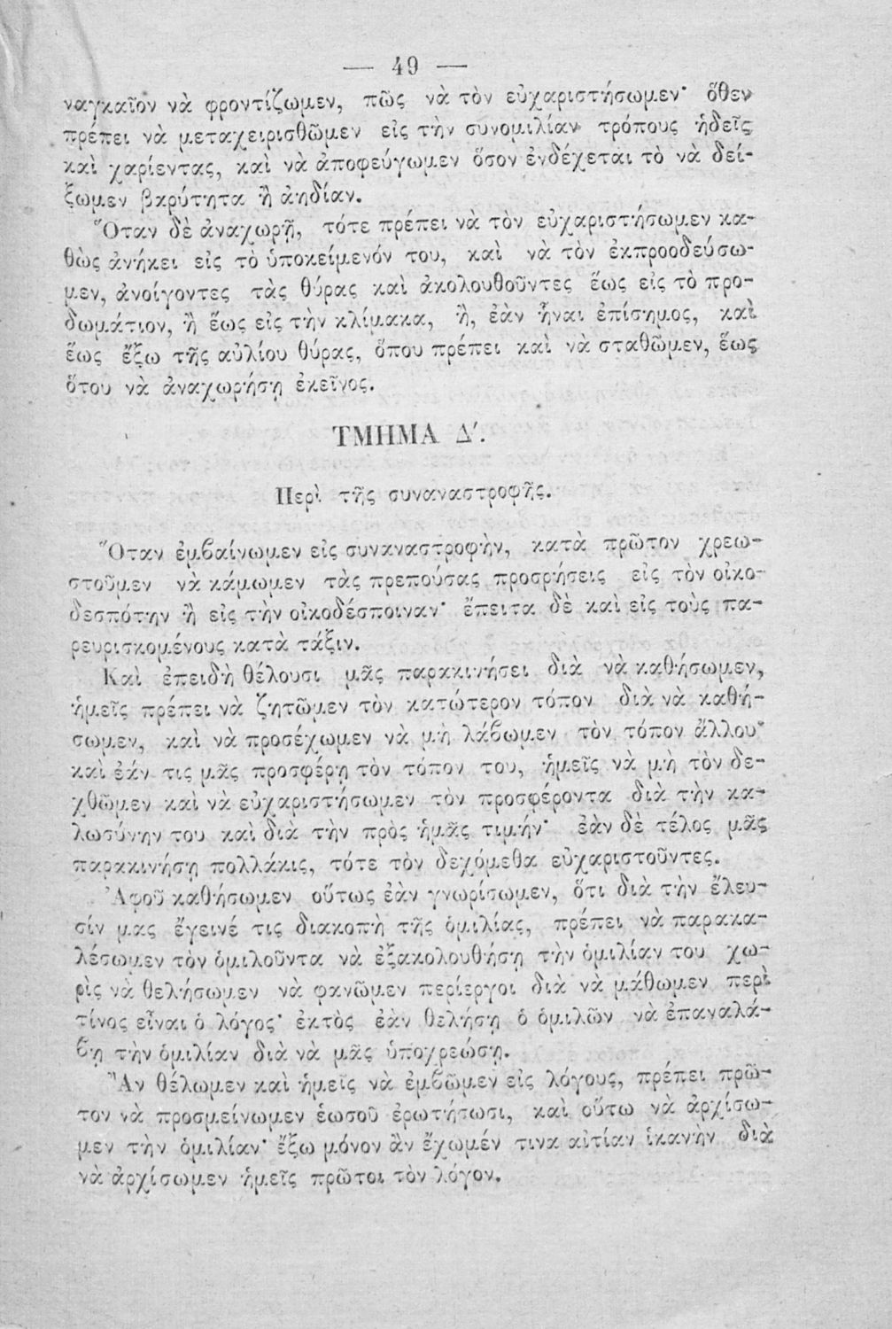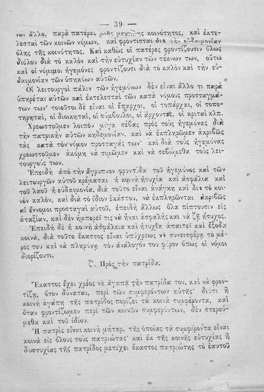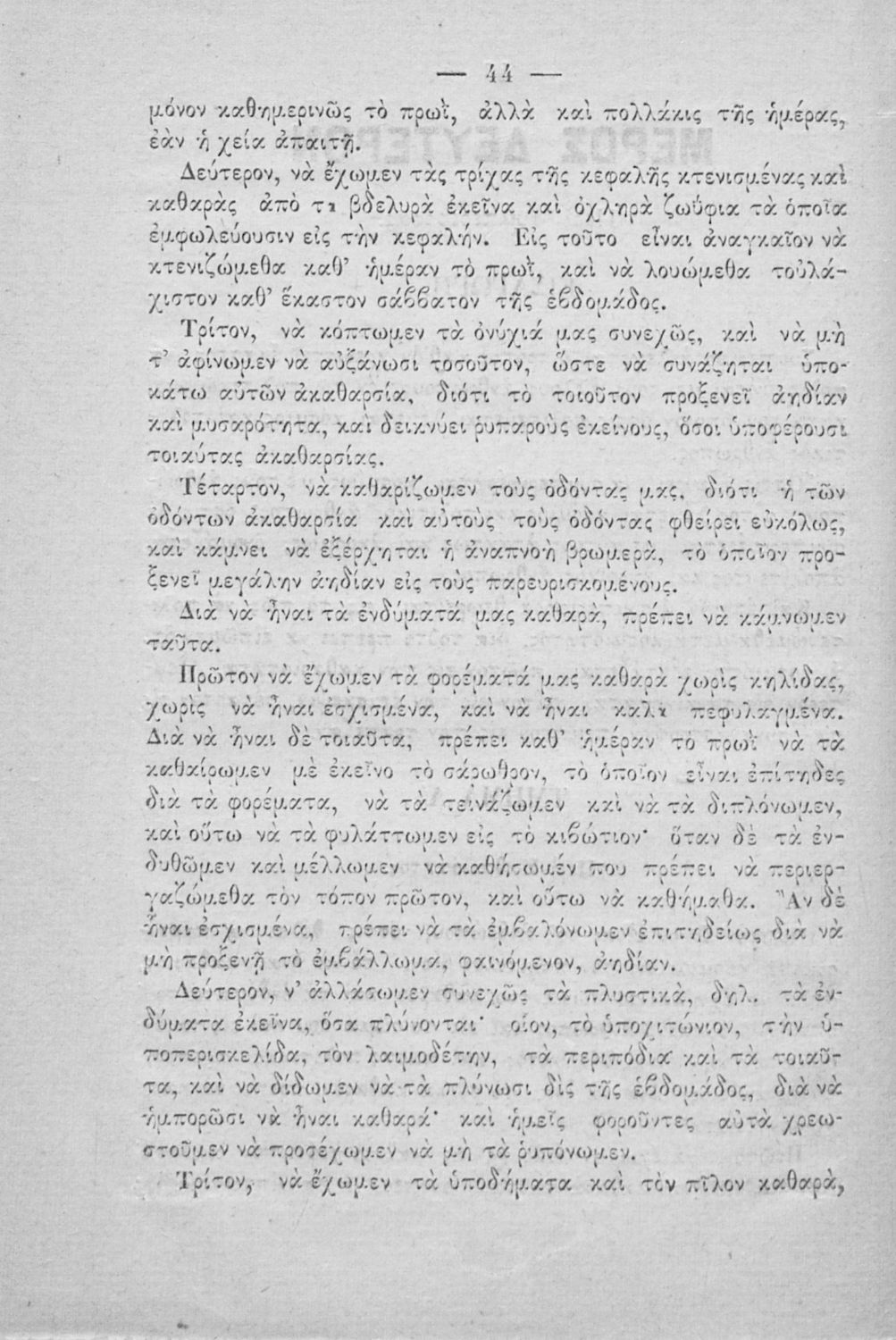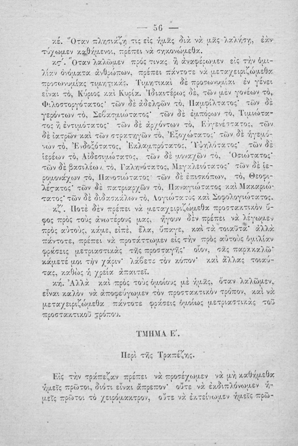 Παρουσίαση περιεχομένου: Σχολικό εγχειρίδιο Χρηστοήθειας των Αλληλοδιδακτικών σχολείων. Το βιβλίο περιέχει τρόπους διαχείρισης της συμπεριφοράς των μαθητών σε έντονες ψυχικές καταστάσεις, όπως διαχείριση φόβου ή οργής, καθώς και κανόνες σωστής συμπεριφοράς στις κοινωνικές συναναστροφές τους.