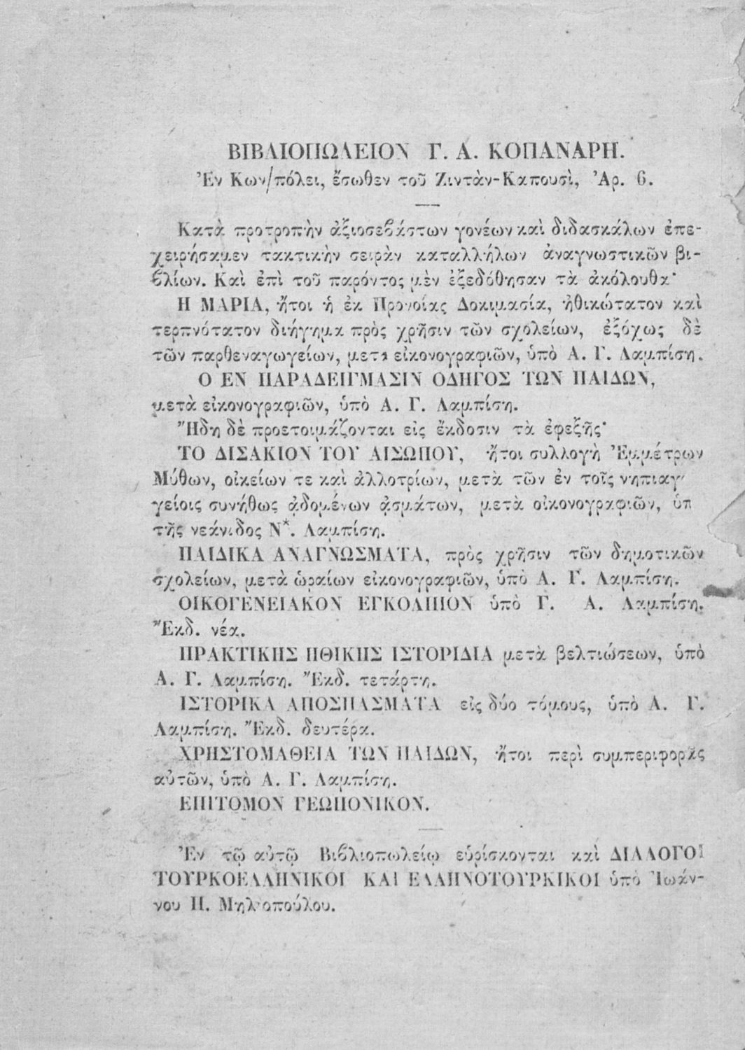 Σχολικό εγχειρίδιο για τα αλληλοδιδακτικά σχολεία που αποσκοπεί στην ηθική και κοινωνική διαπαιδαγώγηση της "ορθόδοξης νεολαίας". Εγκρίθηκε από την Εκκλησιαστική Επιτροπή επειδή δεν περιέχει κάτι που να ...