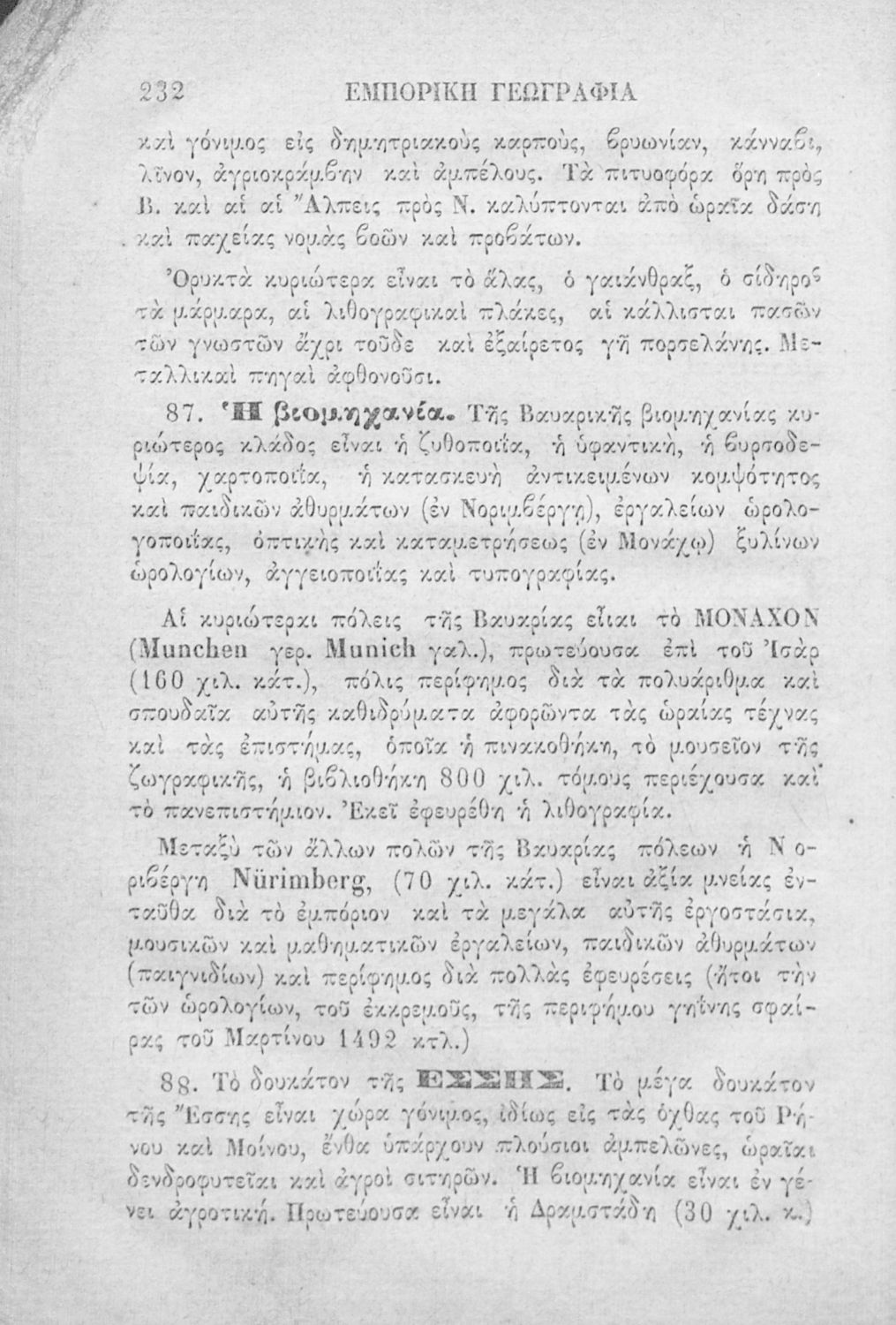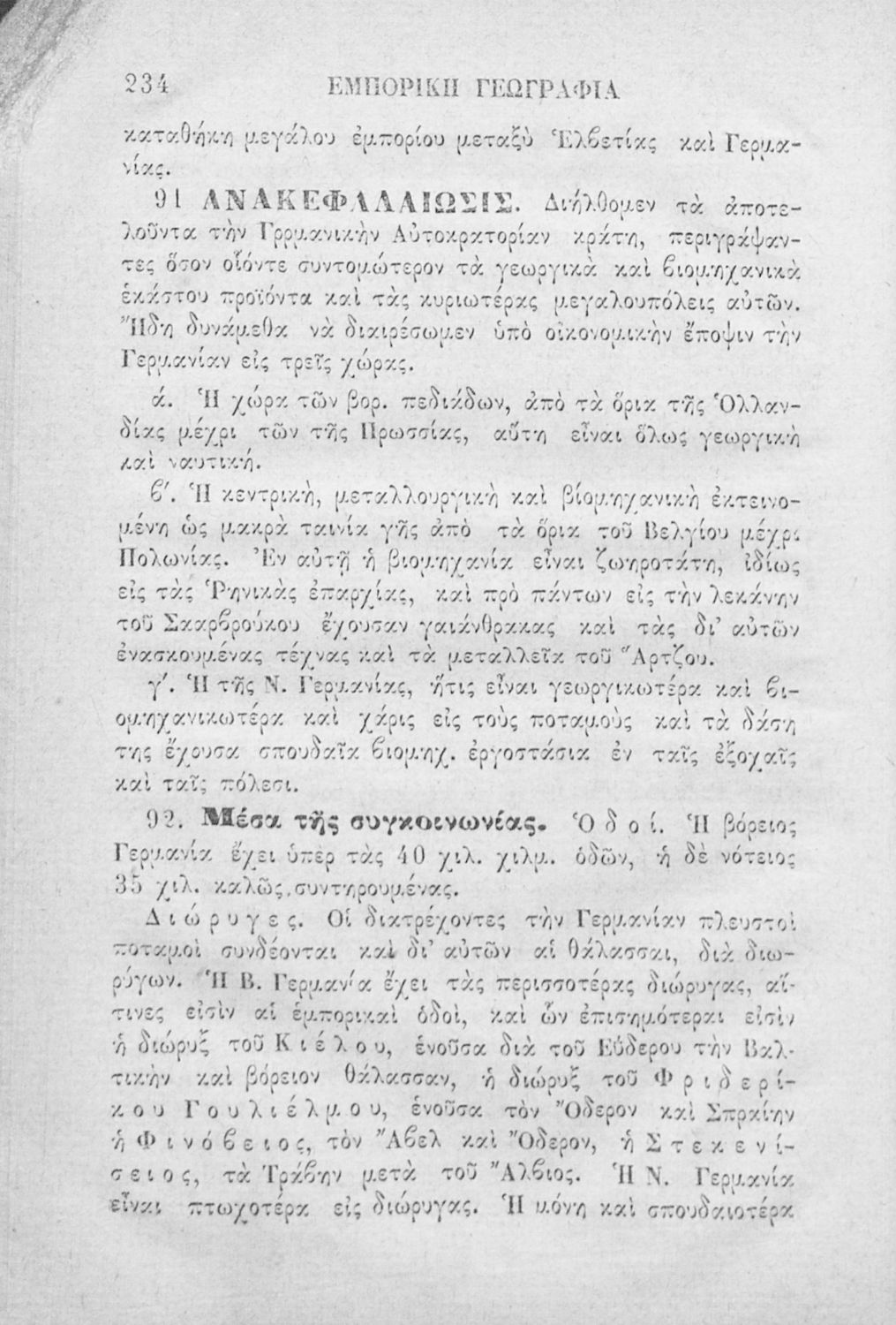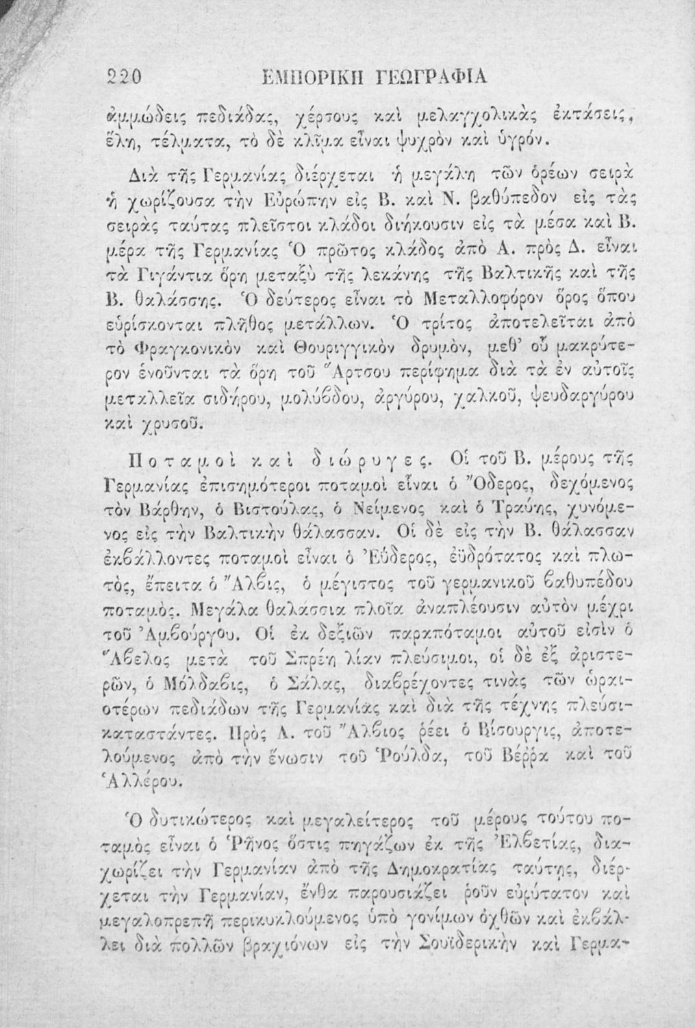 Σχολικό εγχειρίδιο Γεωγραφίας για τους μαθητές των Ελληνικών Σχολείων και Παρθεναγωγείων που περιλαμβάνει μια γενική επισκόπηση της πολιτικής, οικονομικής και φυσικής γεωγραφίας της Ελλάδας και ενδεικτικών ...