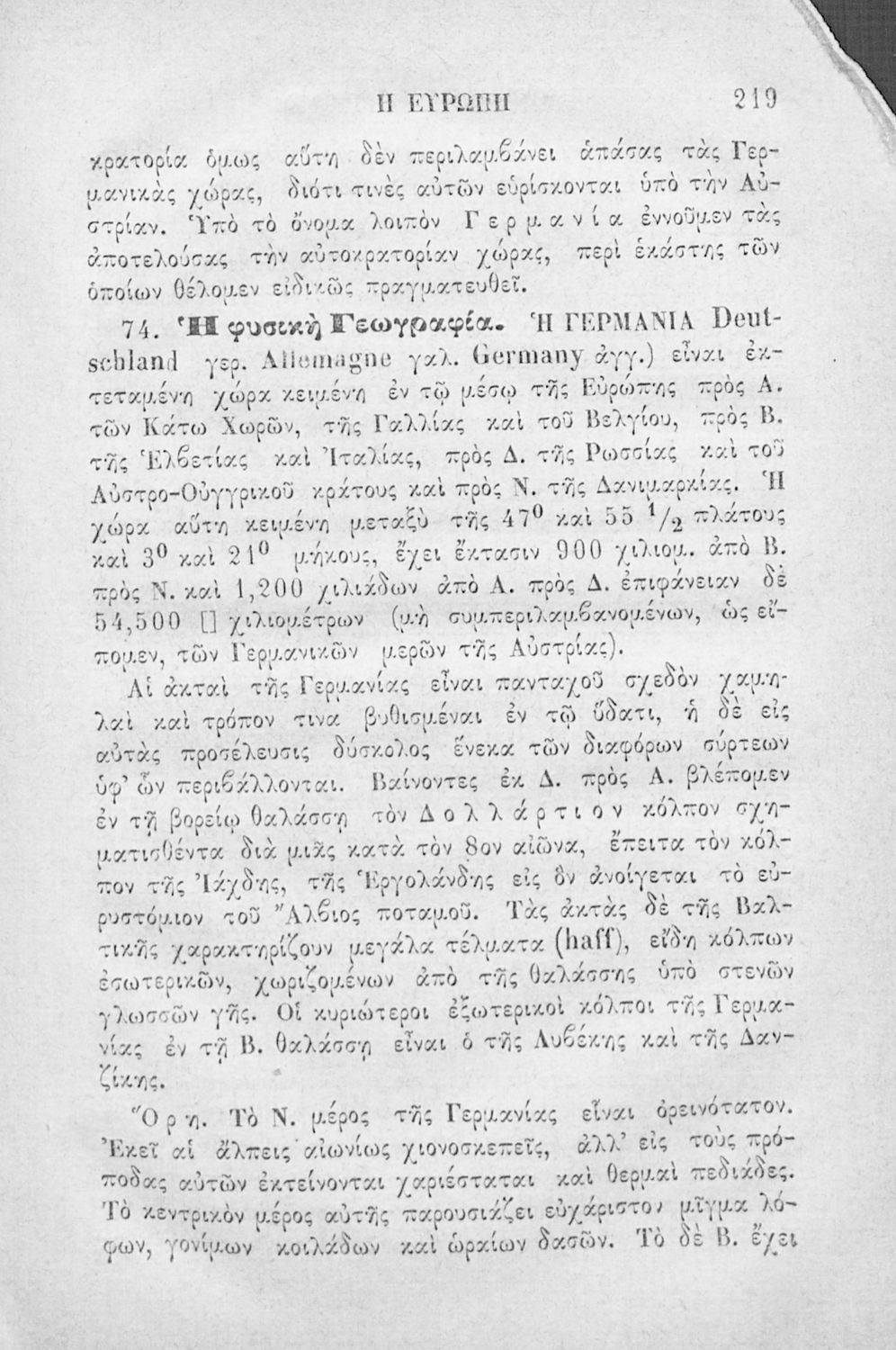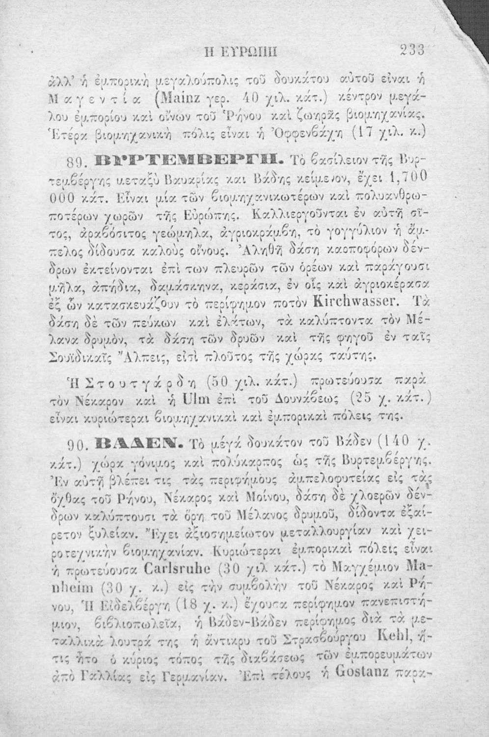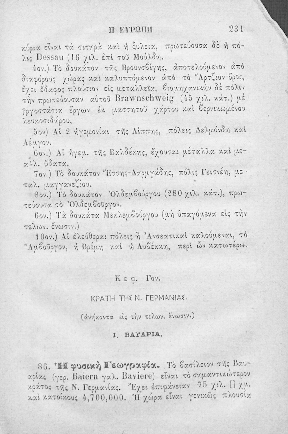 Σχολικό εγχειρίδιο Γεωγραφίας για τους μαθητές των Ελληνικών Σχολείων και Παρθεναγωγείων που περιλαμβάνει μια γενική επισκόπηση της πολιτικής, οικονομικής και φυσικής γεωγραφίας της Ελλάδας και ενδεικτικών ...