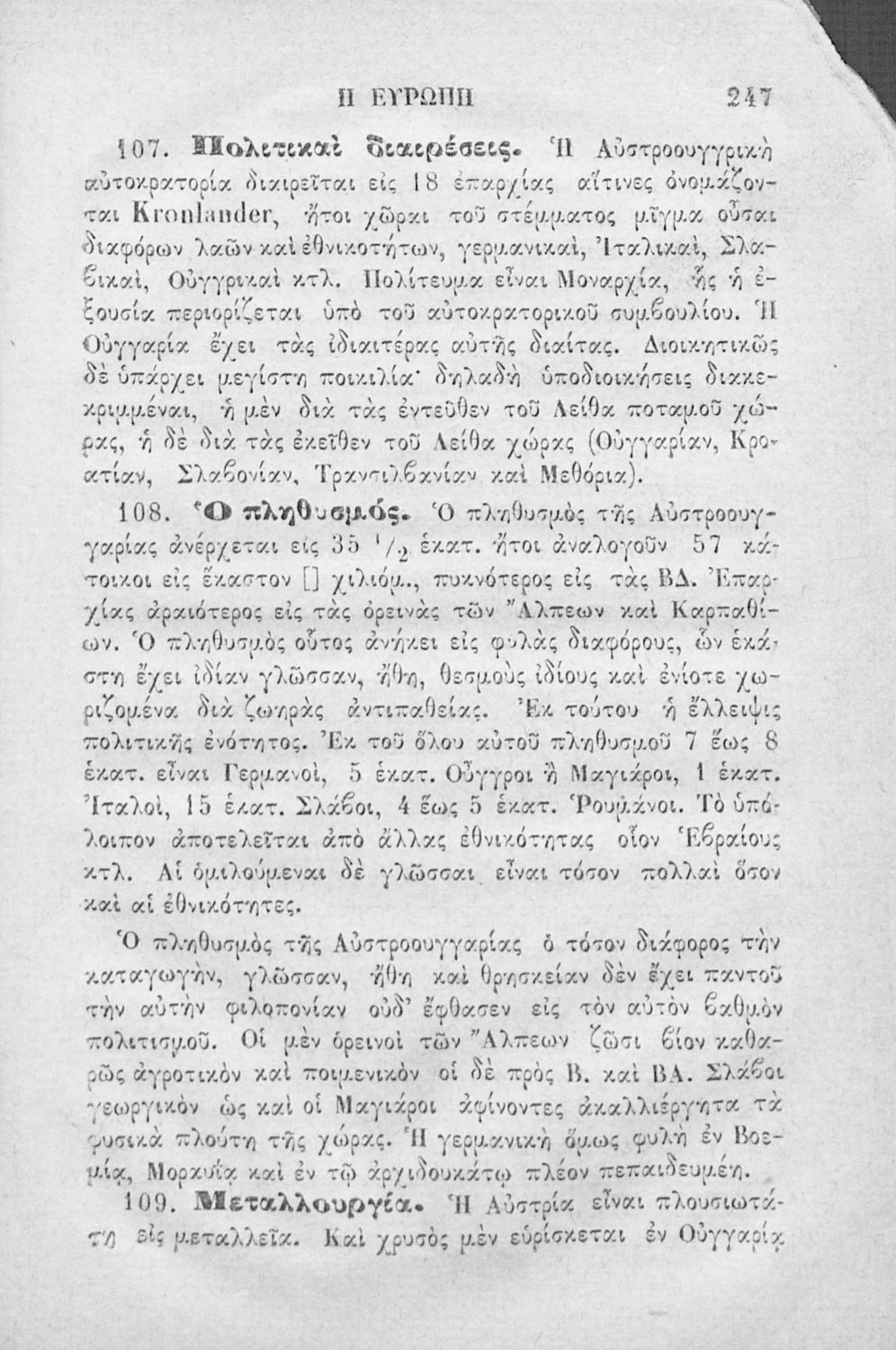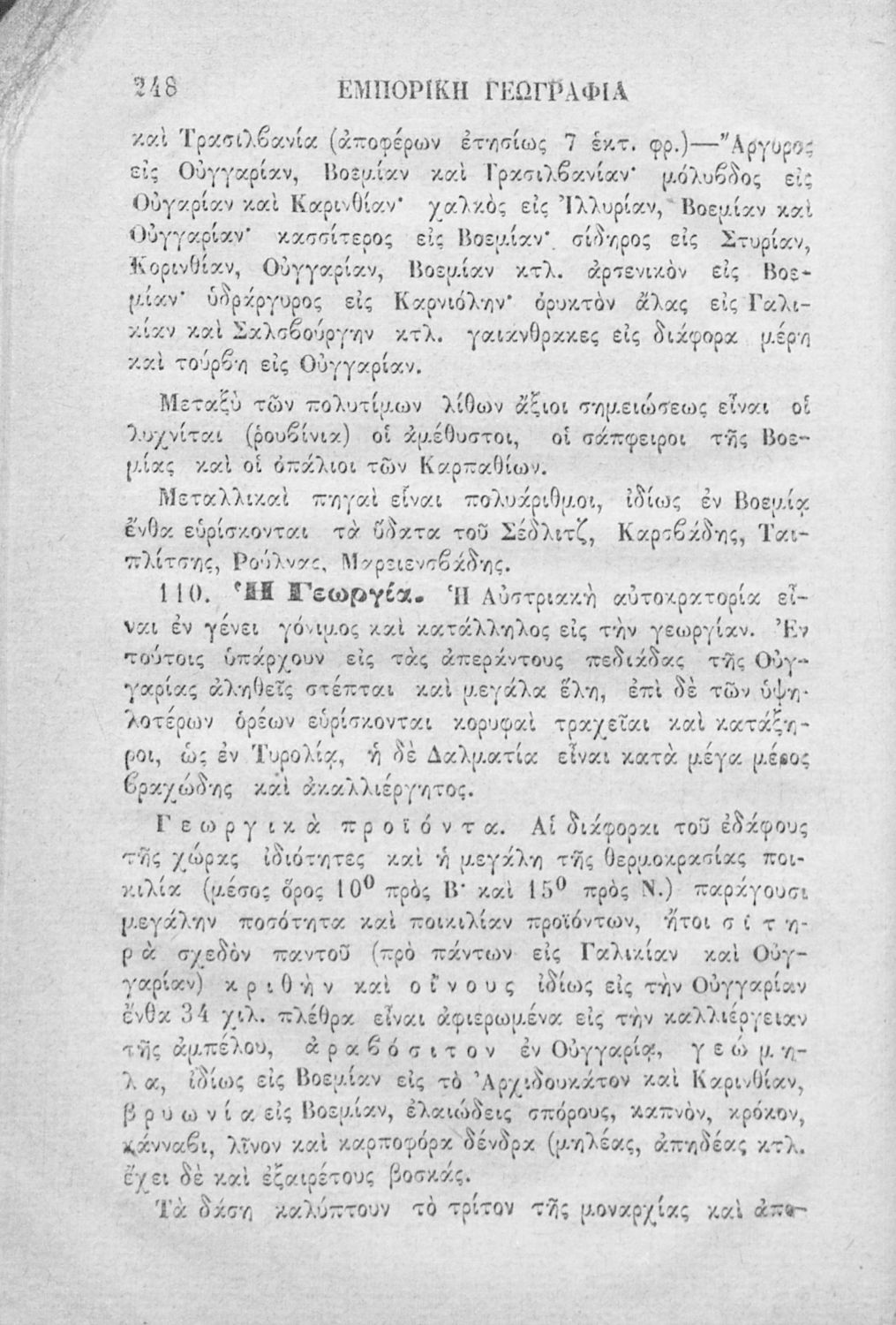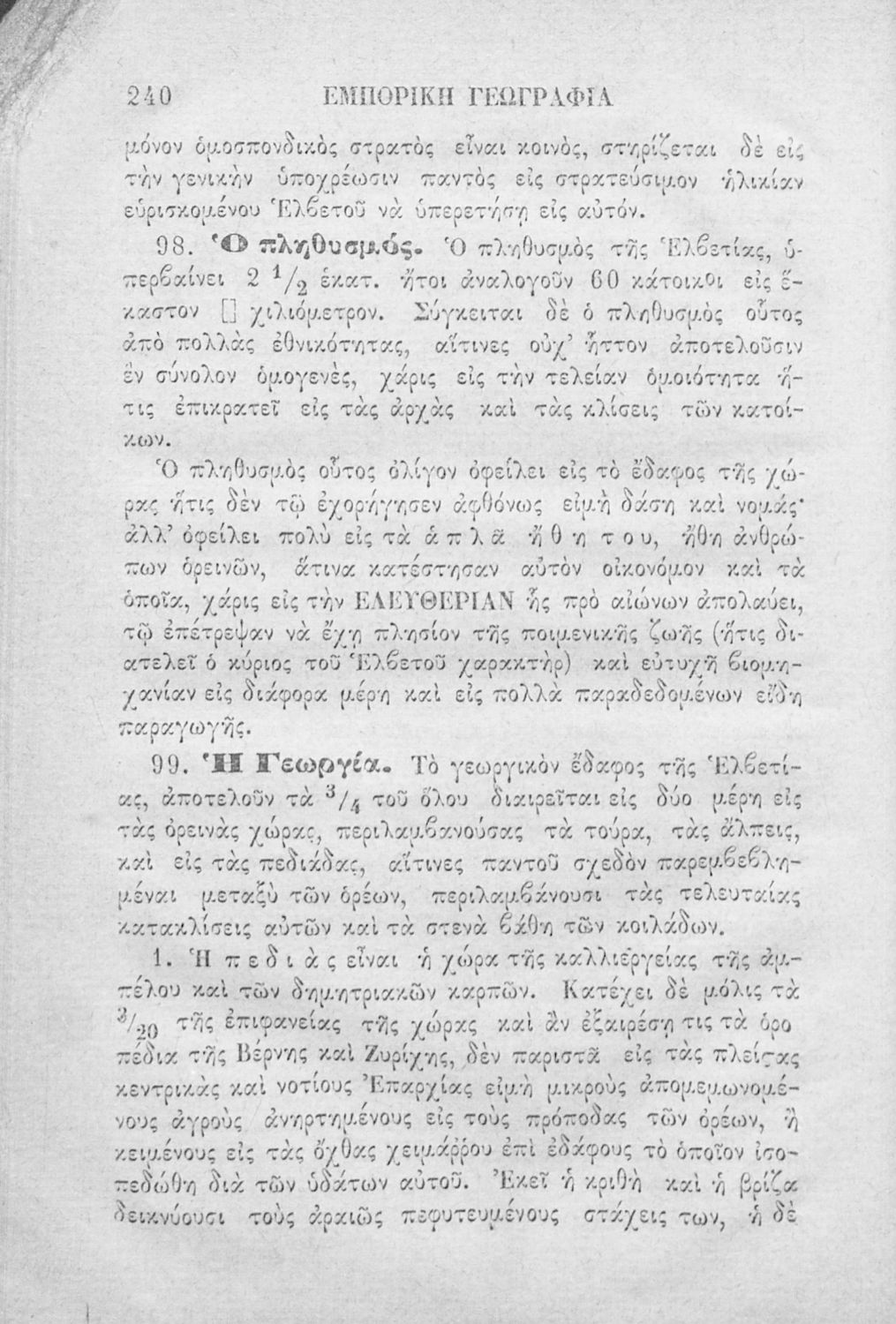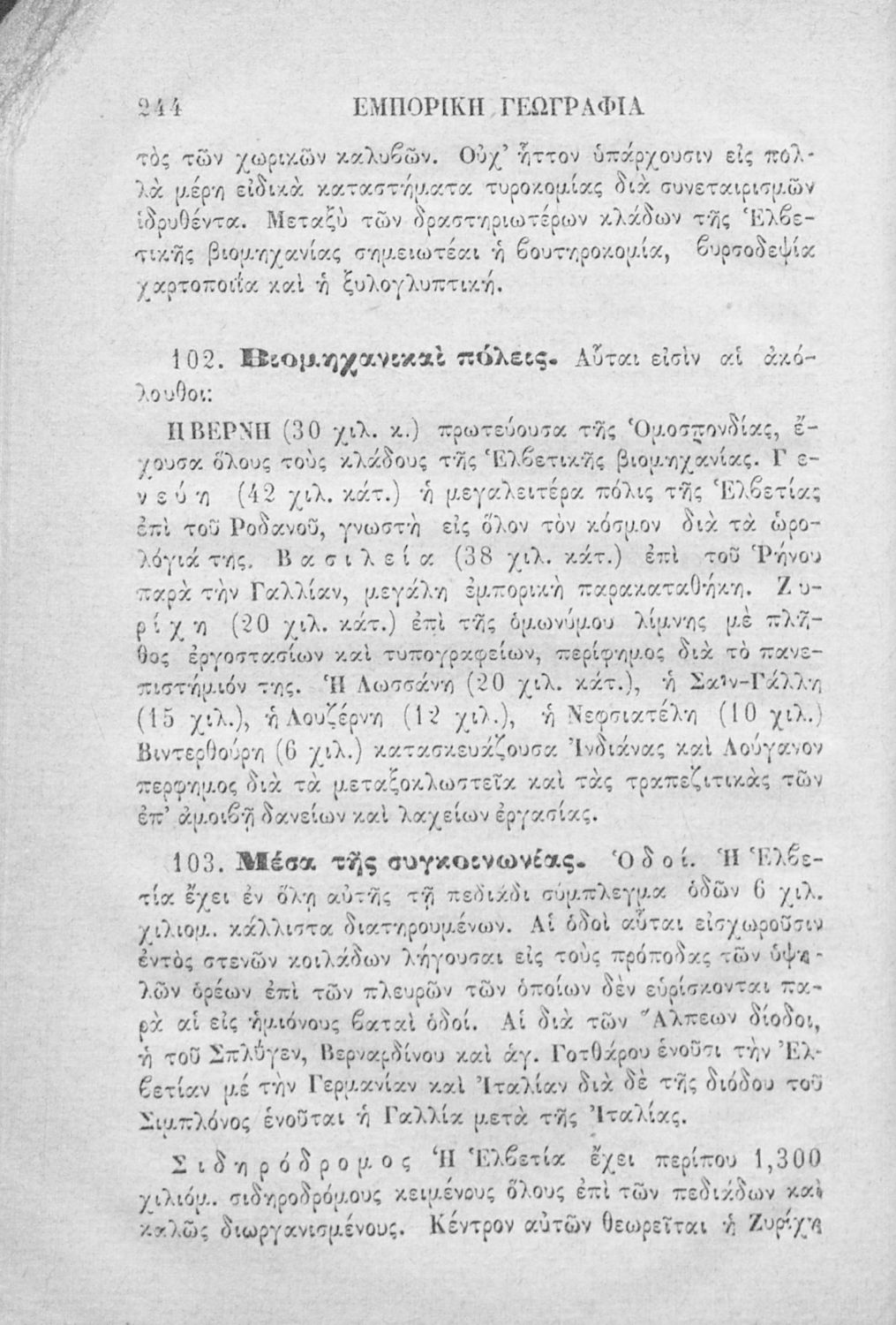 Σχολικό εγχειρίδιο Γεωγραφίας για τους μαθητές των Ελληνικών Σχολείων και Παρθεναγωγείων που περιλαμβάνει μια γενική επισκόπηση της πολιτικής, οικονομικής και φυσικής γεωγραφίας της Ελλάδας και ενδεικτικών ...