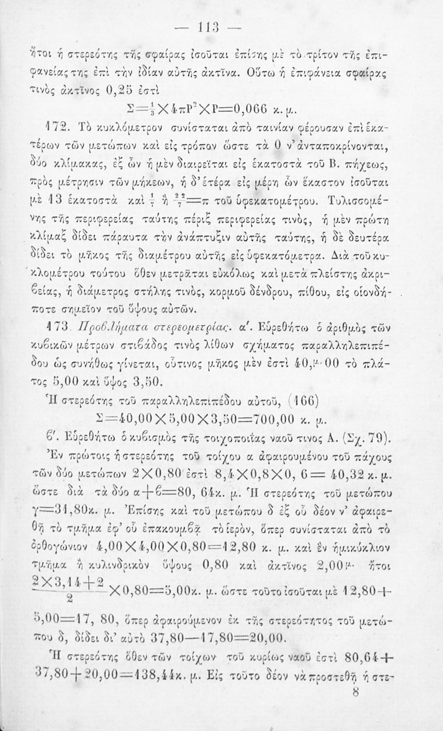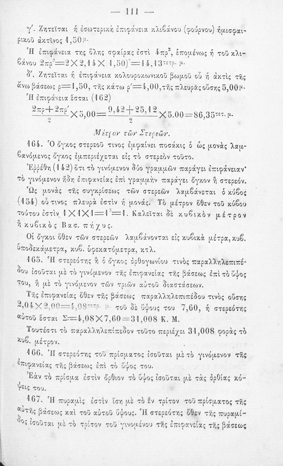 Σχολικό εγχειρίδιο Γεωμετρίας Γυμνασίων και Αστικών Σχολείων χωρισμένο σε Επιπεδομετρία και Στερεομετρία. Περιλαμβάνει και στοιχεία Χωρομετρίας.
