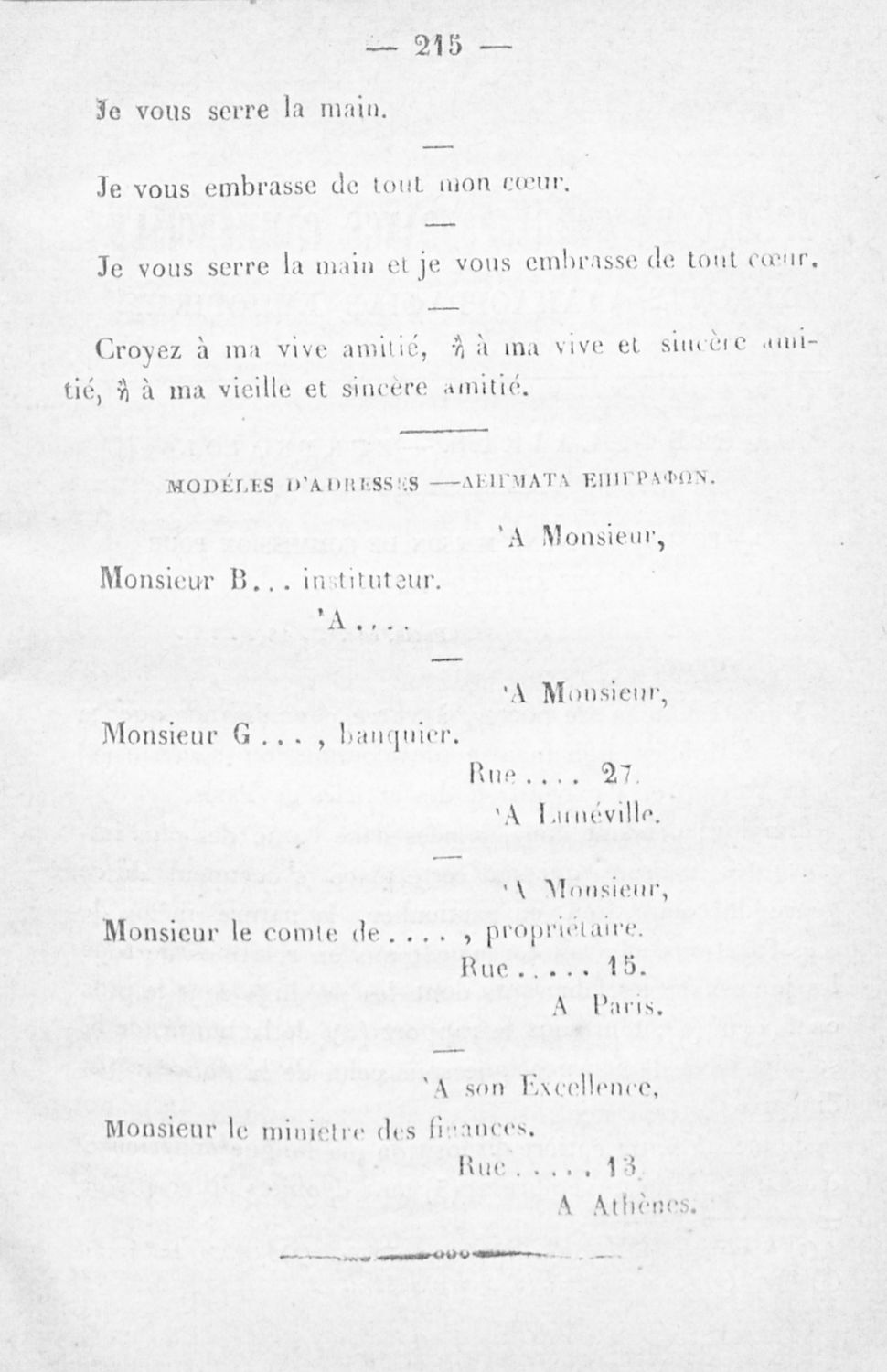 LDR 00978 2200193 4500 035 ## _a02-02846 040 ## _aΕλληνικό Λογοτεχνικό και Ιστορικό Αρχείο 041 ## _ael 100 ## _aΚ. Βαρβάτης 110 ## _a2846 245 0# _aΓυμναστική ή χρηστομάθεια γαλλική 260 ## _aΑθήνα _bΚ. Αντωνιάδης _c1874 300 ## _a336 520 ## _aΣχολικό εγχειρίδιο Γαλλικών για τις Α΄,Β΄ και Γ΄ Γυμνασίου που περιλαμβάνει κείμενα, κανόνες προφοράς, εμπορικής αλληλογραφίας και συγγραφής επιστολών. 521 ## _aΑ' Γυμνασίου / Β' Γυμνασίου 522 ## _aΕλλάδα 546 ## _aΚαθαρεύουσα 563 ## _aΣκληρό Εξώφυλλο 650 #4 _aΕμπορική αλληλογραφία _aΛέξεις _aΠροφορά γραμμάτων _aΦράσεις