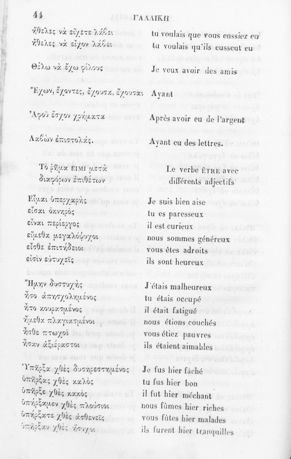 Σχολικό εγχειρίδιο Γαλλικών για τα Ελληνικά Σχολεία και τα Γυμνάσια που είναι χωρισμένο στο ετυμολογικό και γραμματικό μέρος, στο συντακτικό μέρος και στο στιχουργικό μέρος. Περιέχει και ελληνογαλλικό λεξικό ...