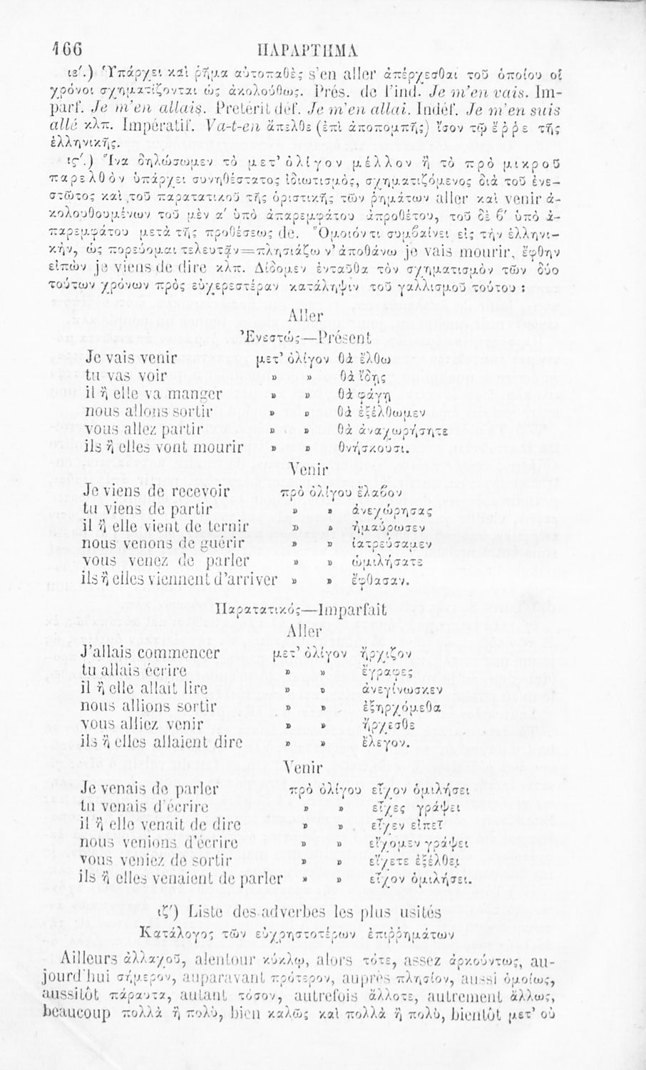 Βαθμίδα εκπαίδευσης: Δευτεροβάθμια Τάξη: Ελληνικό Σχολείο / Γυμνάσιο Μάθημα: Γαλλικά Γλώσσα: Καθαρεύουσα Παρουσίαση περιεχομένου: Σχολικό εγχειρίδιο Γαλλικών για τα Ελληνικά Σχολεία και Γυμνάσια που περιέχει τους κανόνες γραμματικής και συντακτικού. |