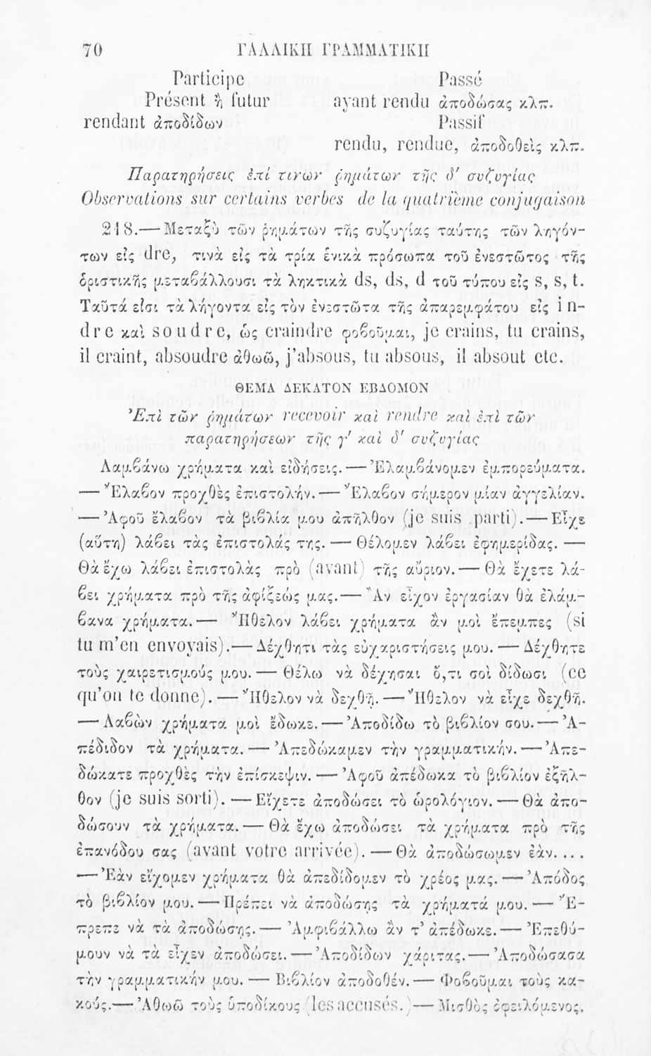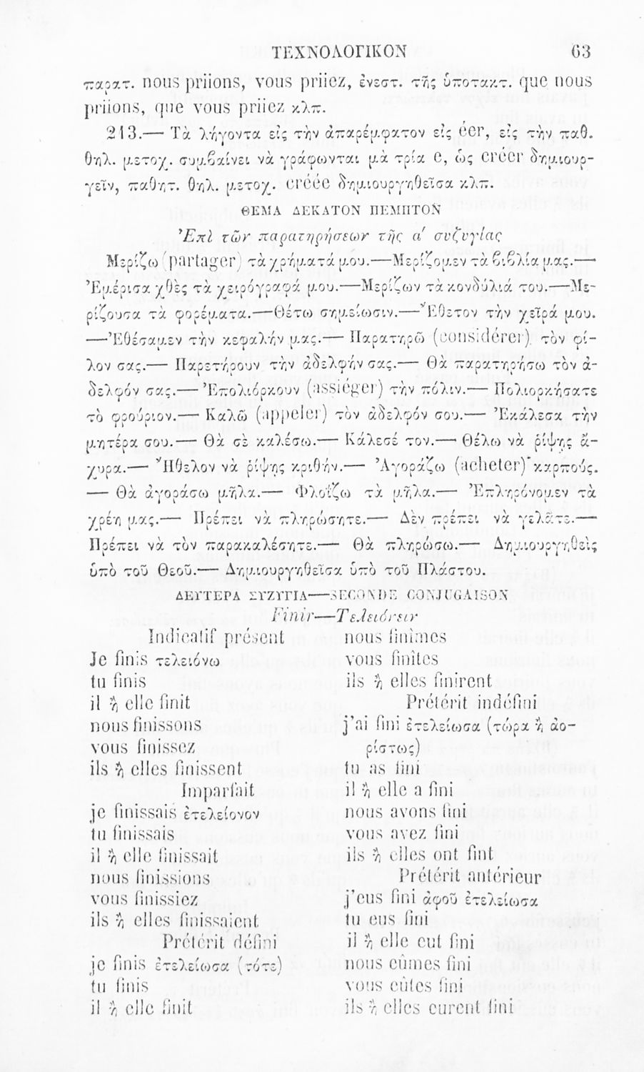 Βαθμίδα εκπαίδευσης: Δευτεροβάθμια Τάξη: Ελληνικό Σχολείο / Γυμνάσιο Μάθημα: Γαλλικά Γλώσσα: Καθαρεύουσα Παρουσίαση περιεχομένου: Σχολικό εγχειρίδιο Γαλλικών για τα Ελληνικά Σχολεία και Γυμνάσια που περιέχει τους κανόνες γραμματικής και συντακτικού. |