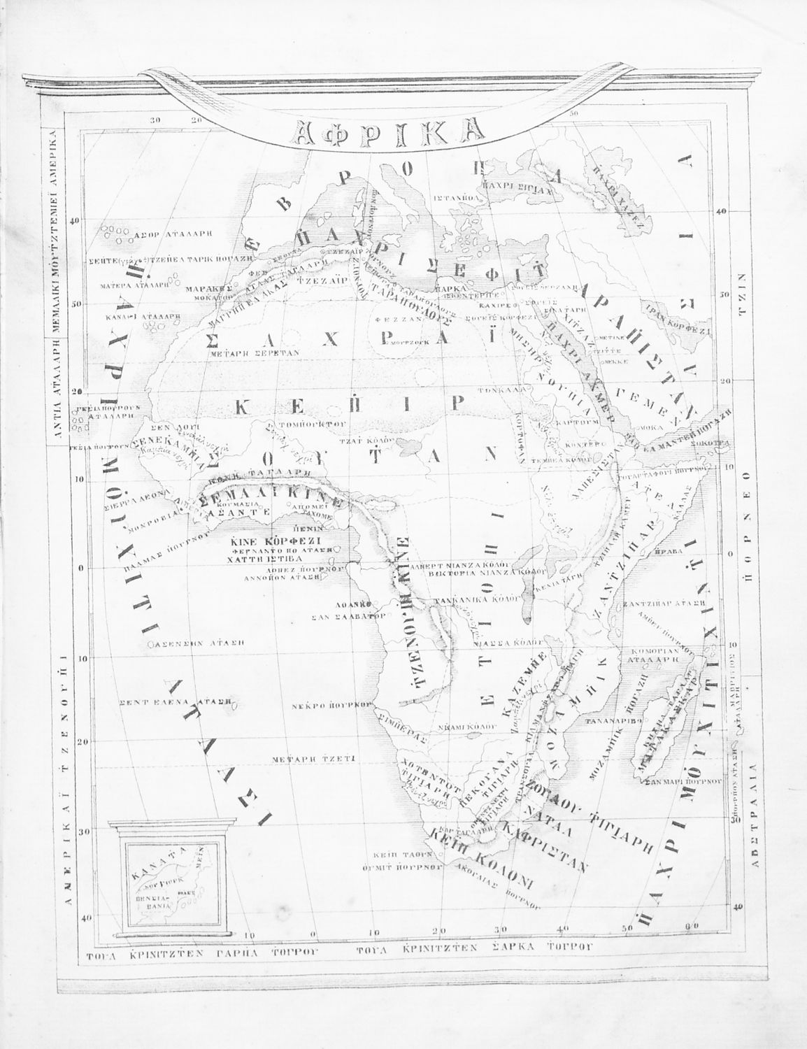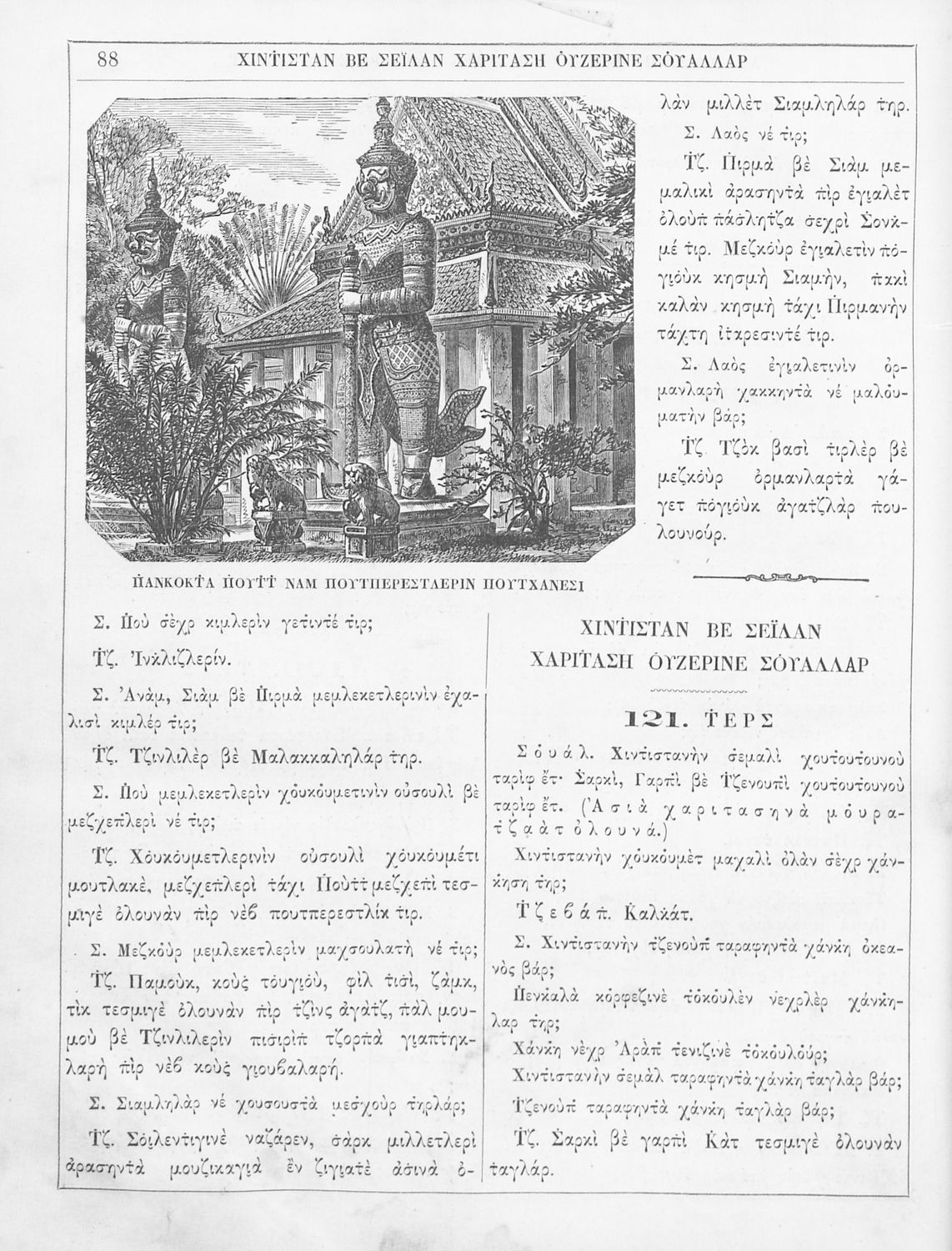 Σχολικό εγχειρίδιο Γεωγραφίας για τους μαθητές της εθνοτικής ομάδας των “καραμανλίδων” (τουρκόφωνοι χριστιανοί ορθόδοξοι της Οθωμανικής αυτοκρατορίας). Το βιβλίο κάνει μια γενική επισκόπηση της παγκόσμιας φυσικής γεωγραφίας καθώς και της ανθρωπογεωγραφίας παρουσιάζοντας τις διαφορετικές φυλές του πλανήτη.