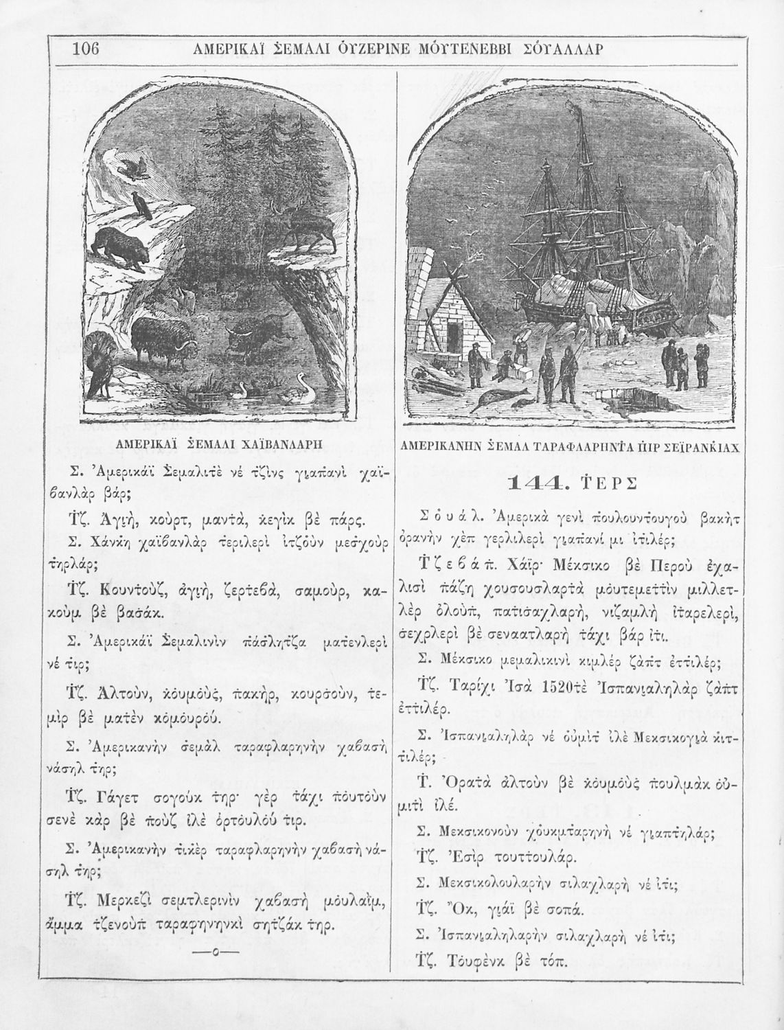 Σχολικό εγχειρίδιο Γεωγραφίας για τους μαθητές της εθνοτικής ομάδας των “καραμανλίδων” (τουρκόφωνοι χριστιανοί ορθόδοξοι της Οθωμανικής αυτοκρατορίας). Το βιβλίο κάνει μια γενική επισκόπηση της παγκόσμιας φυσικής γεωγραφίας καθώς και της ανθρωπογεωγραφίας παρουσιάζοντας τις διαφορετικές φυλές του πλανήτη.