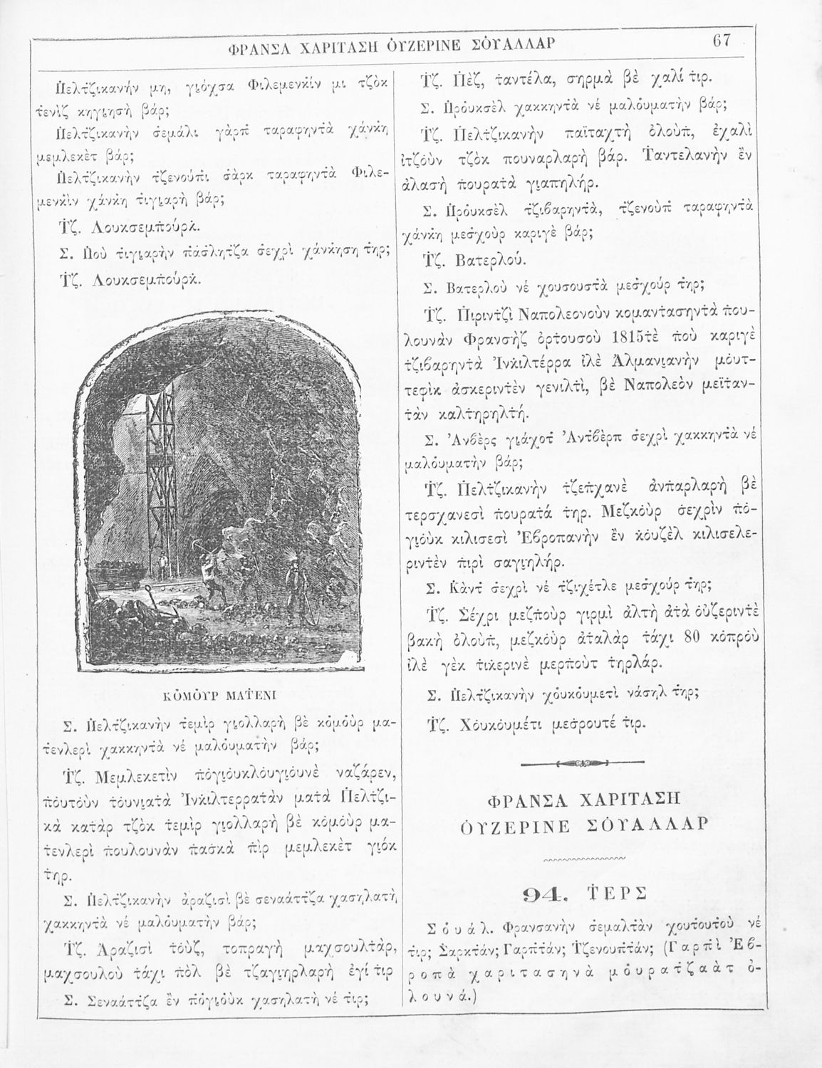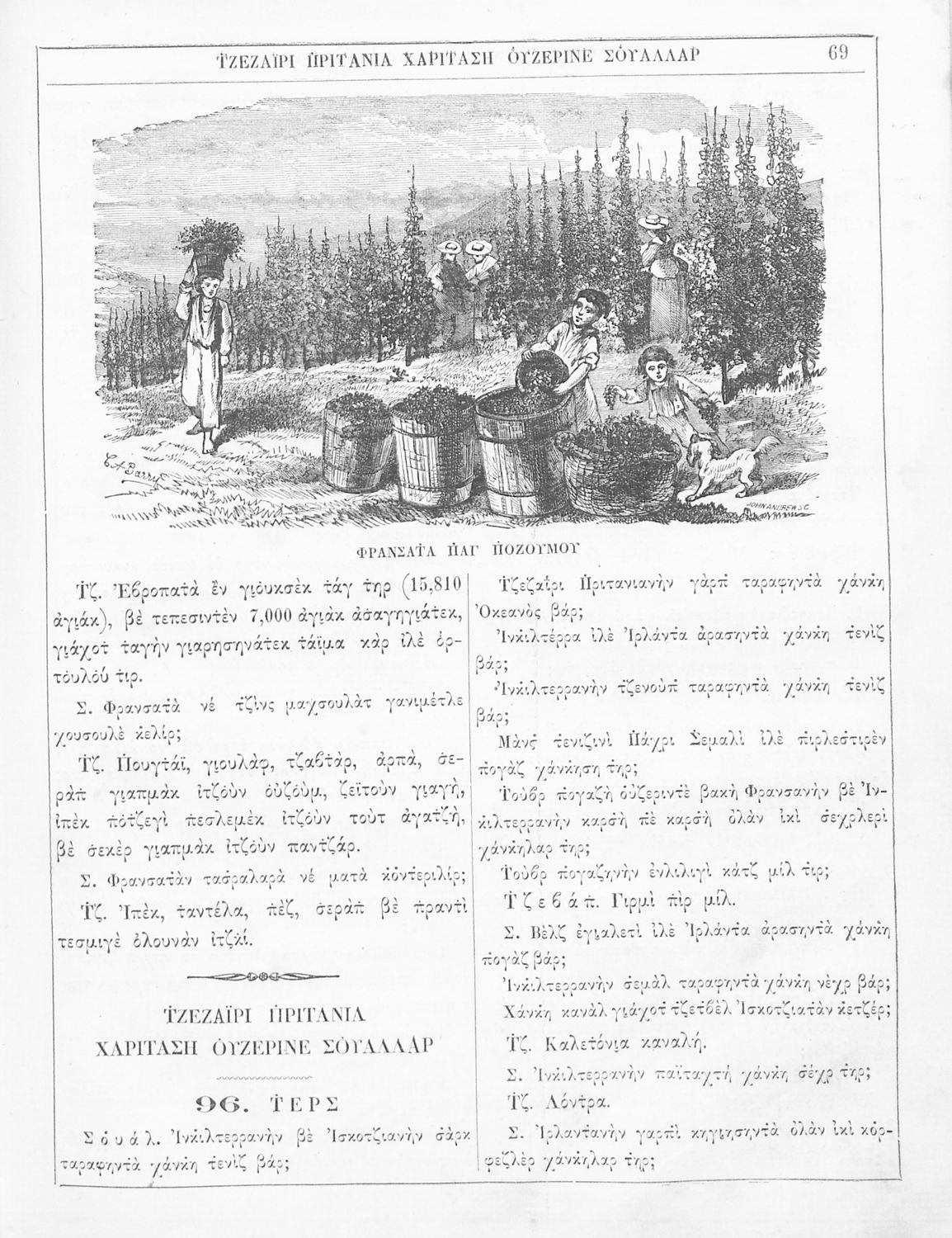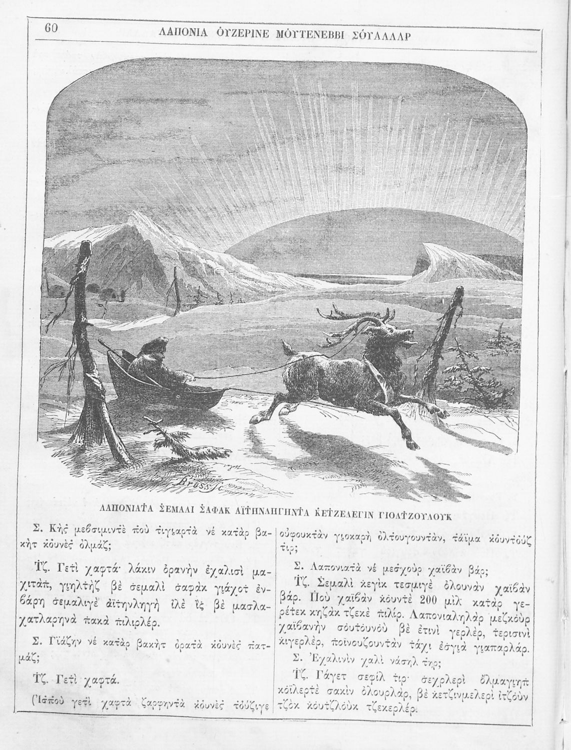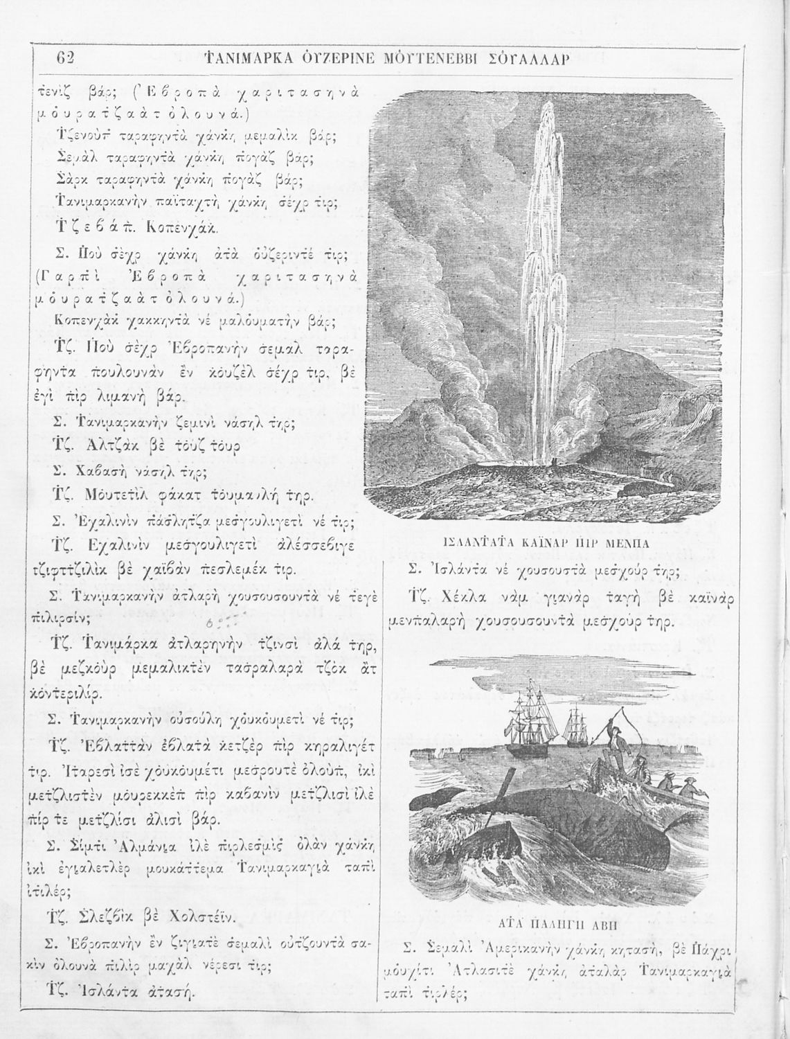 Σχολικό εγχειρίδιο Γεωγραφίας για τους μαθητές της εθνοτικής ομάδας των “καραμανλίδων” (τουρκόφωνοι χριστιανοί ορθόδοξοι της Οθωμανικής αυτοκρατορίας). Το βιβλίο κάνει μια γενική επισκόπηση της παγκόσμιας φυσικής γεωγραφίας καθώς και της ανθρωπογεωγραφίας παρουσιάζοντας τις διαφορετικές φυλές του πλανήτη.
