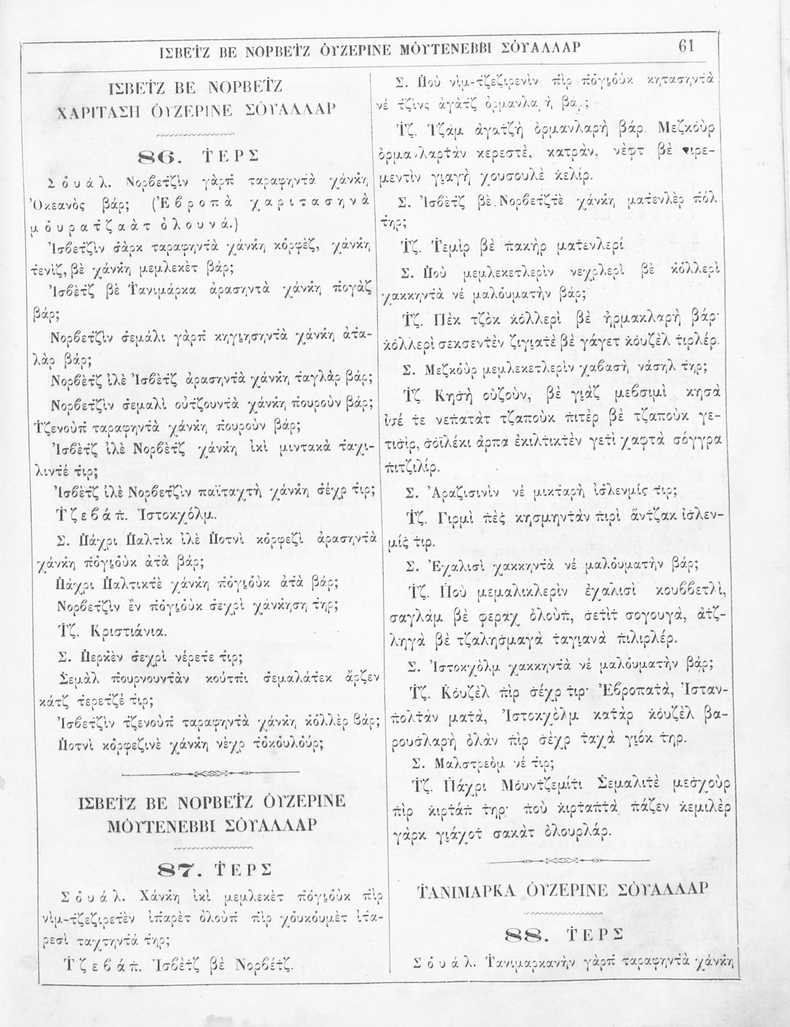 Τίτλος: Τζογραφία, Σουάλ Βε Τζεβαή, Ουσουλί, Ουζρέ, Τερτίη Οδούμνους, Τερς Κιτάπη Τηρ