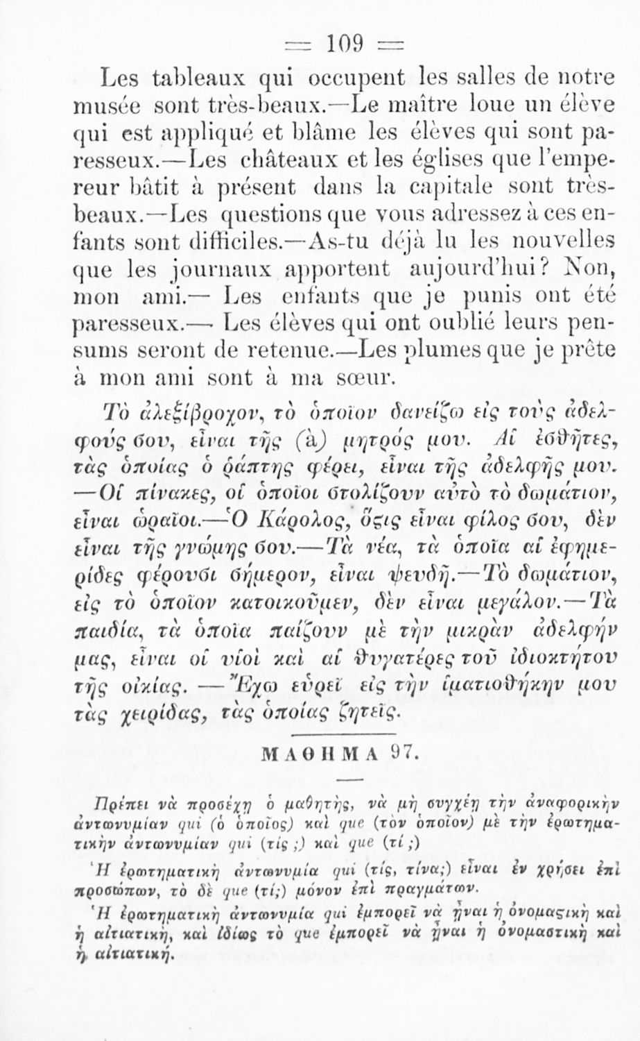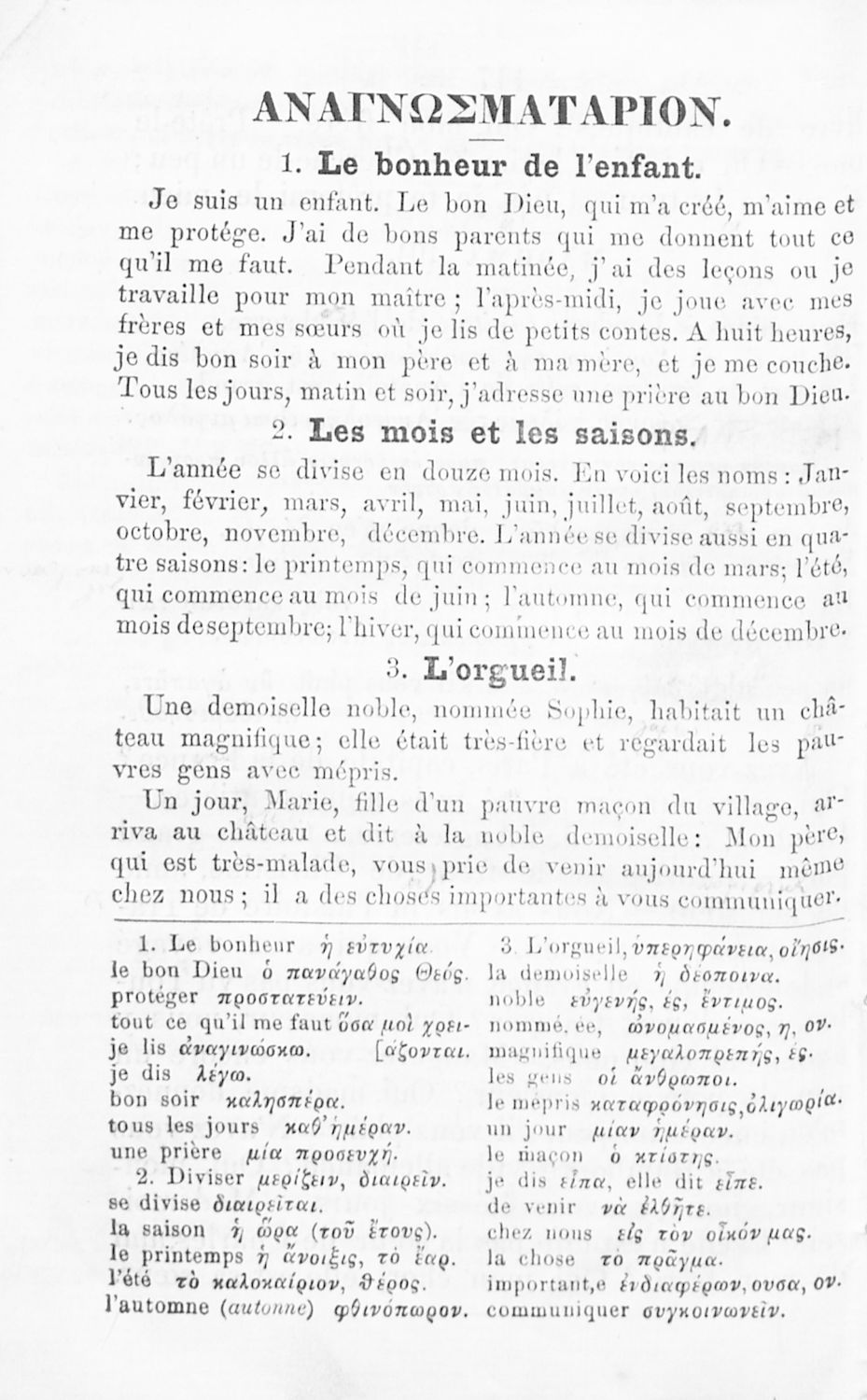 520 ## _aΠρόκειται για το Α΄ μέρος σχολικού εγχειριδίου το οποίο μέσα από μικρά αυτοτελή μαθήματα προοριζόταν για τη διδασκαλία του μαθήματος της Γαλλικής γλώσσας. Φέρει λίγες προσωπικές σημειώσεις του μαθητή.