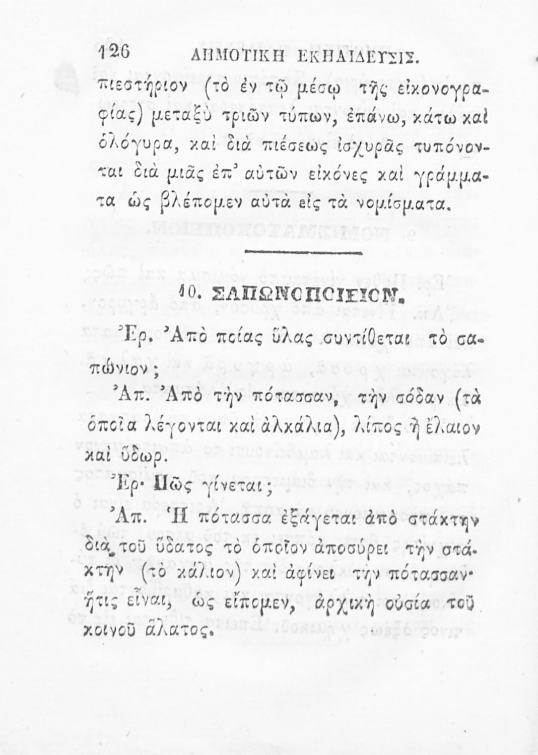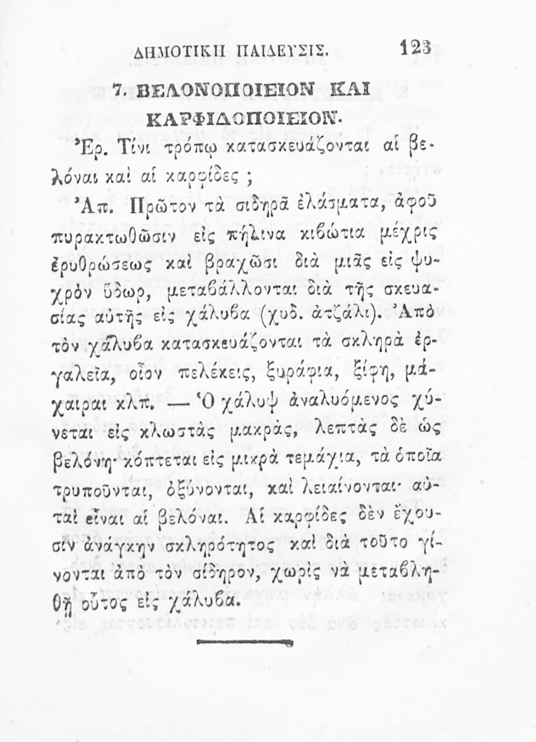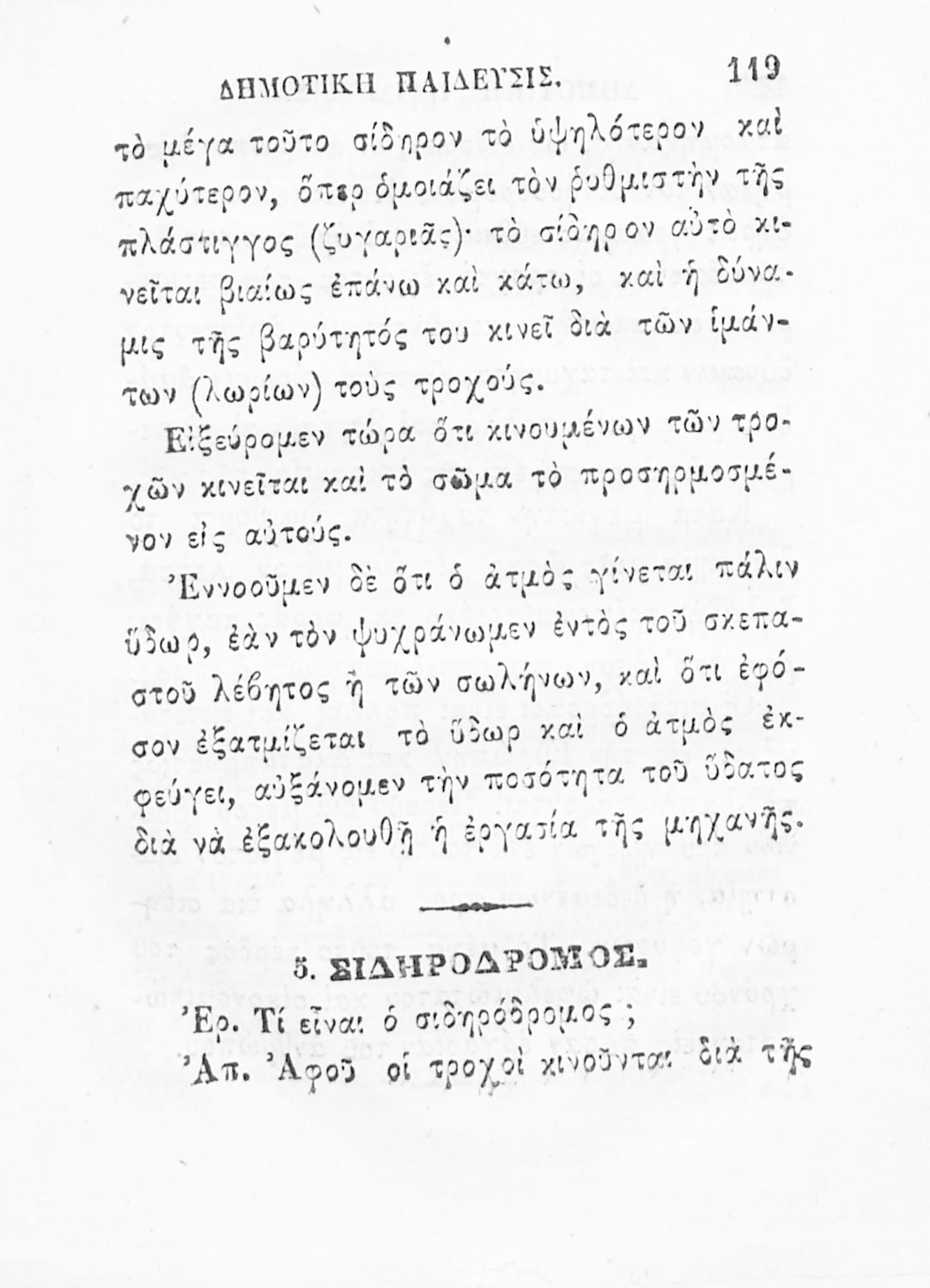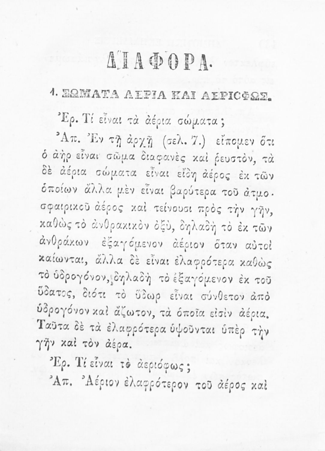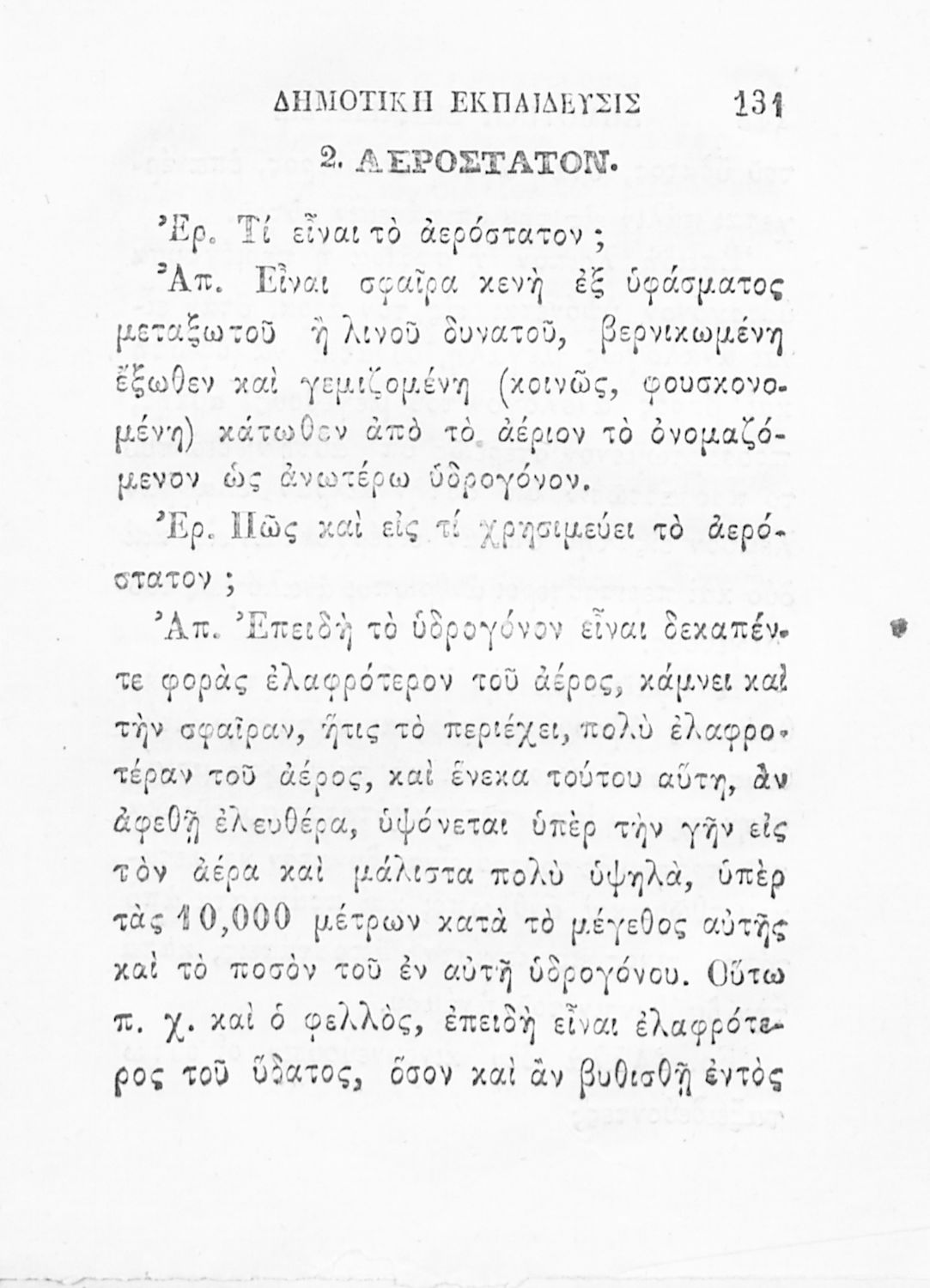 Αναγνωστικό Δημοτικού που έχει τη μορφή ερωταποκρίσεων και παρουσιάζει βασικές πληροφορίες για ένα μεγάλο εύρος ζητημάτων από τα ζώα, τα φυτά και τα χαρακτηριστικά τους ως τη σιδηρουργία και τη στενογραφία.