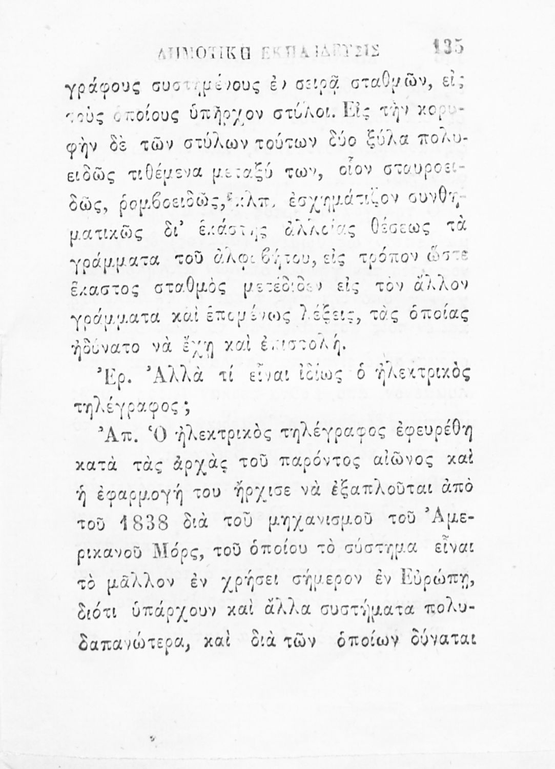 Αναγνωστικό Δημοτικού που έχει τη μορφή ερωταποκρίσεων και παρουσιάζει βασικές πληροφορίες για ένα μεγάλο εύρος ζητημάτων από τα ζώα, τα φυτά και τα χαρακτηριστικά τους ως τη σιδηρουργία και τη στενογραφία.
