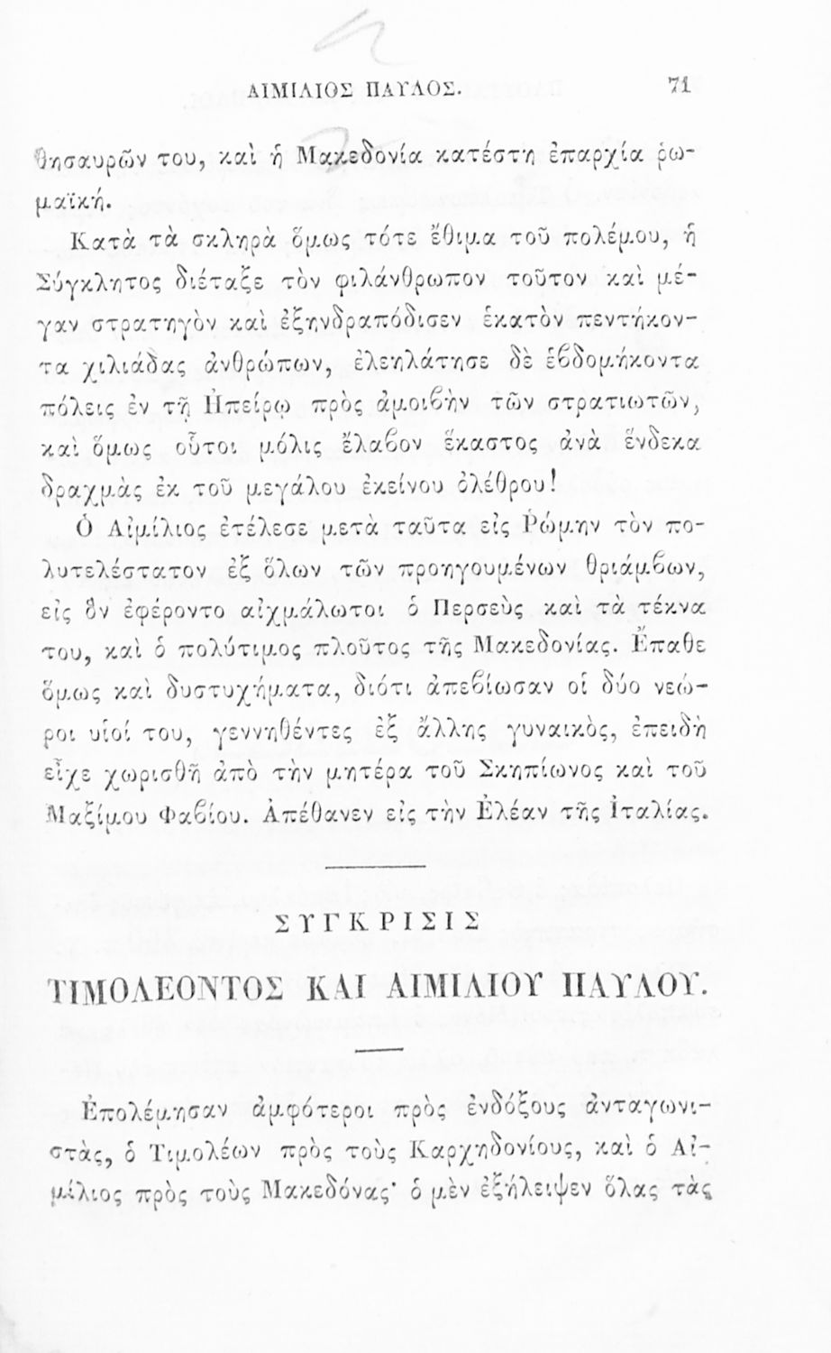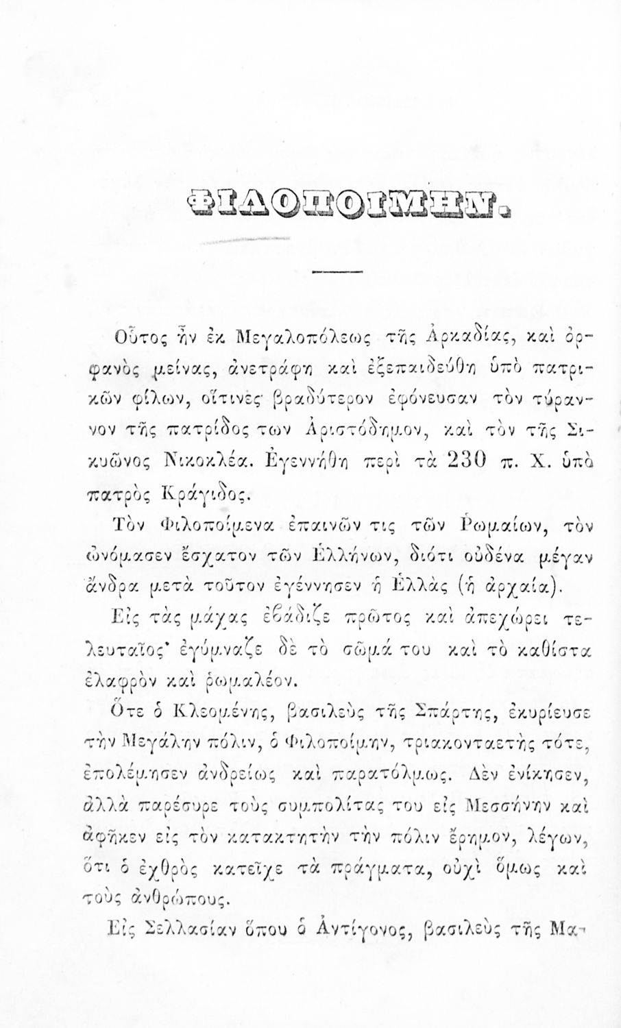 Τίτλος: Επιτομή των Παραλλήλων βίων του Πλουτάρχου, δια τα Δημοτικά σχολεία, προς ανάγνωσιν