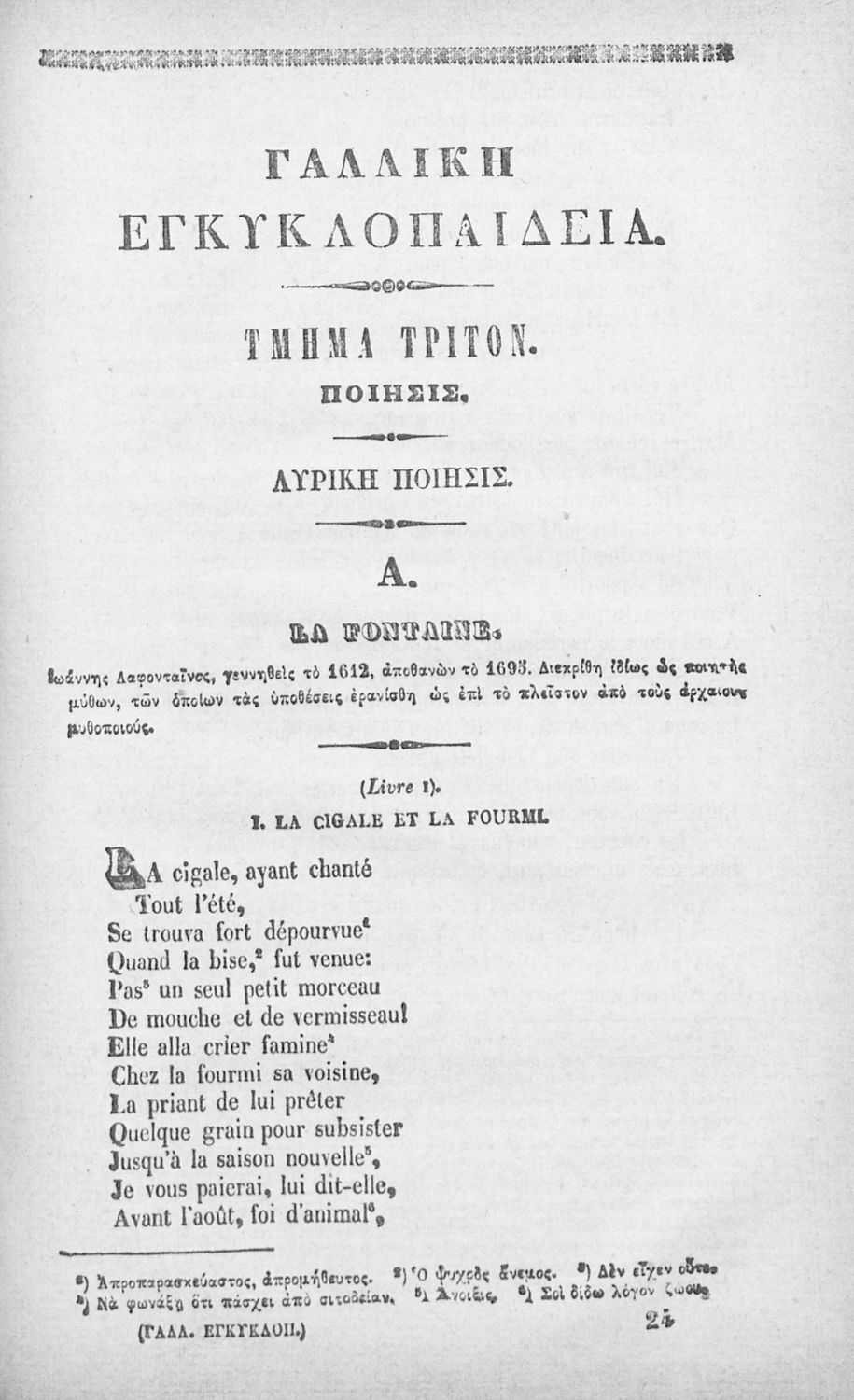 Γαλλική εγκυκλοπαίδεια, ήτοι συλλογή τεμαχίων εκ των δοκιμωτέρων λογογράφων και ποιητών της Γαλλίας, προς χρήσιν των απανταχού Ελληνικών Σχολείων